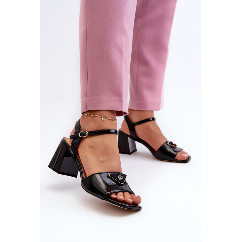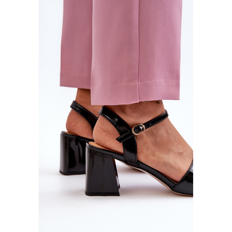 Lakuoti moteriški sandalai iš prekės ženklo S.Barski. Pagaminta iš eko odos. Nustatyti ant stulpelio formos kulno. Užsegamas reguliuojamu sagties dirželiu, jie yra praktiški ir lengvai priderinami. Dekoracija priekyje. Natūralios odos vidpadis suteiks komforto dėvint. Šis modelis tikrai suteiks jūsų stiliui elegancijos. Rinkdamiesi dydį žiūrėkite dydžių lentelę.