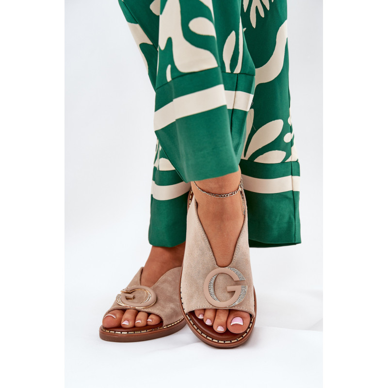 Lygios moteriškos šlepetės yra puikus pasirinkimas vasaros dienoms. Priekyje yra puošmena, kuri suteikia joms subtilų žavesį, o reguliuojama dirželio su sagtimi leidžia idealiai pritaikyti prie pėdos. Eko odos įklotas užtikrina komfortą visą dieną. Šios šlepetės derina stilių su funkcionalumu, todėl puikiai tinka tiek kasdieniniams, tiek elegantiškesniems įvaizdžiams. Renkantis dydį, vadovaukitės dydžių lentele.