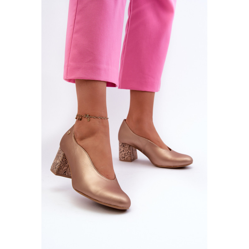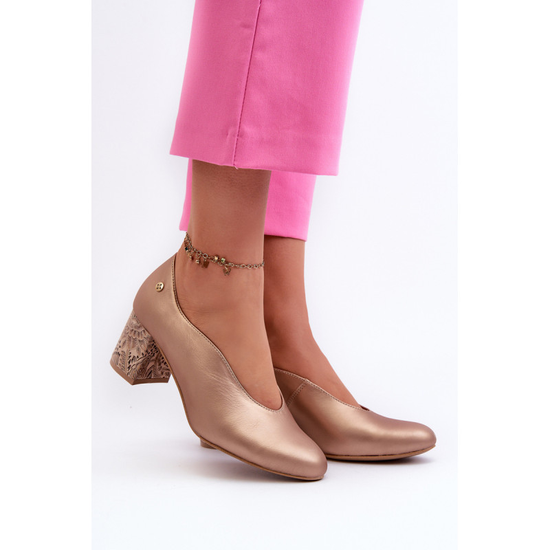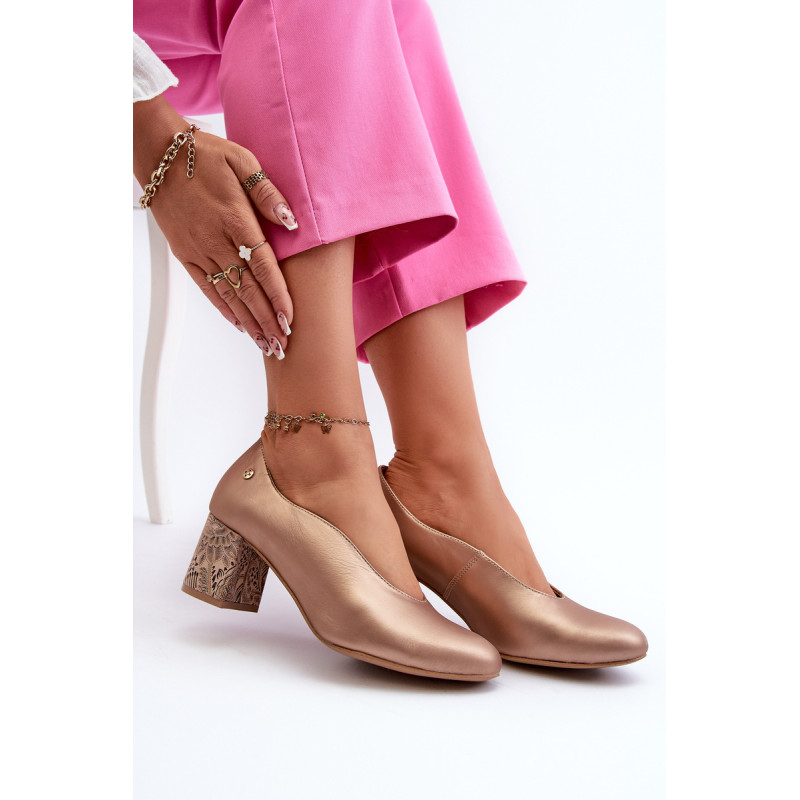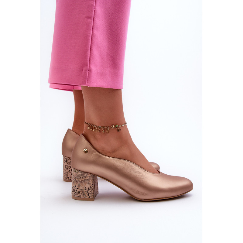Elegantiškos prekės ženklo Maciejka moteriškos pompos. Pagaminti iš natūralios odos, užtikrina ilgaamžiškumą ir patogumą dėvint. Suapvalinti pirštai suteikia jiems klasikinę išvaizdą, kuri tinka daugeliui stilių. Be to, stulpelio formos kulnas su gėlių raštu suteikia jiems subtilumo ir žavesio. Šie siurbliai yra puikus pasirinkimas moterims, kurios vertina ir patogumą, ir madingą išvaizdą. Rinkdamiesi dydį, žiūrėkite dydžių lentelę.