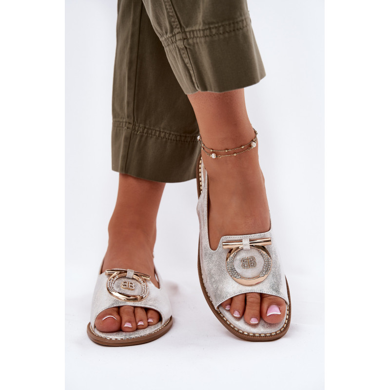 Eleganti moteriškos sandalai iš S.Barski prekės ženklo yra puikus pasirinkimas šiltoms dienoms. Pagaminti iš eko odos, modelis yra ant plokščio kulno, užtikrinančio komfortą visą dieną. Sandalų priekyje yra subtilus dekoratyvinis elementas, suteikiantis jiems unikalų charakterį. Uždaryti su sagtimi ir reguliuojamu dirželiu, jie leidžia idealiai pritaikyti prie kojos. Natūralios odos vidpadis užtikrina komfortą ir pralaidumą, todėl sandalai yra idealiai tinkami ilgesniam dėvėjimui. Renkantis dydį, vadovaukitės dydžių lentele.