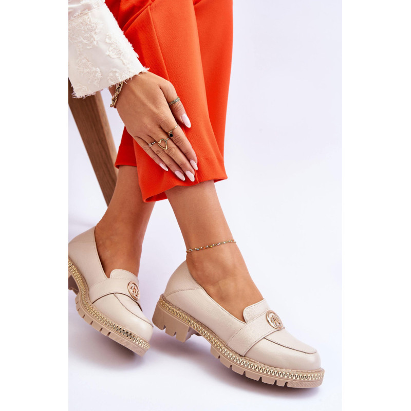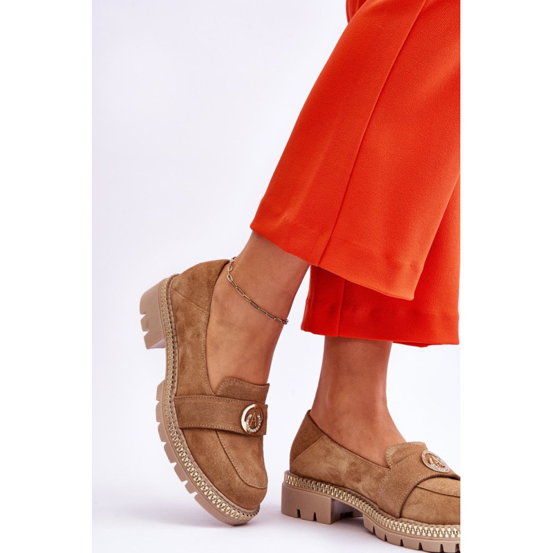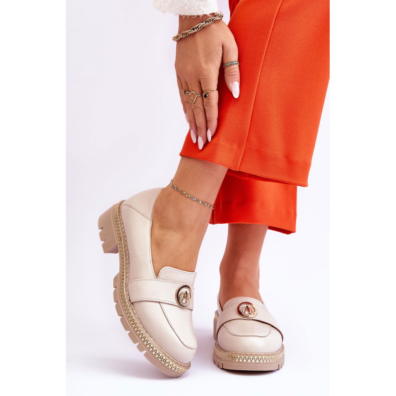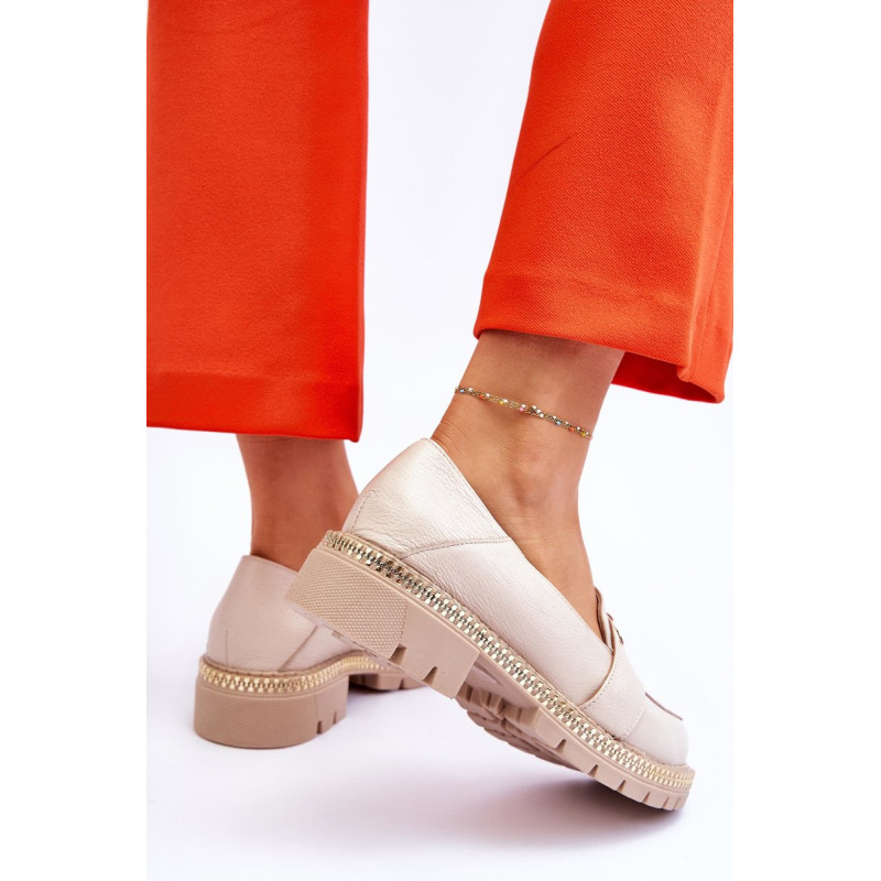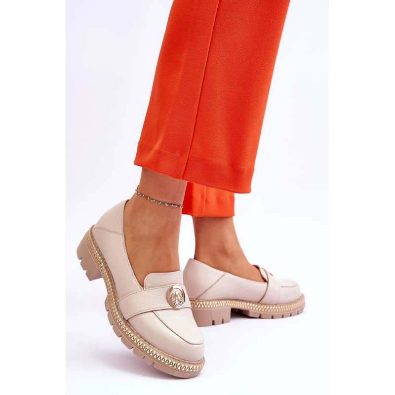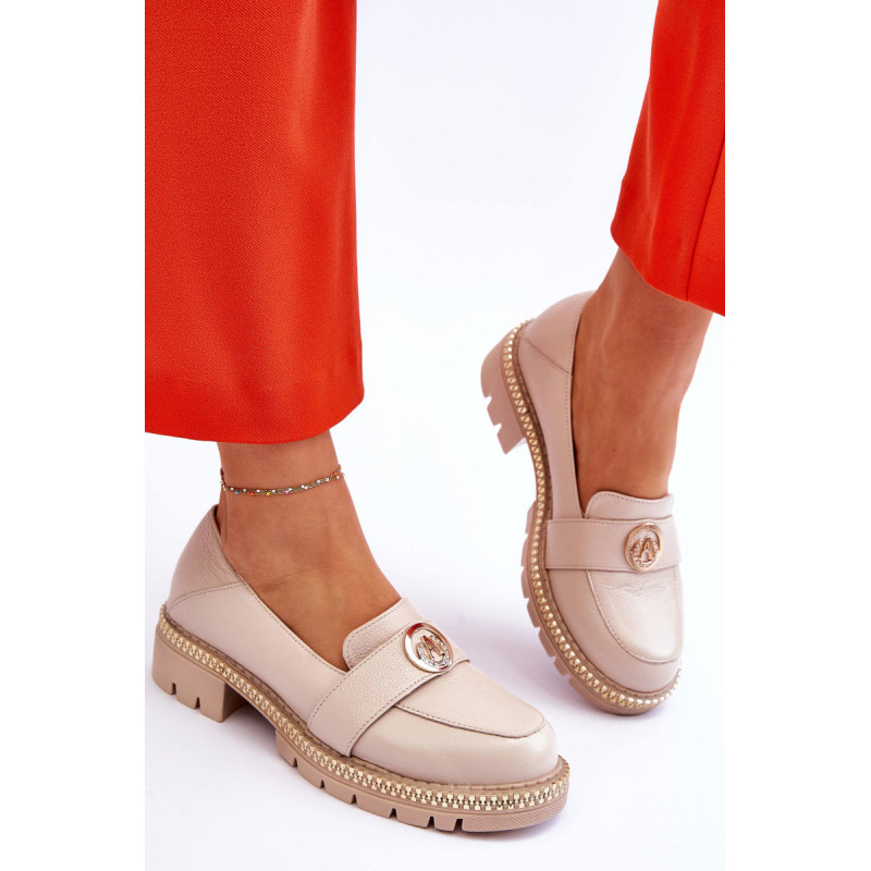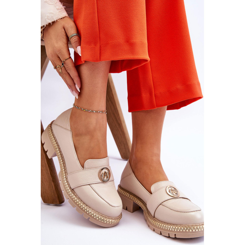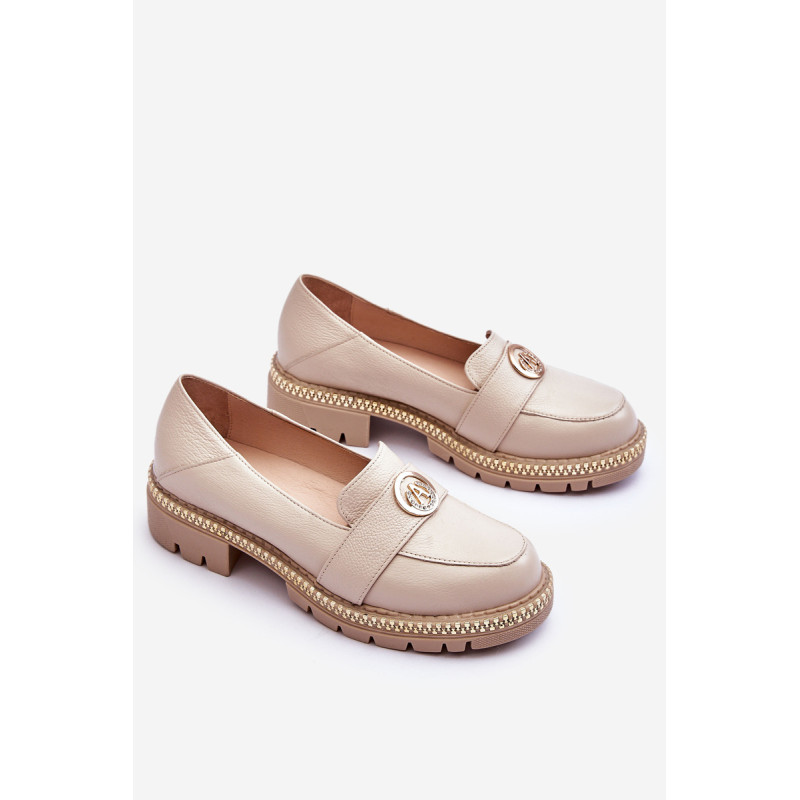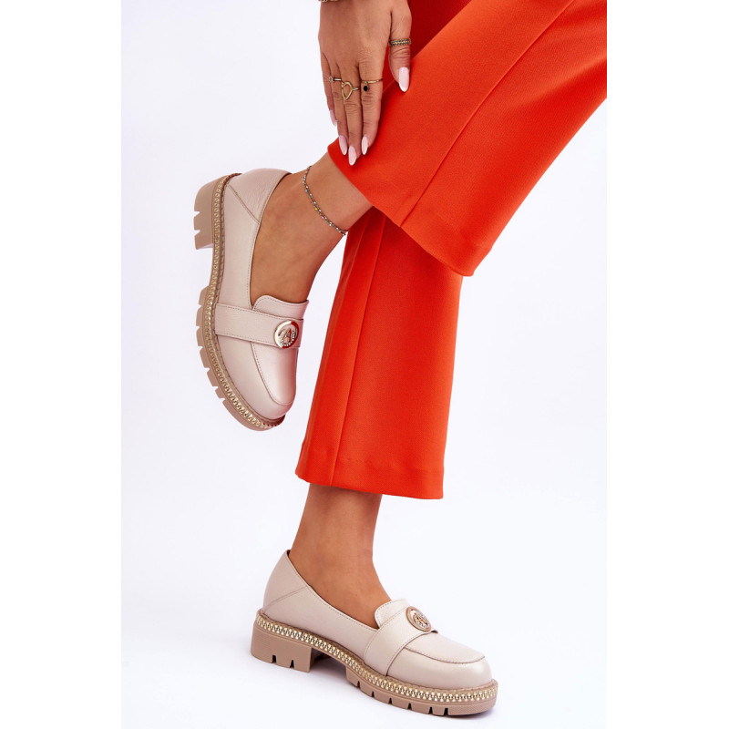 Unikalūs, moteriški batukai ant plokščio kulno ir platformos, puoštos užtrauktuku. Modelis pagamintas iš natūralios odos. Be to, jie turi papuošimą su purkštukais ant dirželio ir standintą kulno skaitiklį. Minkštas, odinis vidpadis užtikrina patogų naudojimą. Loaferiai puikiai atrodys įvairių stilių! Rinkdamiesi dydį žiūrėkite dydžių lentelę.