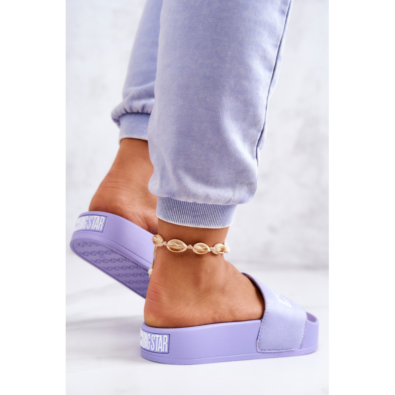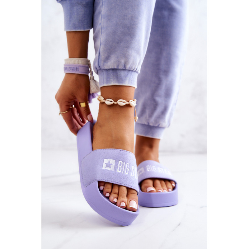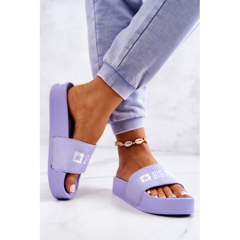 Big Star šlepetės pagamintos iš audinio su prekės ženklo logotipu, viduje išklotos minkštu putplasčiu. Profiliuotas vidpadis ir padas pagaminti iš guminės medžiagos. Platforma puikiai suminkštins ir apsaugos jūsų kojas. Big Star logotipas yra pado gale. Jūs tikrai turite juos turėti! Renkantis dydį, naudokite dydžių lentelę.