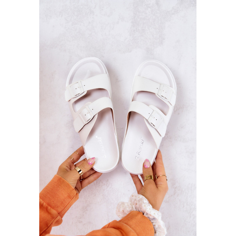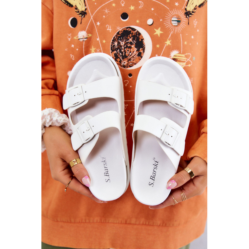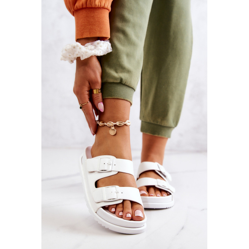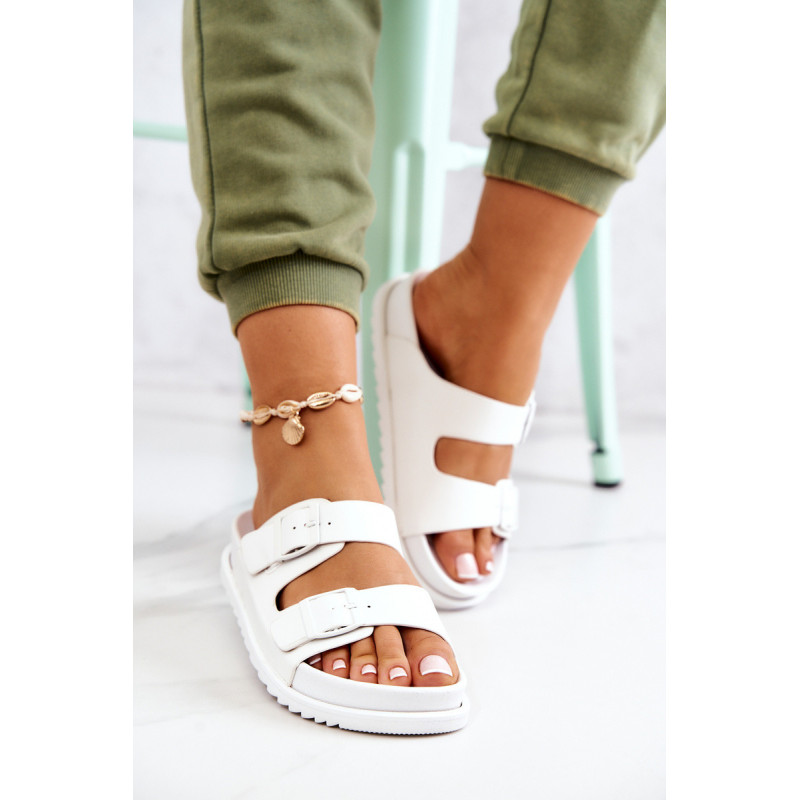 Užsegamos šlepetės iš guminės medžiagos. Jie montuojami ant lygaus, storesnio pado. Jie turi du reguliuojamus dirželius su sagtimi priekyje. Įrengtas profiliuotas įdėklas su logotipu. Su jais sukursite daugybę nuostabių vasaros stilių! Taip pat puikiai tiks namuose vietoj šlepečių. Jūs tikrai turėtumėte juos turėti! Renkantis dydį, naudokite dydžių lentelę.
