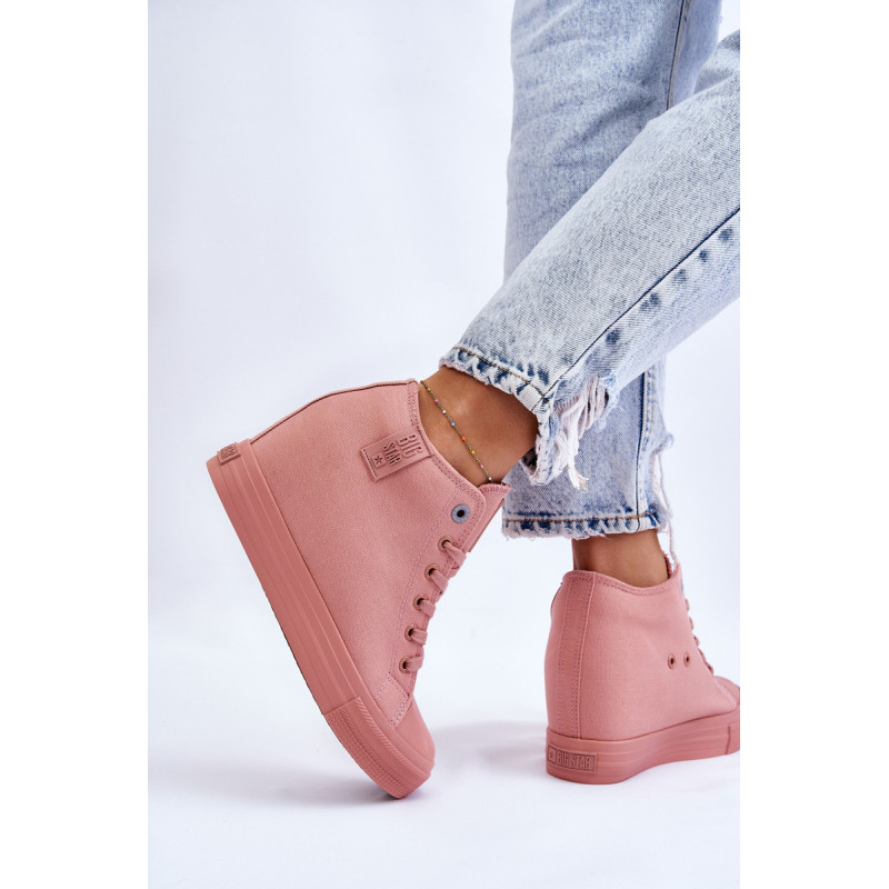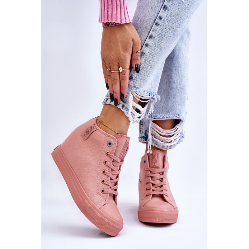 Lenkiško prekės ženklo BIG STAR sportbačiai. Ikoniniai sportbačiai tinka daugeliui stilių. Batai turi minkštą, medžiaginį vidpadį. Be to, viduje yra apie 4,5 cm aukščio pleištas. Neslystantis, tvirtas padas – saugumo garantija. Be to, ant platformos įtaisyti sportbačiai. Būtinai peržiūrėkite visą mūsų BIG STAR batų kolekciją. Rinkdamiesi dydį žiūrėkite dydžių lentelę.