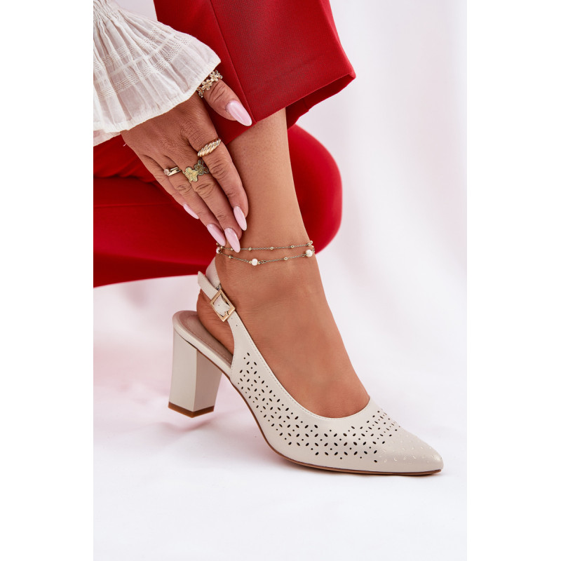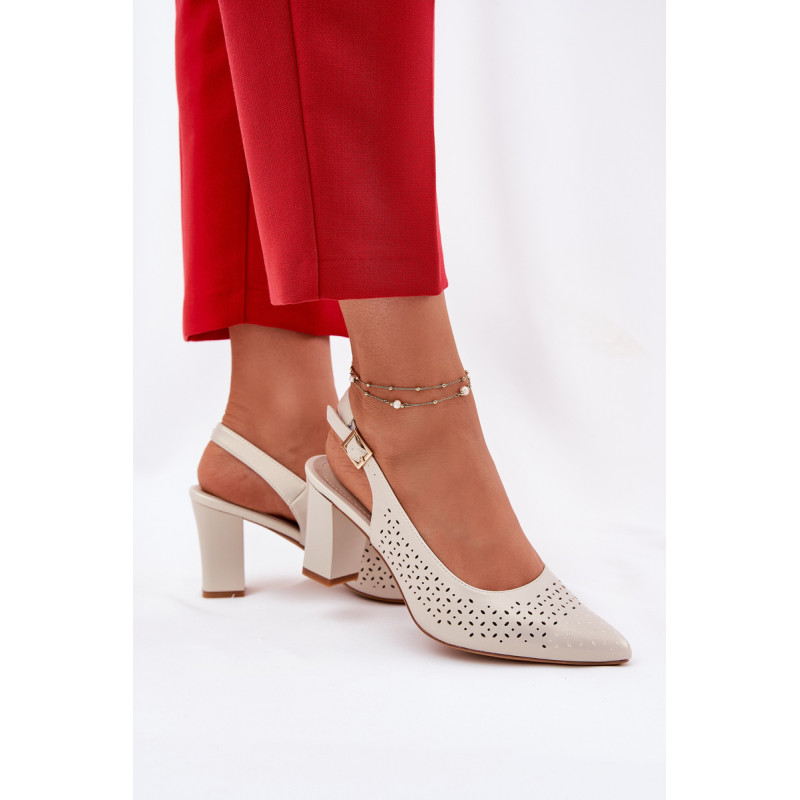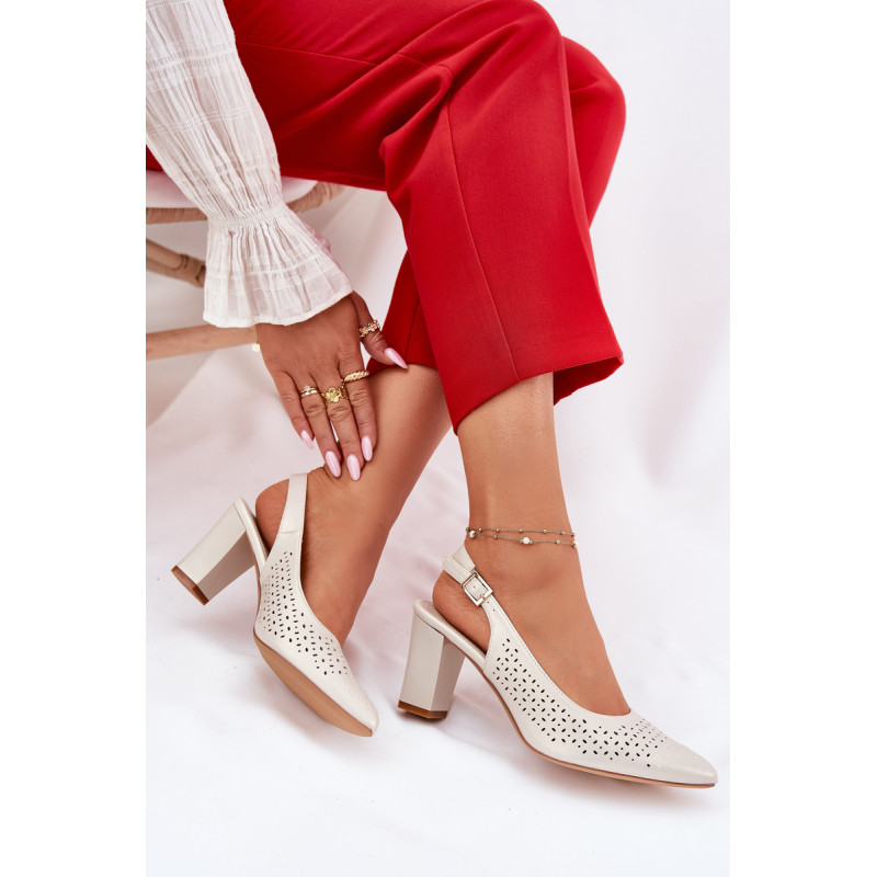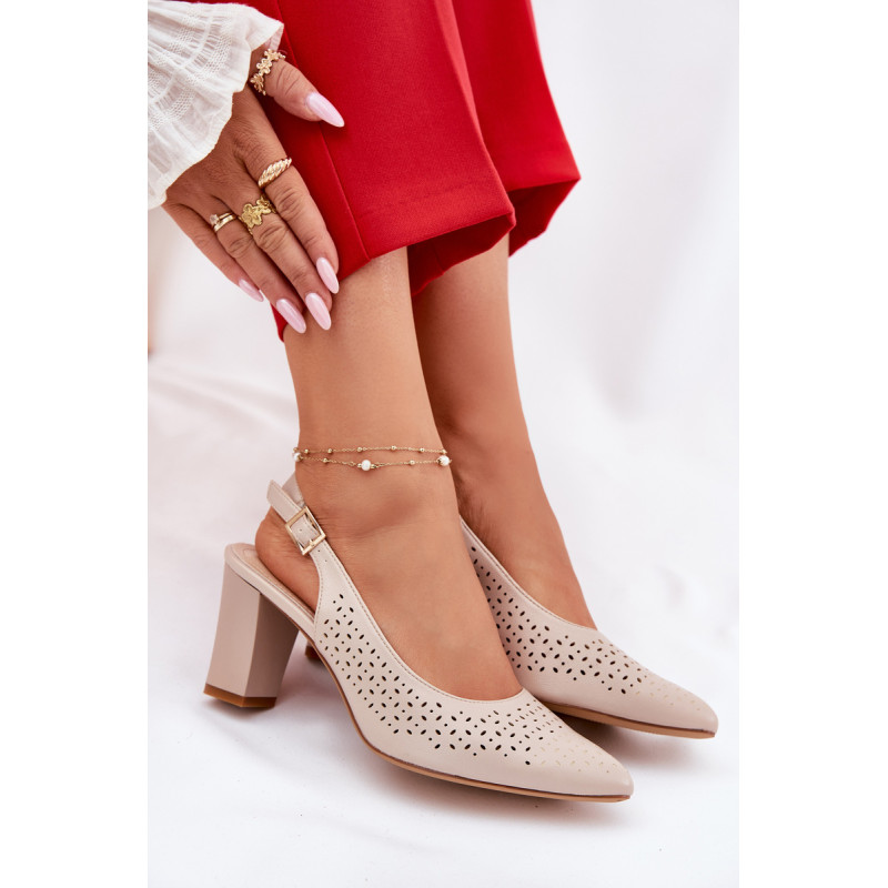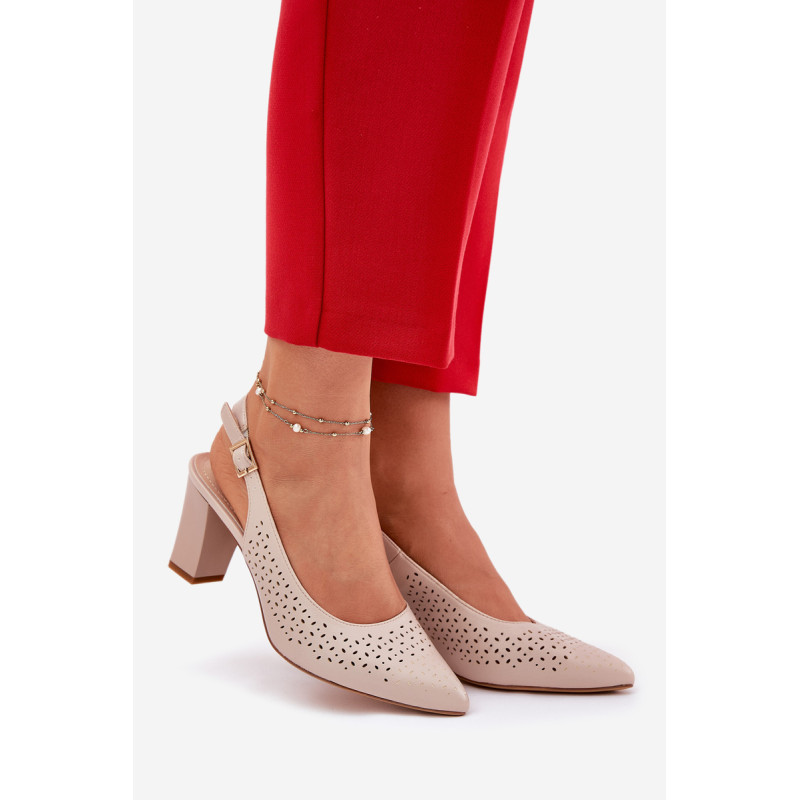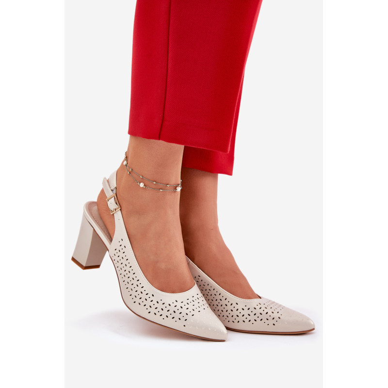 Moteriški sandalai, pagaminti iš ekologiškos odos, puošti perforuotu raštu, yra elegantiškas pasirinkimas šiltoms dienoms. Smailūs pirštai subtiliai pailgina kojas, suteikdami joms lieknumo. Uždaryti su sagtimi ir reguliuojamu dirželiu, leidžia puikiai pritaikyti prie pėdos. Blokinis kulnas užtikrina stabilumą, o visuma sujungia stilių ir komfortą, puikiai derinasi su vasaros suknelėmis, sijonais ar elegantiškomis kelnėmis. Renkantis dydį, vadovaukitės dydžių lentele.