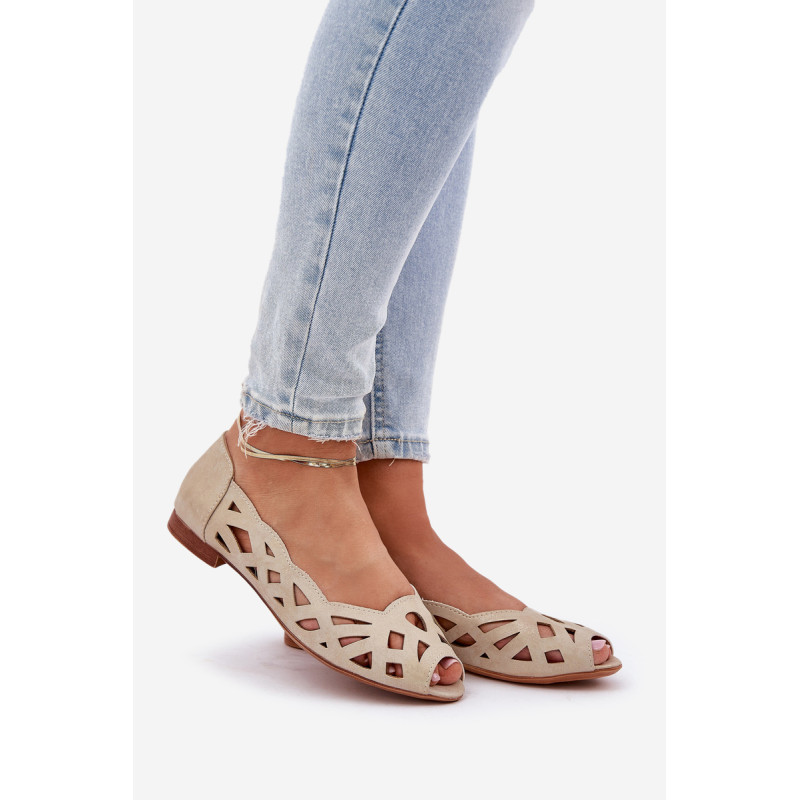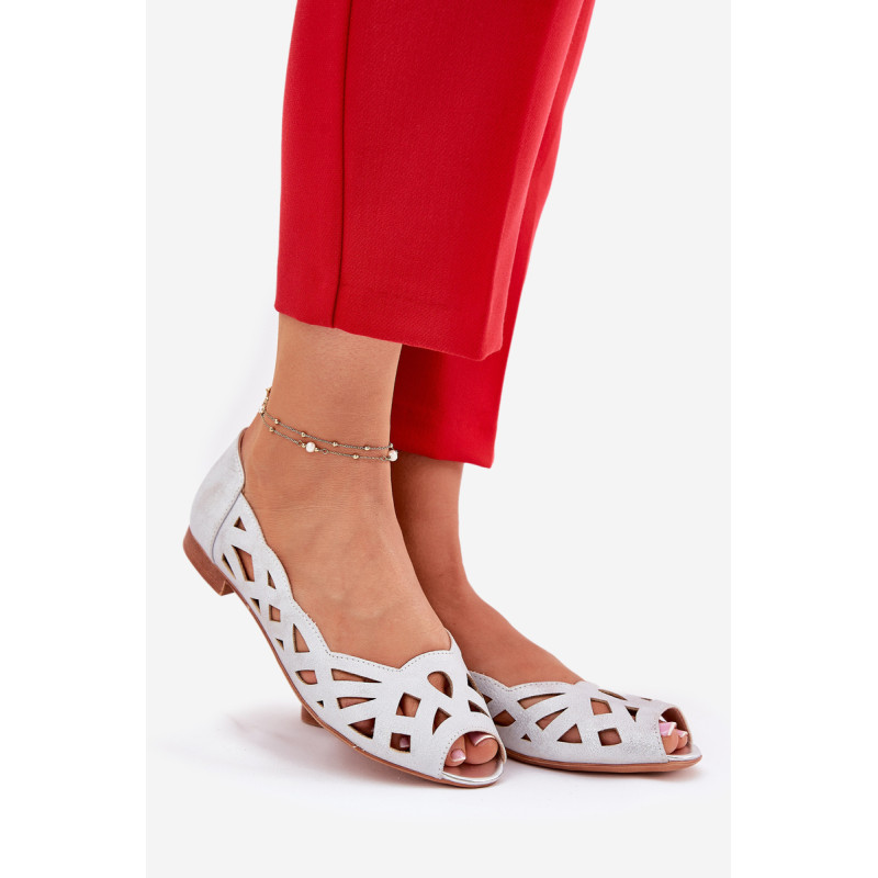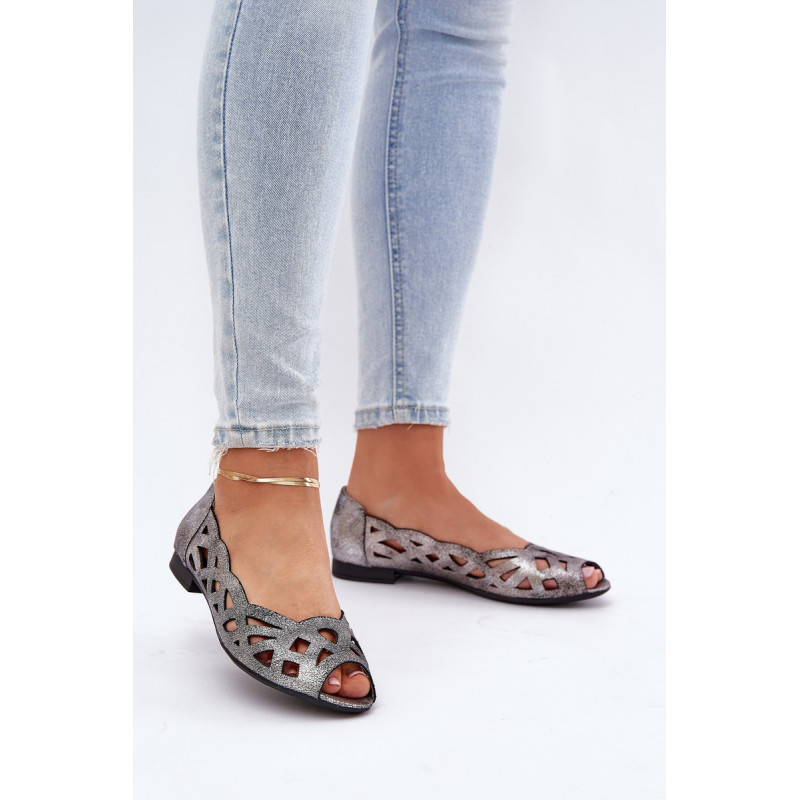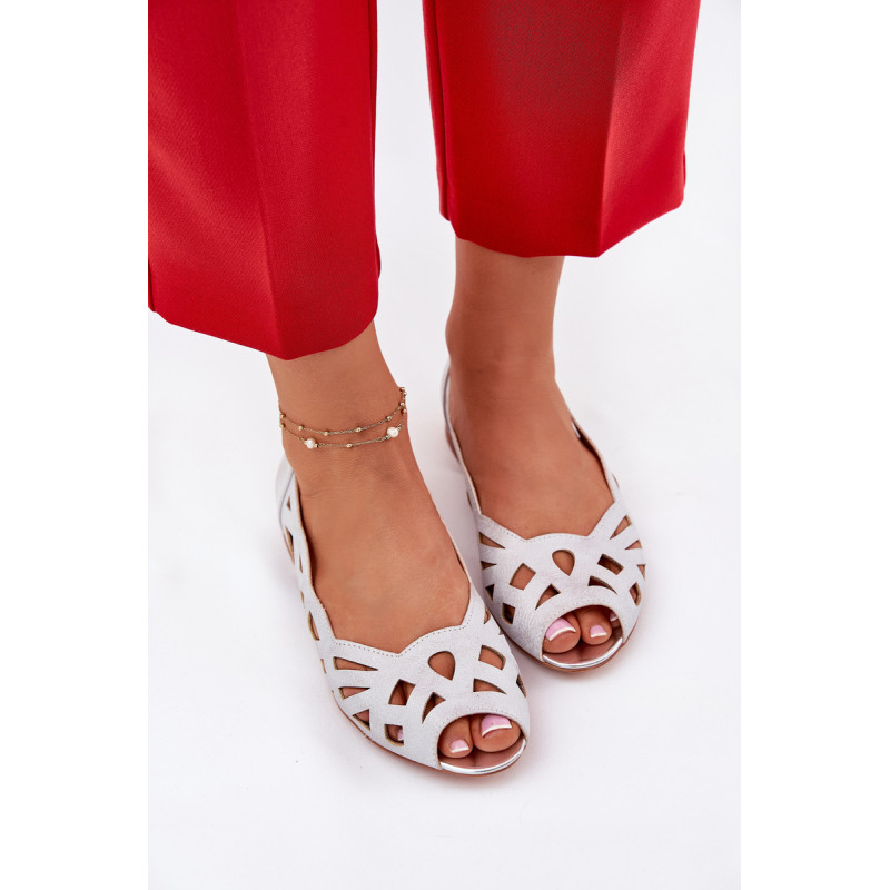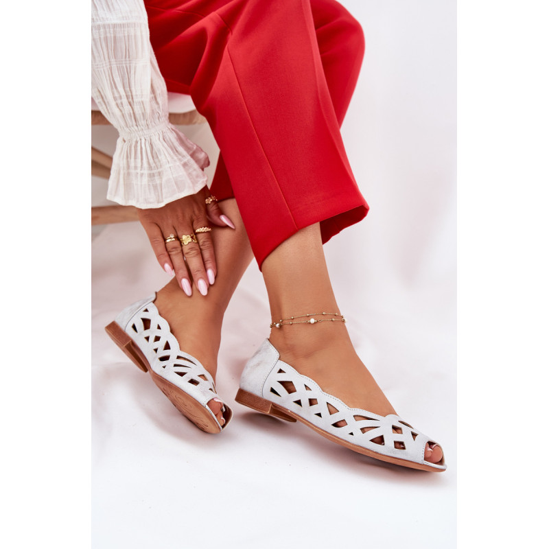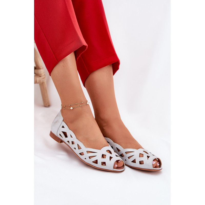 Jezzi prekės ženklo balerinai yra elegantiška ir patogi pasirinktis šiltoms dienoms. Pagaminta iš ekologiškos odos. Išgręžta viršutinė dalis suteikia joms lengvumo ir modernumo. Atviros pirštai daro batus idealiais pavasariui ir vasarai. Sustiprinta kulno dalis užtikrina stabilumą ir komfortą, o odinė pamušalas rūpinasi visos dienos komfortu. Plokščias kulnas garantuoja kasdienį komfortą, todėl šios balerinos puikiai tinka kasdienėms aprangoms. Renkantis dydį, vadovaukitės dydžių lentele.