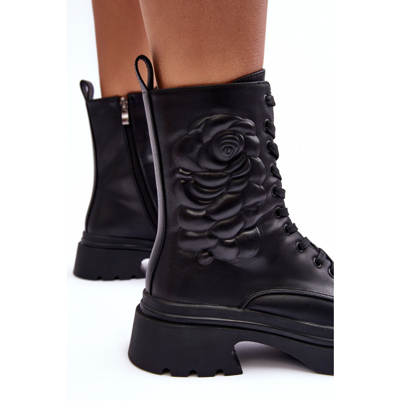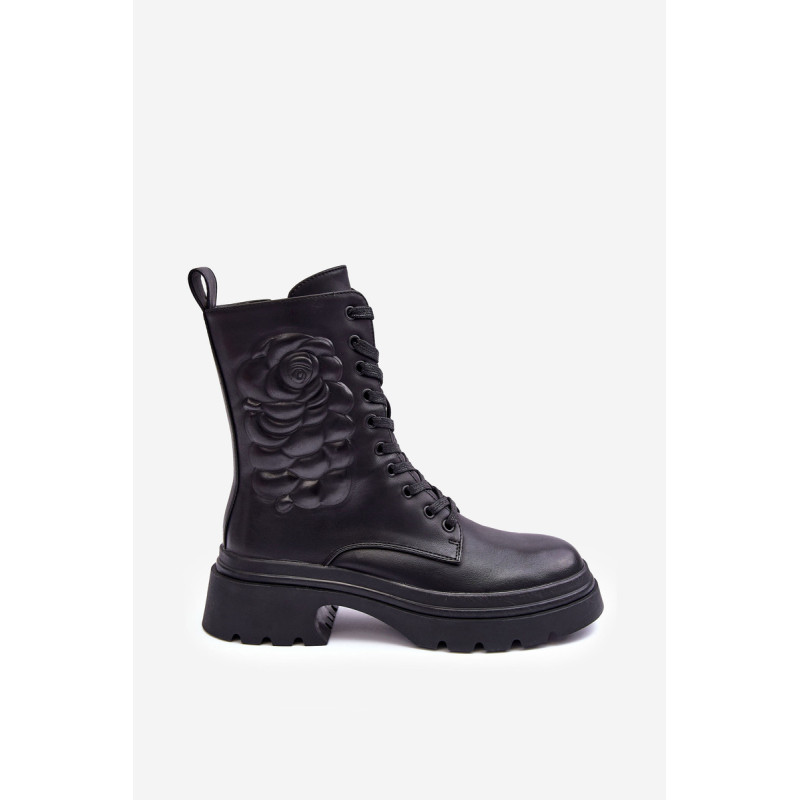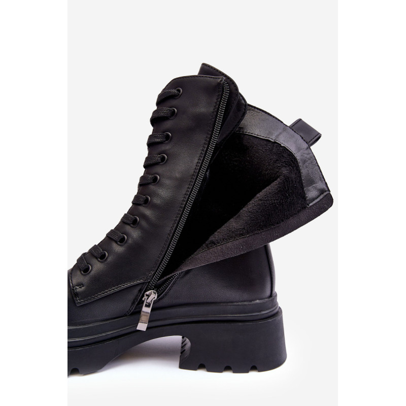 Moteriški batai ant plokščio, stabilaus kulno ir platformos. Pagaminta iš eko odos. Užsegamas užtrauktuku ir papildomai suvarstomas. Viršuje įspaudas. Suapvalinti kojų pirštai. Vidus apšiltintas batų pamušalu. Minkštas vidpadis leis patogiai naudotis avalyne. Sustingęs skaitiklis. Šį modelį galite naudoti daugeliui rudens-žiemos stilių! Rinkdamiesi dydį, vadovaukitės dydžių lentele.