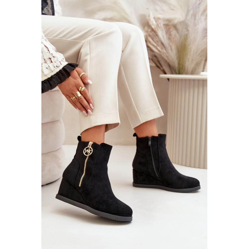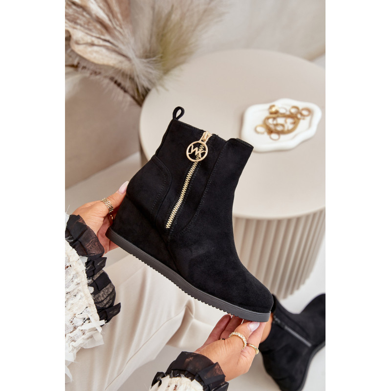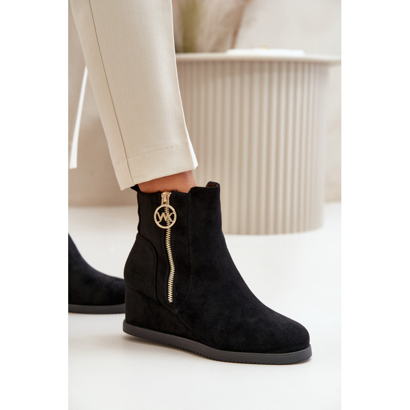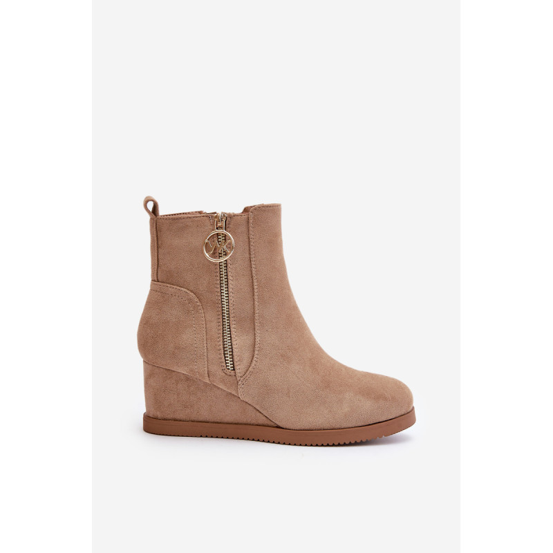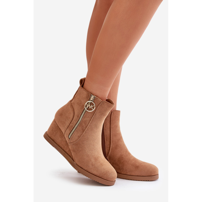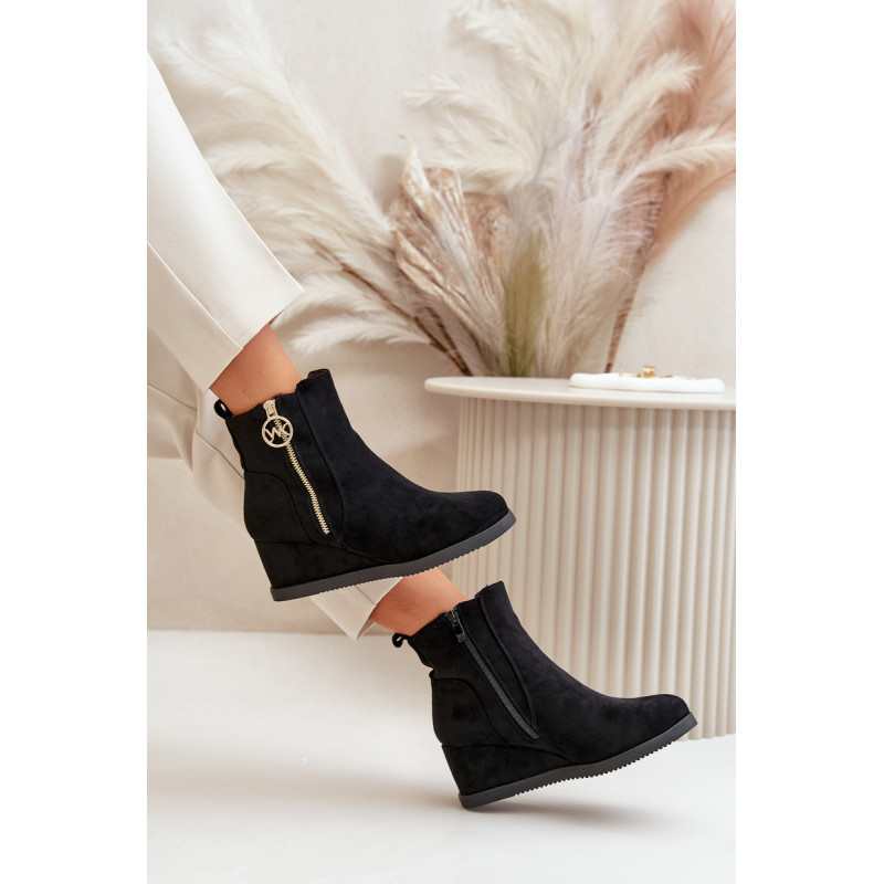 Moteriški batai iš ekologiškos zomšos prisistato elegantiškai ir šiuolaikiškai, puikiai dera prie įvairių stilių. Vidinėje pusėje esantis užtrauktukas palengvina greitą ir patogų užsidėjimą ir nusiėmimą. Uždėti ant stabilaus pleišto, jie suteikia komforto einant ir subtiliai padidina ūgį centimetrais. Kulnas sutvirtintas papildomai atramai, o suapvalinti pirštai suteikia batams klasikinio žavesio. Batų vidus apšiltintas batų vilna, užtikrinančia šilumą ir komfortą net šalčiausiomis dienomis. Rinkdamiesi dydį, žiūrėkite dydžių lentelę.