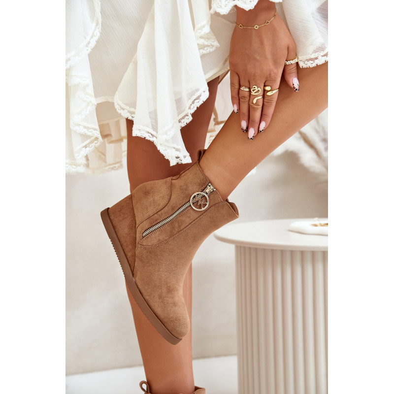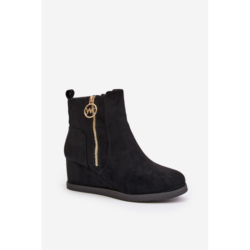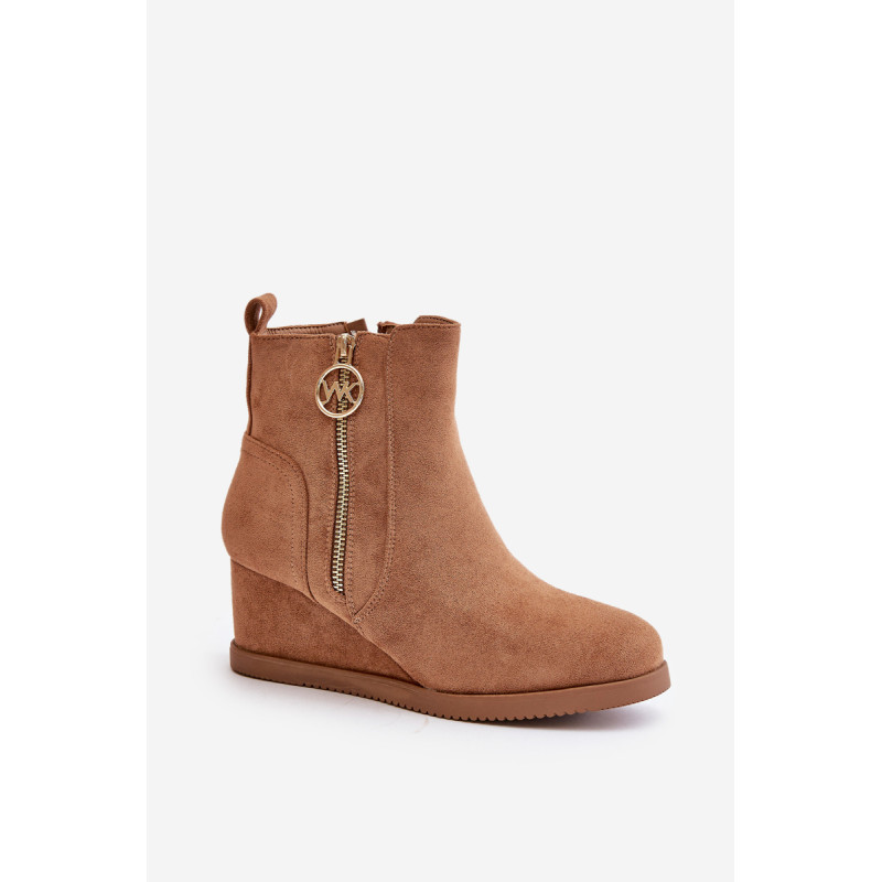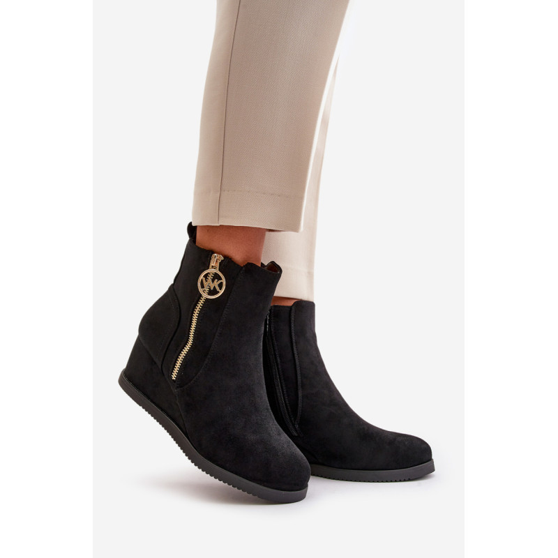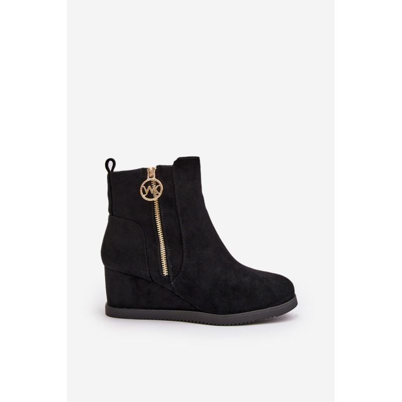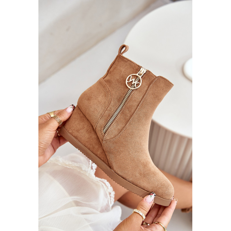Moteriški batai iš ekologiškos zomšos prisistato elegantiškai ir šiuolaikiškai, puikiai dera prie įvairių stilių. Vidinėje pusėje esantis užtrauktukas palengvina greitą ir patogų užsidėjimą ir nusiėmimą. Uždėti ant stabilaus pleišto, jie suteikia komforto einant ir subtiliai padidina ūgį centimetrais. Kulnas sutvirtintas papildomai atramai, o suapvalinti pirštai suteikia batams klasikinio žavesio. Batų vidus apšiltintas batų vilna, užtikrinančia šilumą ir komfortą net šalčiausiomis dienomis. Rinkdamiesi dydį, žiūrėkite dydžių lentelę.