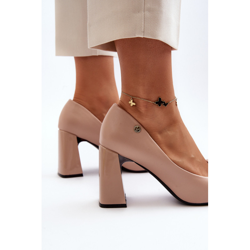 Elegantiški siurbliai su stabiliu kolonos kulnu yra puikus pasirinkimas daugeliu atvejų. Pagaminti atkreipiant dėmesį į detales, jie turi minkštą ir patogų vidpadį iš natūralios odos, kuris suteiks komforto net ir ilgai nešiojant. Smailūs kojų pirštai suteikia stiliaus, o subtili emblema viršutinės dalies šonuose suteikia jiems rafinuoto charakterio. Priekyje puoštas lankelis. Šis modelis puikiai papildys tiek kasdienes, tiek elegantiškas stilizacijas! Rinkdamiesi dydį, žiūrėkite dydžių lentelę.