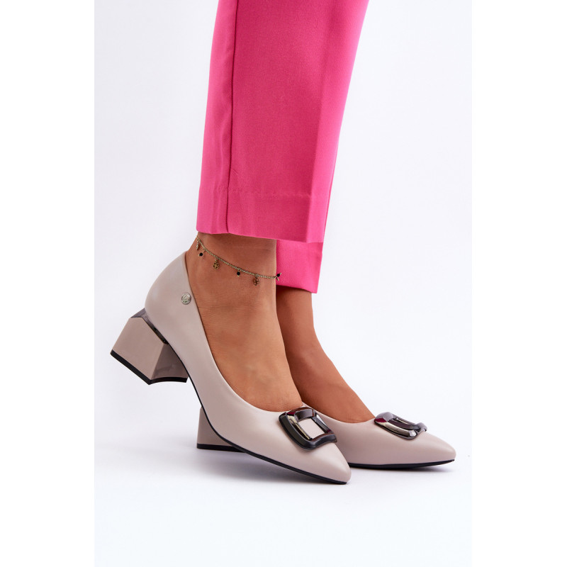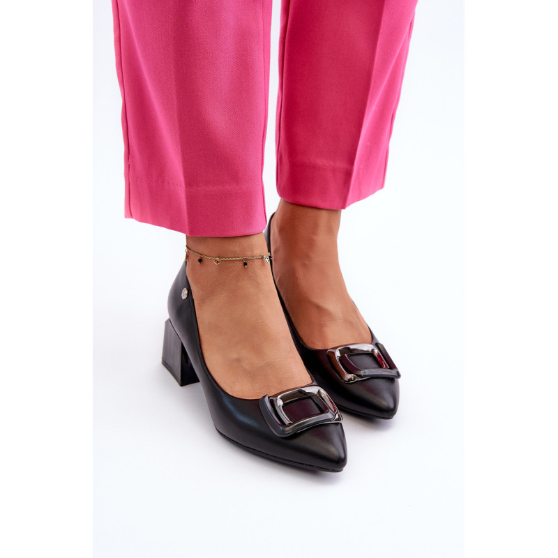 Vinceza prekės ženklo moteriškos pompos. Pagaminta iš eko odos. Blokuotas kulnas suteikia elegancijos, todėl yra idealus pasirinkimas tiek darbui, tiek ypatingoms šeimos progoms. Smailūs pirštai optiškai plonina kojas. Dekoracija priekyje. Šis elegantiškas stilius turi būti jūsų! Rinkdamiesi dydį žiūrėkite dydžių lentelę.