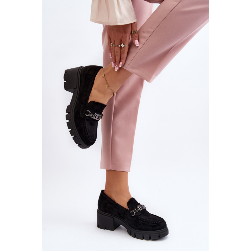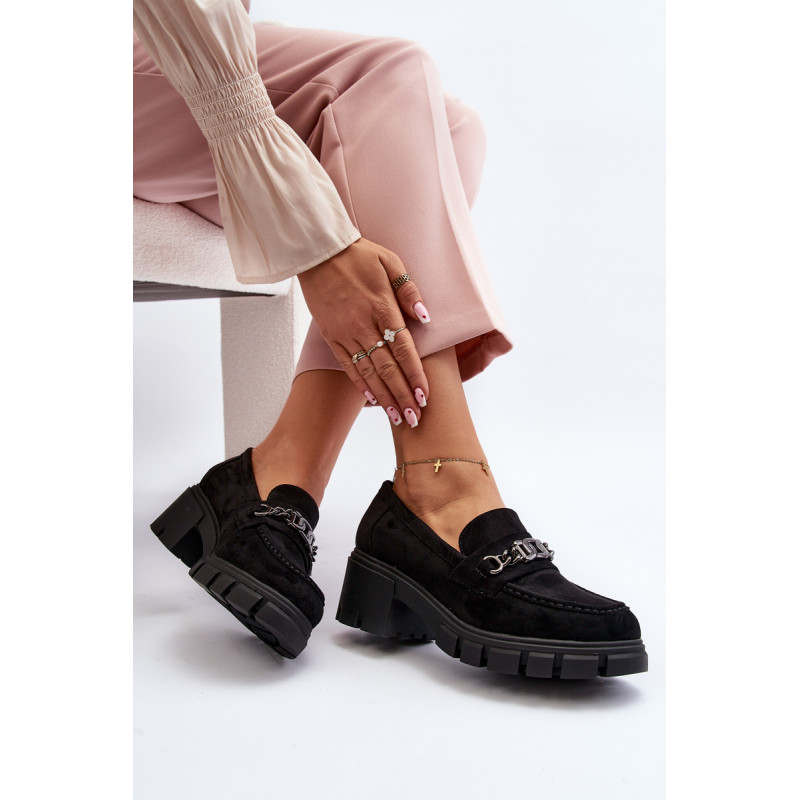 Šie madingi moteriški batukai puikiai tiks prie daugelio drabužių! Jie pastatyti ant masyvios platformos ir plokščio kulno. Kelnaitės turi šiek tiek standintą nosį ir eko odos vidpadį. Ant priekinio dirželio yra grandinėlė su dekoratyvine lėkšte su cirkoniais. Turite turėti šį modelį! Rinkdamiesi dydį, vadovaukitės dydžių lentele.