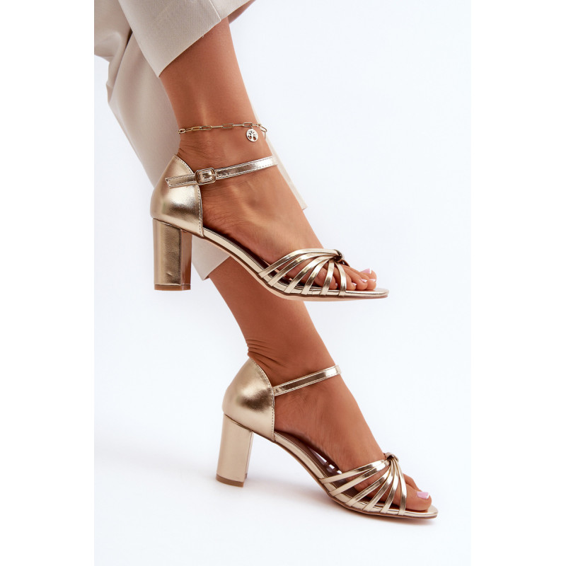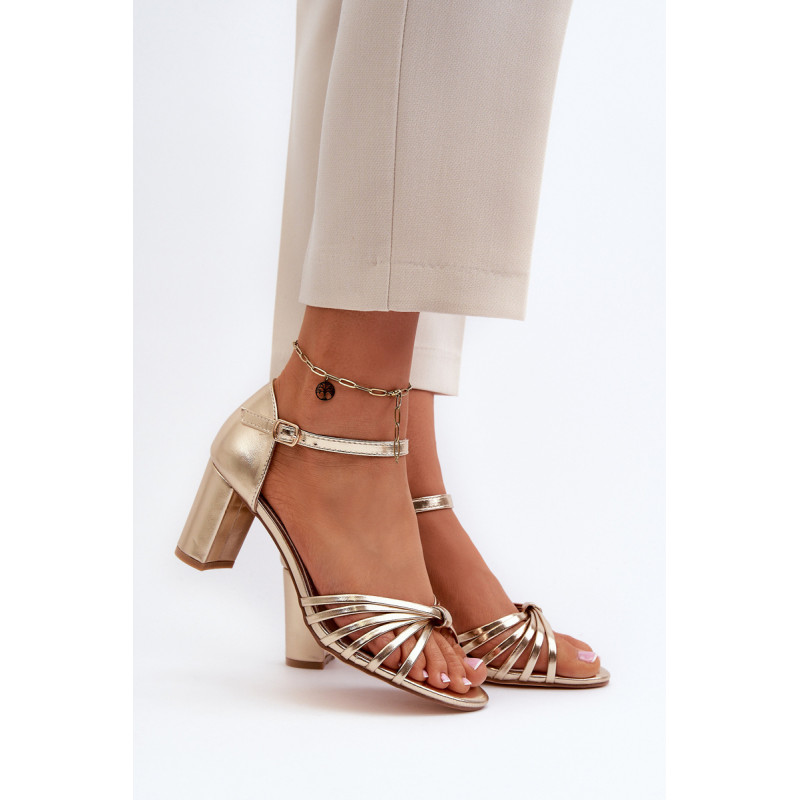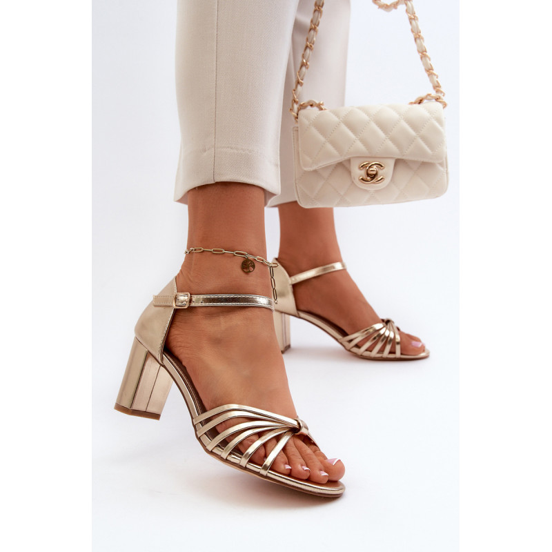 Elegantiški moteriški sandalai su odiniu vidpadžiu, suteikiančiu komfortą ir atramą pėdoms. Stulpelio formos kulnas suteikia grakštumo ir elegancijos, kartu užtikrindamas stabilumą vaikštant. Priekyje yra sujungtos plonos petnešėlės, kurios suteikia subtilumo. Idealus pasirinkimas įvairioms progoms, tiek susitikimams su draugais, tiek formalesnėms išvykoms.