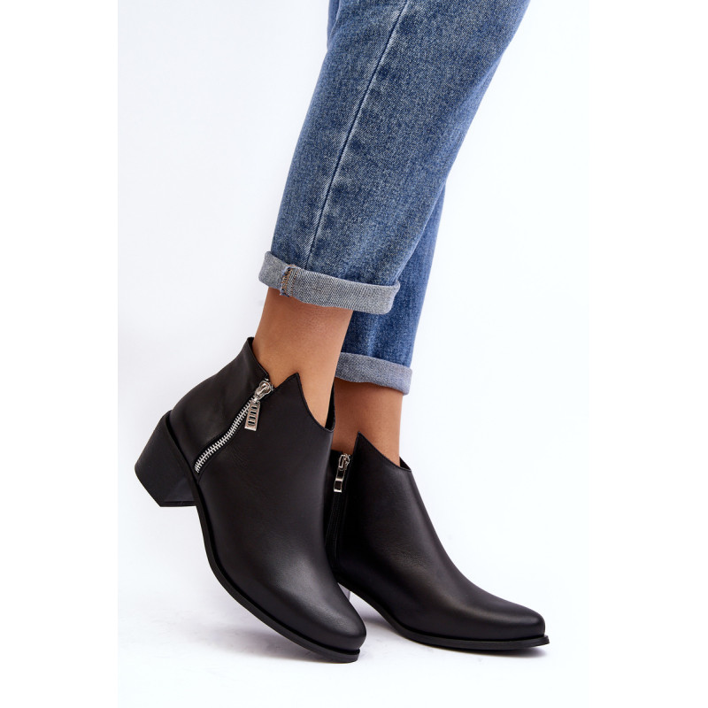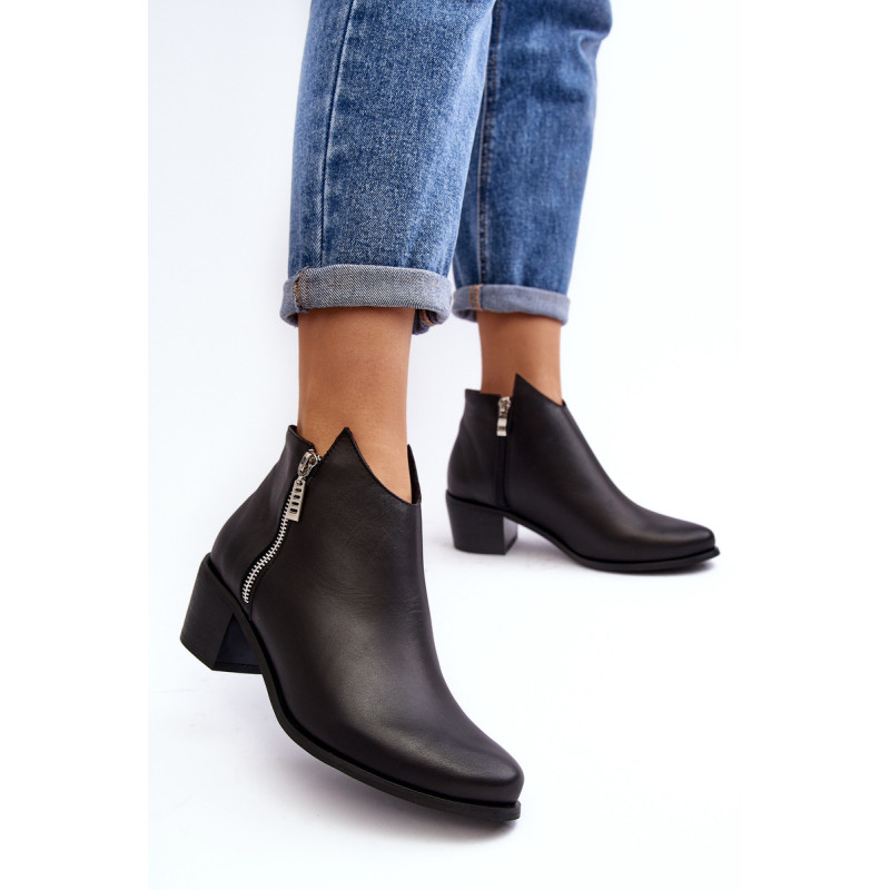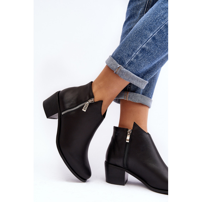 Moteriški batai iš natūralios odos. Apšiltintas vidus su kailiniu pamušalu. Žemas blokinis kulnas. Kotas iki kulkšnies su užtrauktukais. Sustiprintas kulno skaitiklis pėdos stabilumui. Migdolo formos pirštai. Šis klasikinis stilius turėtų būti jūsų garderobe! Rinkdamiesi dydį, žiūrėkite dydžių lentelę.