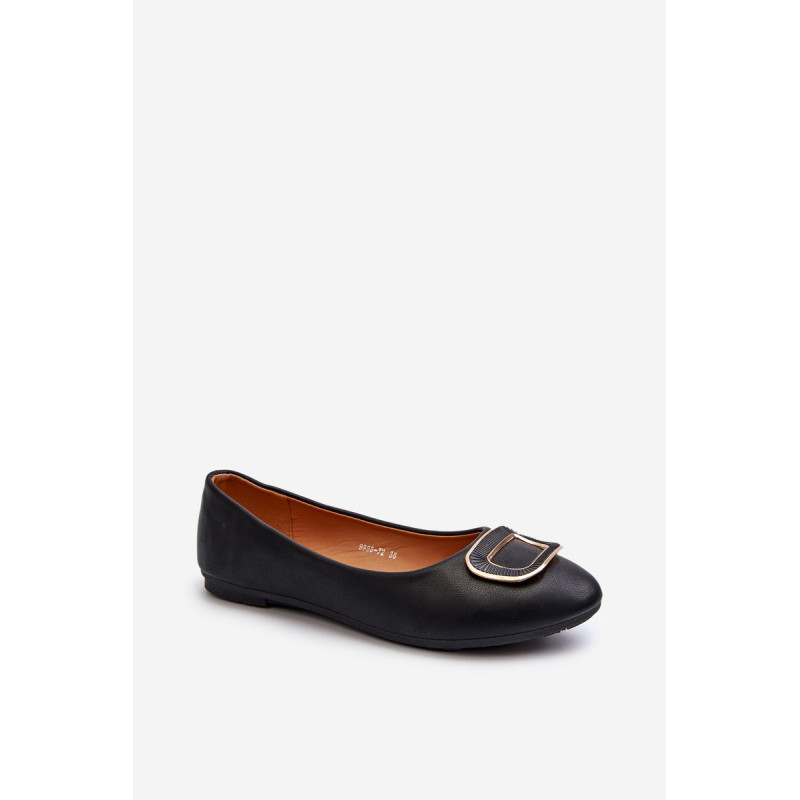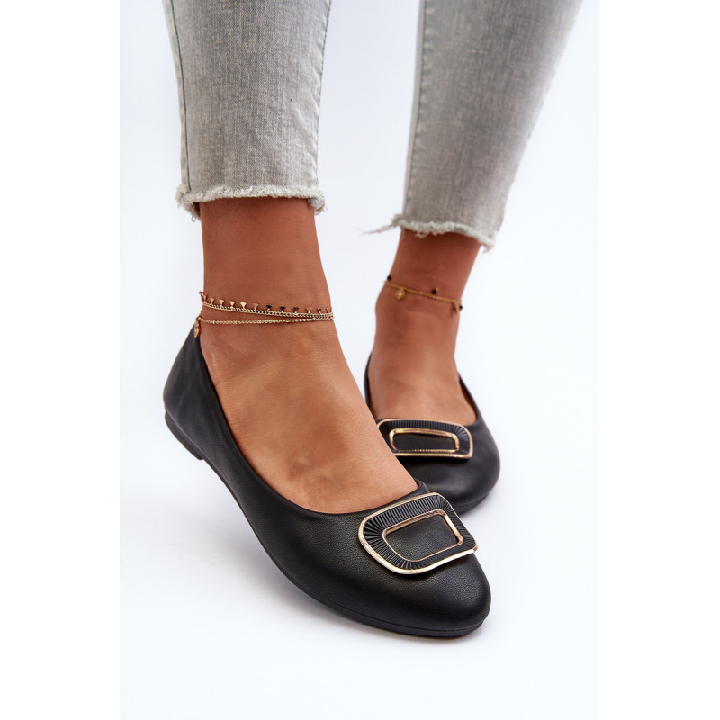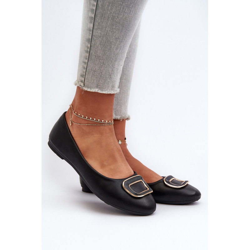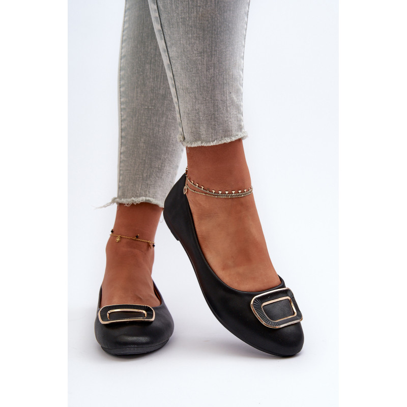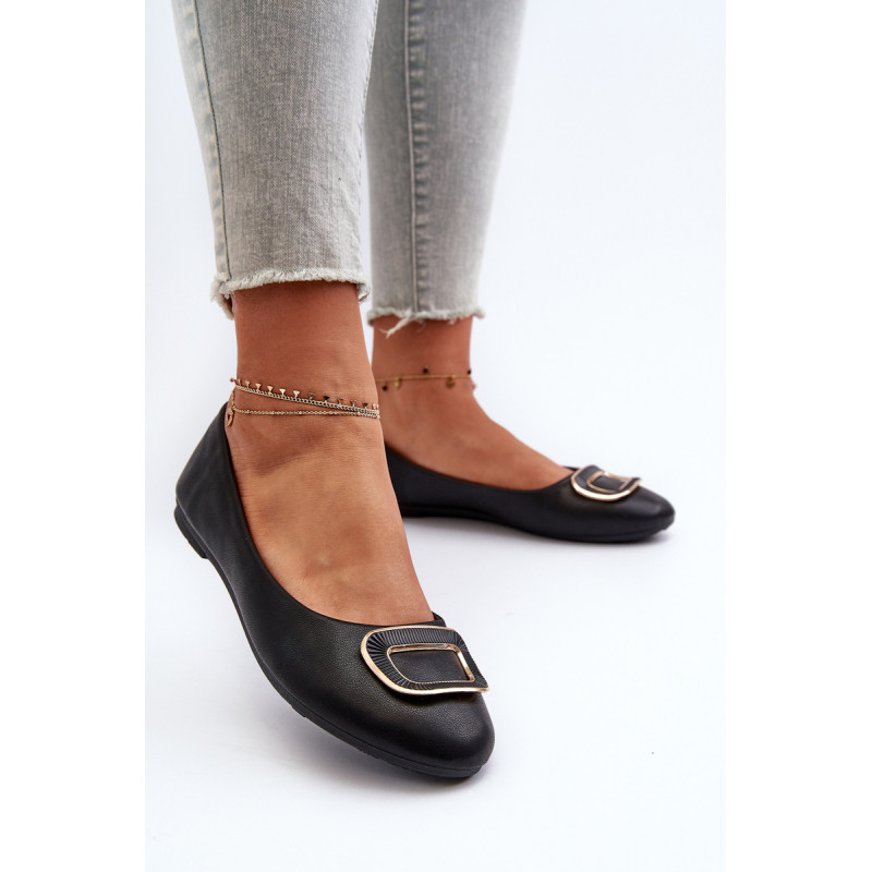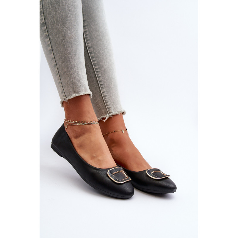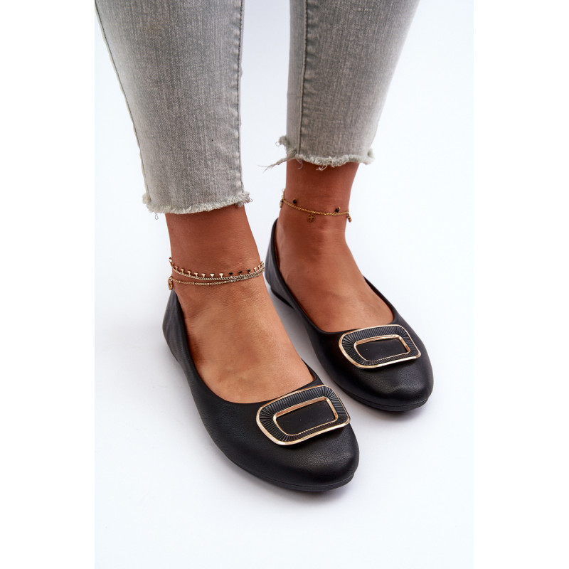Juodos ekologiškos odos balerinos su puošmena Enicoria 199461