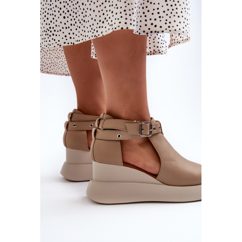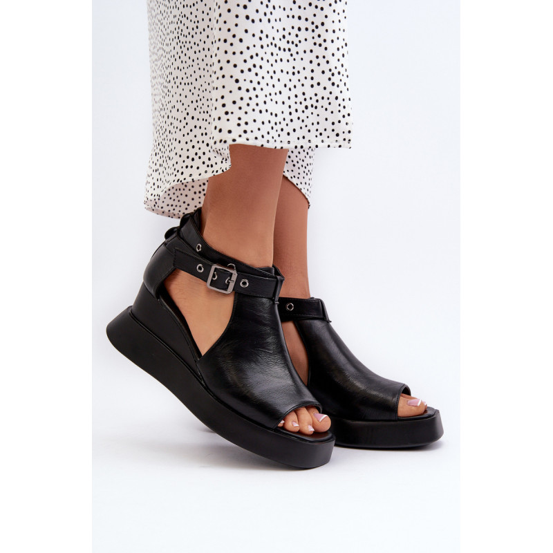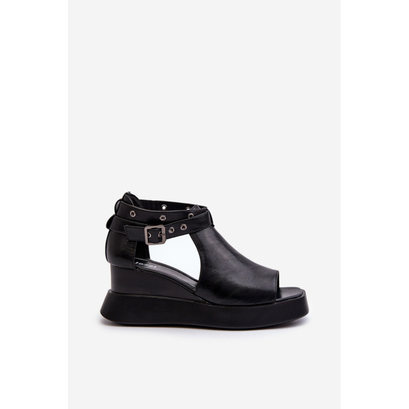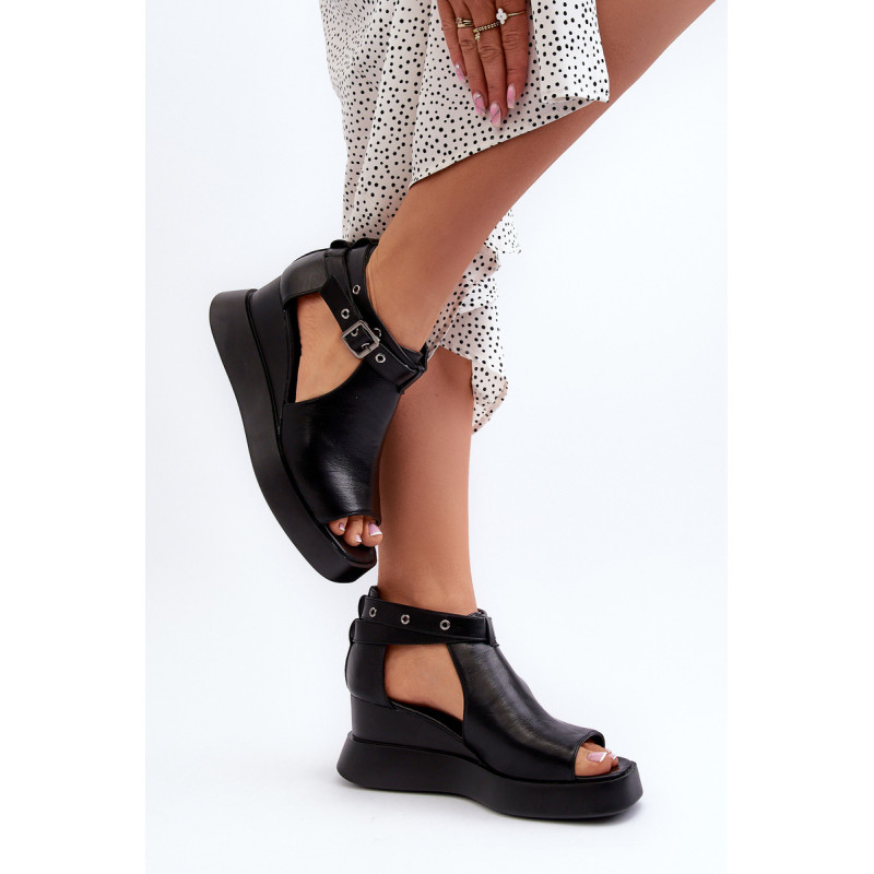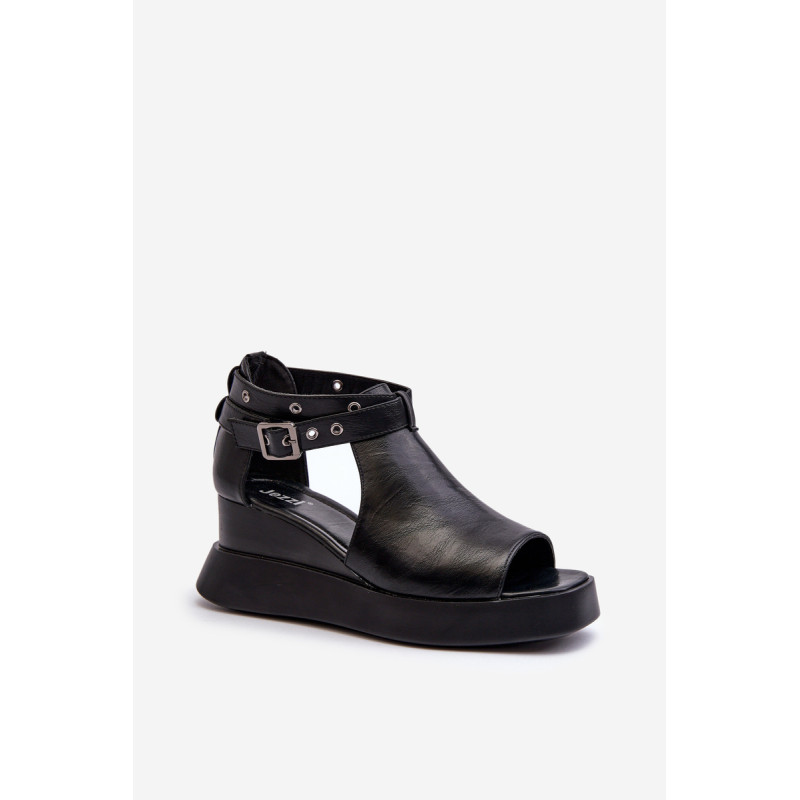 Moteriški Jezzi sandalai, pagaminti iš ekologiškos odos. Platforma ir pleištinis kulnas suteikia jiems šiuolaikišką išvaizdą ir patogumą dėvint. Viršutinė viršutinės dalies dalis dekoruota petnešėlėmis. Šios basutės tikrai pritrauks dėmesį! Rinkdamiesi dydį, žiūrėkite dydžių lentelę.