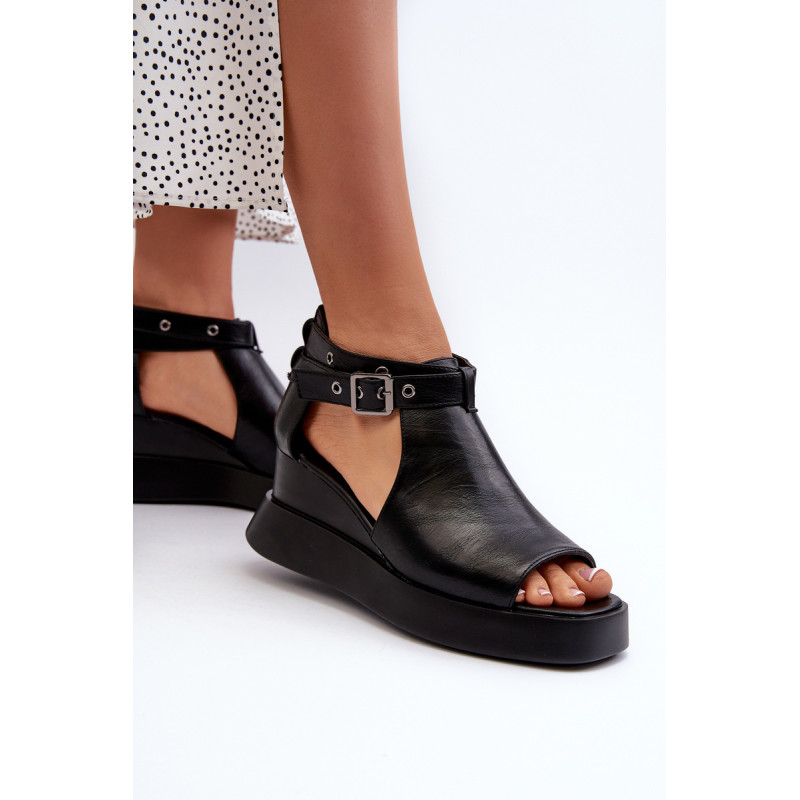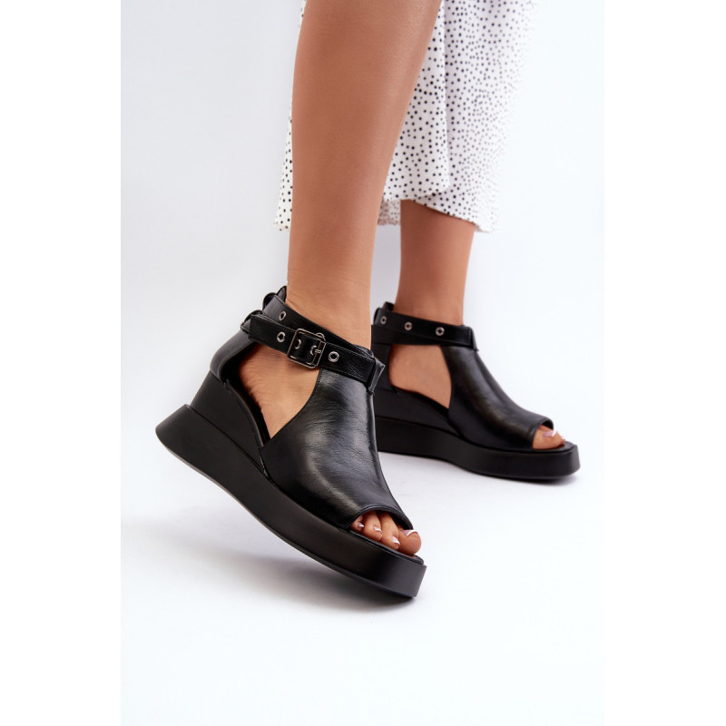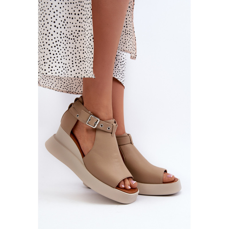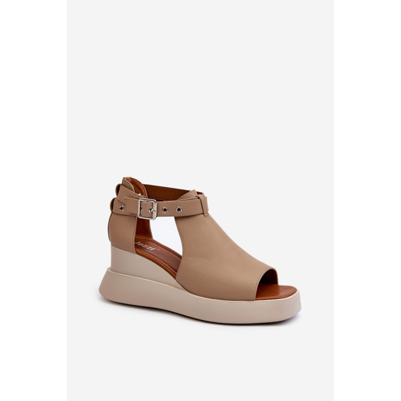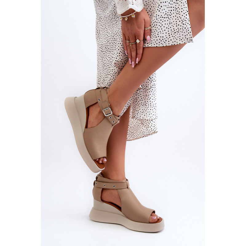 Moteriški Jezzi sandalai, pagaminti iš ekologiškos odos. Platforma ir pleištinis kulnas suteikia jiems šiuolaikišką išvaizdą ir patogumą dėvint. Viršutinė viršutinės dalies dalis dekoruota petnešėlėmis. Šios basutės tikrai pritrauks dėmesį! Rinkdamiesi dydį, žiūrėkite dydžių lentelę.