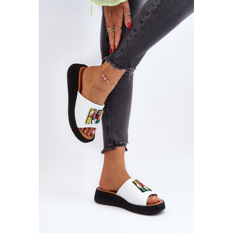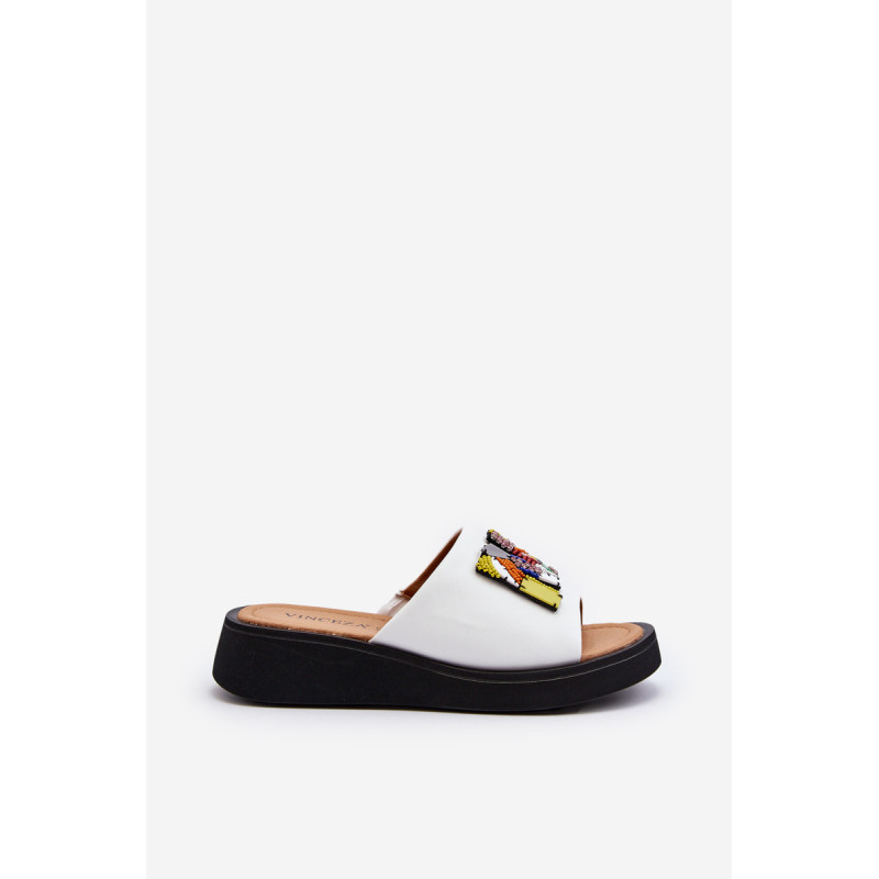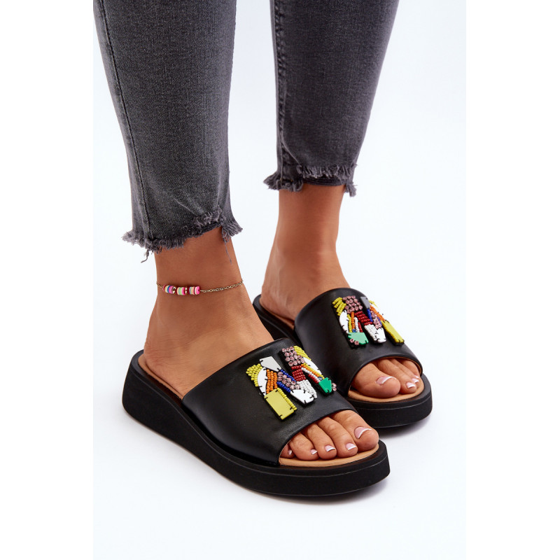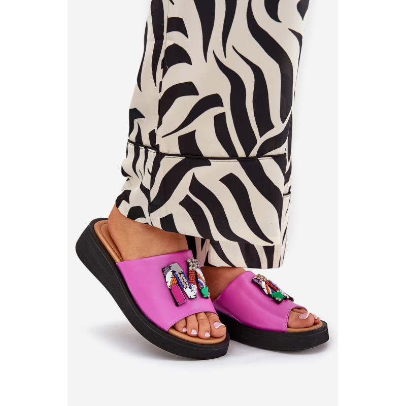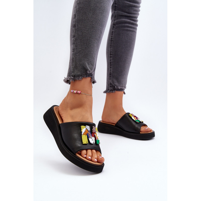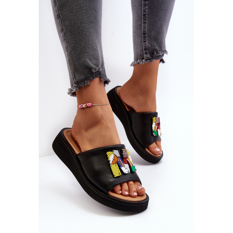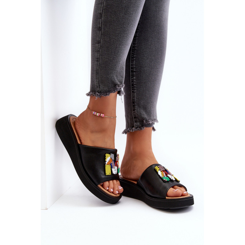 Moteriškos čiuožyklos pagamintos iš natūralios odos. Šio modelio priekyje yra papuošimas. Skaidrės dedamos ant platformos ir subtilaus pleišto. Minkštas vidpadis iš natūralios odos leidžia patogiai avėti avalynę. Šios įdomaus dizaino skaidrės tikrai tiks daugelyje stilizacijų! Jūs tikrai turite juos turėti savo vasaros garderobe! Rinkdamiesi dydį, žiūrėkite dydžių lentelę.