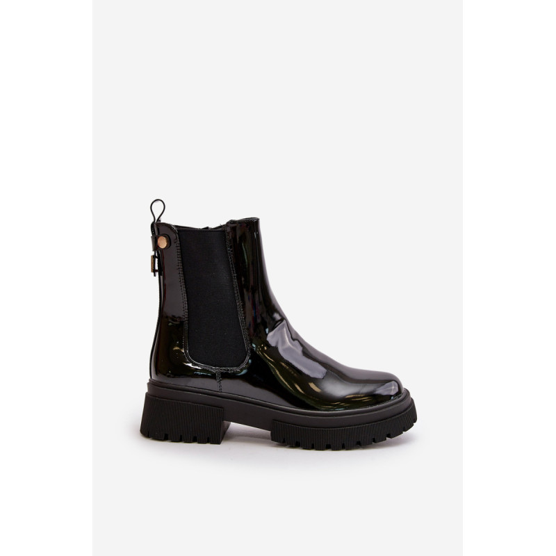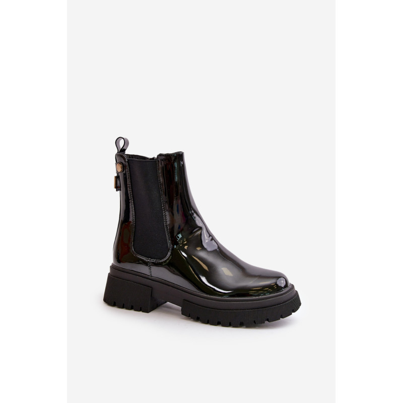 Elegantiški lakinės odos batai, puikiai tinkantys vėsesnėms dienoms. Užsegamas patogiu užtrauktuku, todėl lengva užsidėti ir nusiimti. Vidus išklotas batų antklode, suteikiančia šilumą ir komfortą. Batų nugarėlėje yra aukso papuošimas, suteikiantis jiems unikalaus charakterio ir elegancijos. Šie batai yra puikus pasirinkimas kiekvienai moteriai, kuri vertina stilių ir patogumą. Rinkdamiesi dydį žiūrėkite dydžių lentelę.