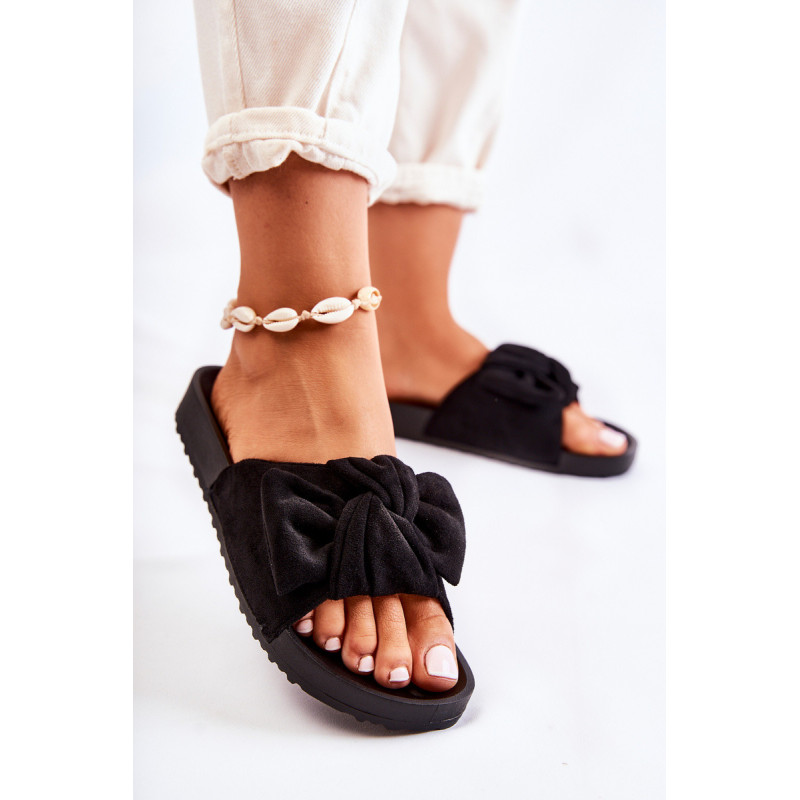 Klasikinės moteriškos šlepetės pagamintos iš malonios liesti ekologiškos zomšos. Šlepetės turi mielą lankelį priekyje. Įdėklas yra profiliuotas ir pagamintas iš guminės medžiagos. Ant platformos pastatyti šlepetės. Modelis, kuris puikiai tiks kasdienei veiklai, pvz. apsipirkdami ar vaikščiodami. Šį modelį galite dėvėti su raštuota suknele, pieštuko formos sijonu ar šortais. Jūs tikrai turėtumėte įsigyti naują batų porą, todėl nelaukite ir įsigykite juos šiandien! Renkantis dydį, naudokite dydžių lentelę.