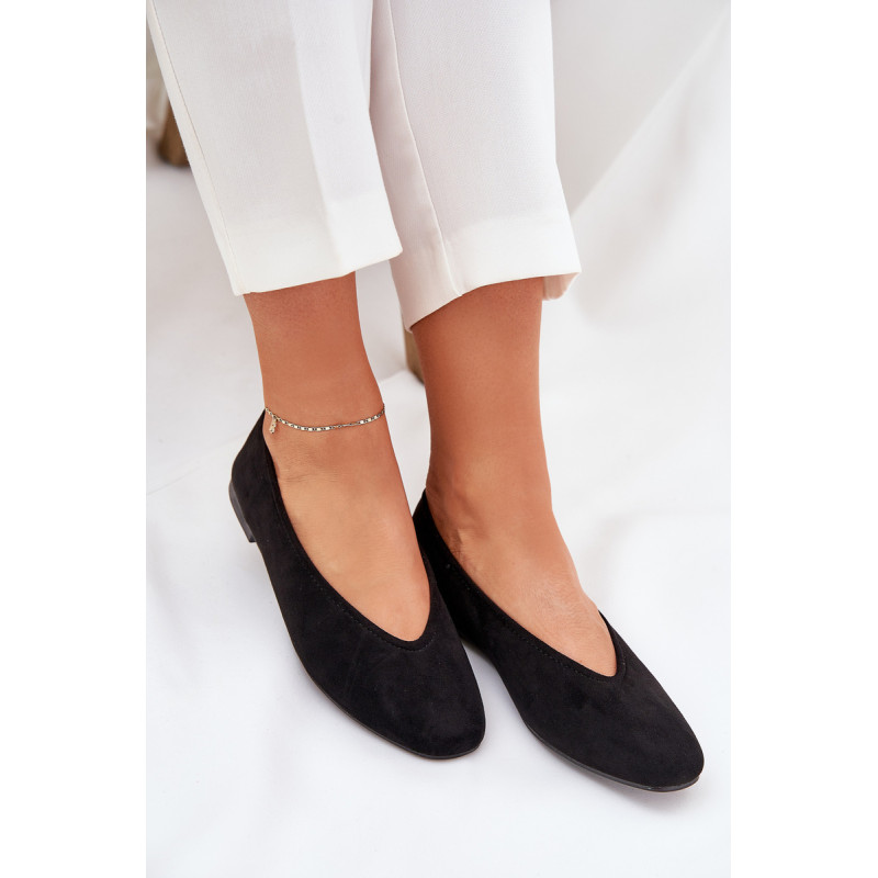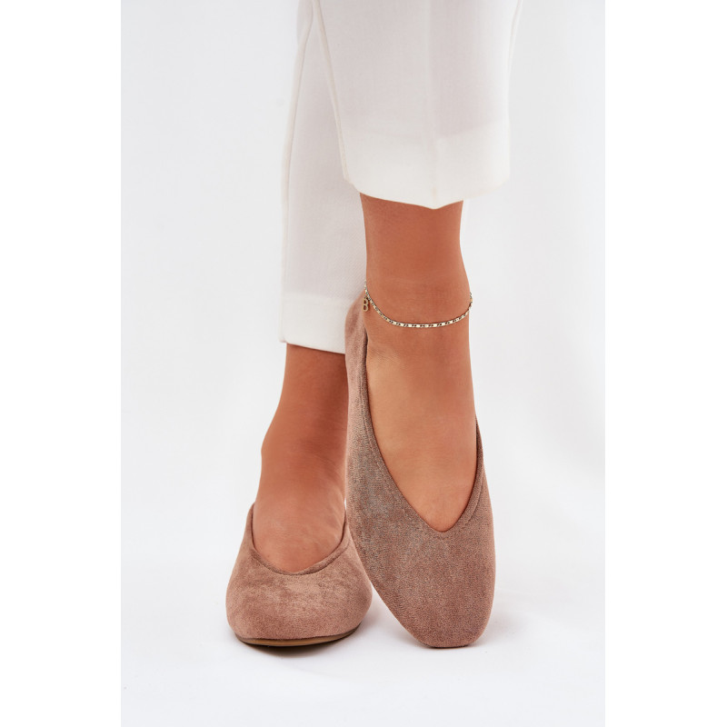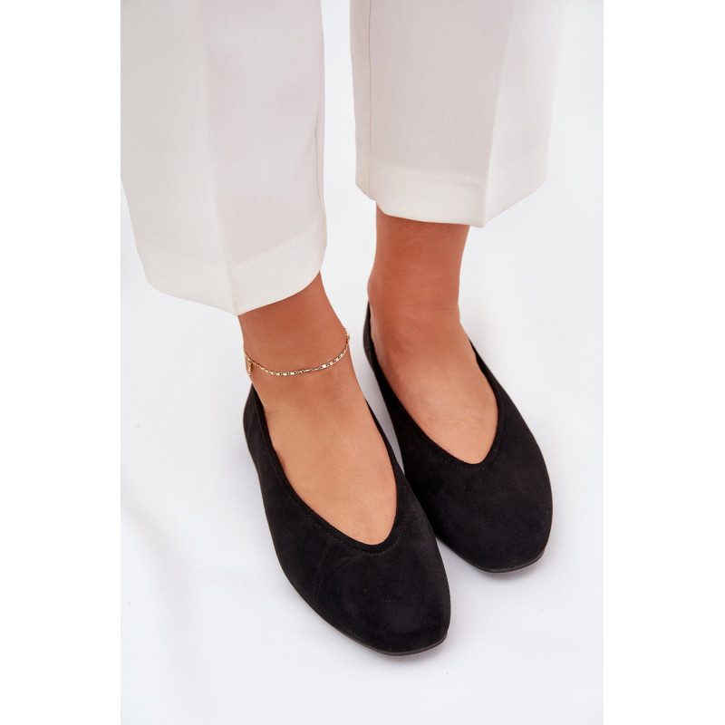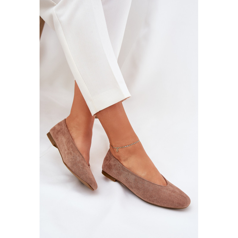 Klasikiniai balerinos, pagaminti iš ekologiškos zomšos, ant plokščio kulno. Modelis su švelniai apvaliais pirštais, suteikiančiais subtilų ir elegantišką išvaizdą. Idealiai tinka kasdieniams stiliams, užtikrinantiems komfortą ir stilių visą dieną. Renkantis dydį, vadovaukitės dydžių lentele.