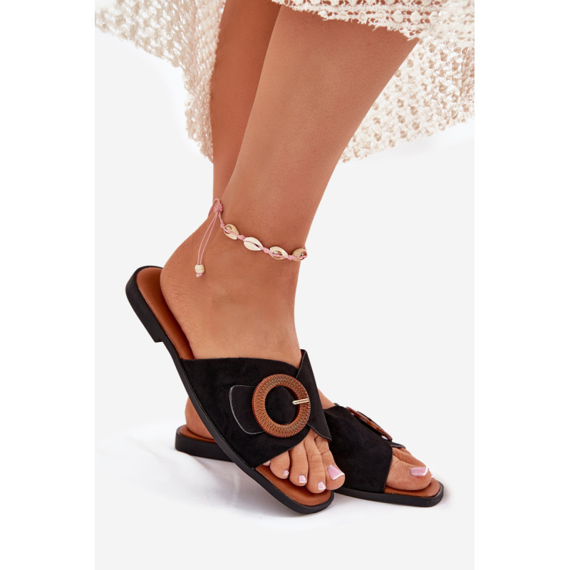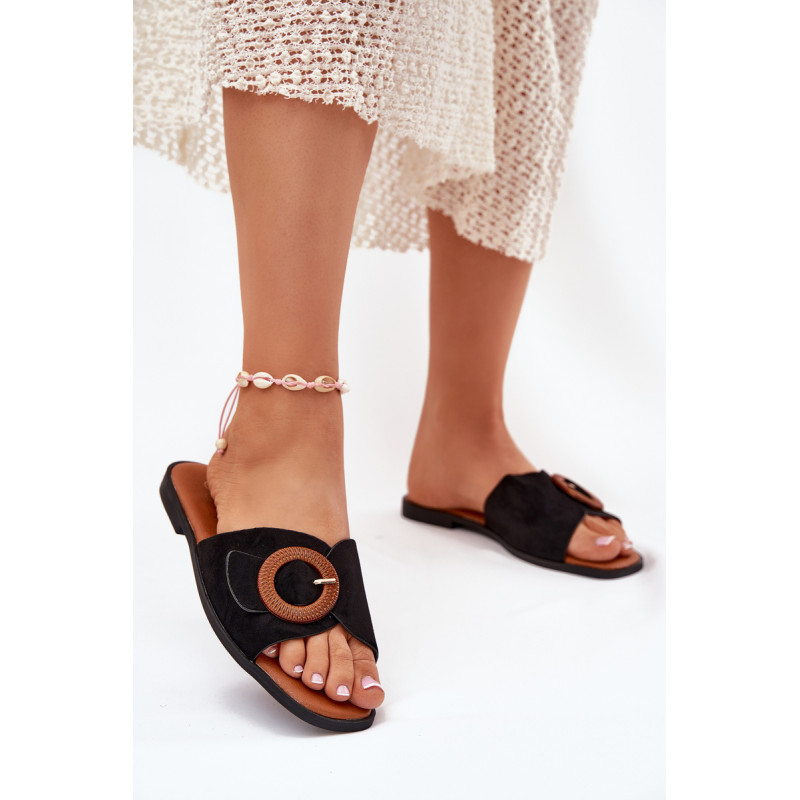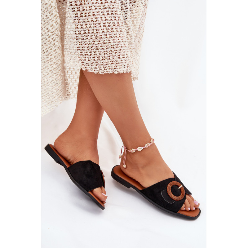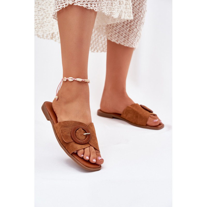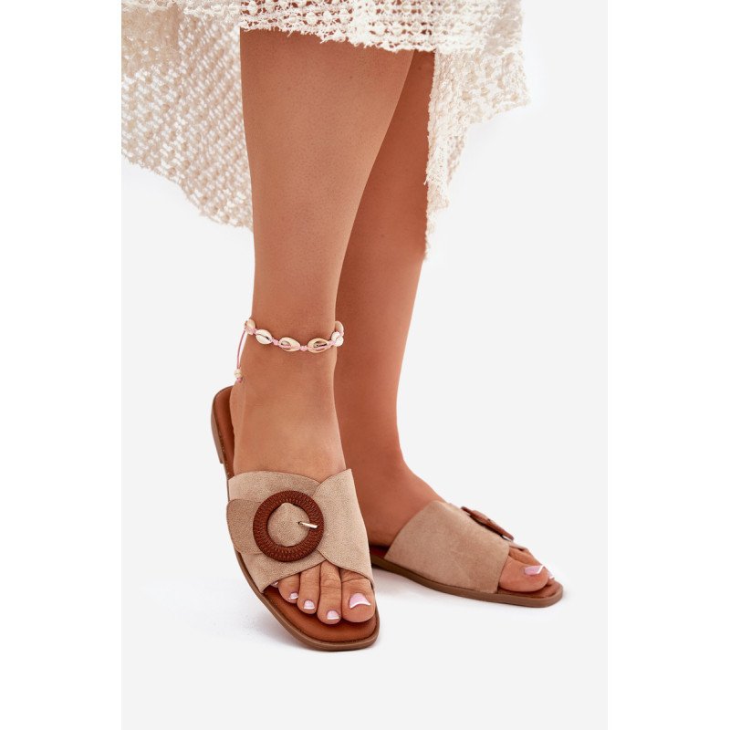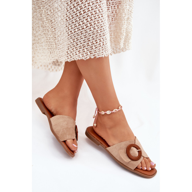 Moteriški sandalai su plokščiu padu, pagaminti iš eko zomšos, yra elegantiškas ir patogus pasirinkimas šiltoms dienoms. Šis modelis išsiskiria dekoratyvine sagtimi, suteikiančia jiems unikalų charakterį. Idealiai tinka kasdieniam dėvėjimui, jie sujungia paprastumą su madingu akcentu, puikiai derinasi su vasaros stiliais. Renkantis dydį, vadovaukitės dydžių lentele.