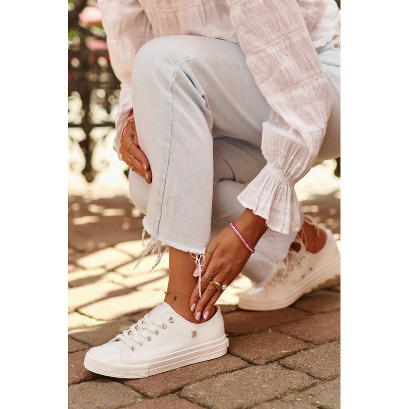 Ltūs sportbačiai su guminiu padu yra puikus pasirinkimas moterims, kurios vertina patogumą ir stilių. Pagaminta iš aukštos kokybės tekstilės medžiagos. Dėl minimalistinio dizaino jie puikiai tinka įvairiai stilizacijai, tinka tiek prie džinsų, tiek prie sijonų, tiek prie sportinės aprangos. Derinkite juos prie savo mėgstamos išvaizdos ir mėgaukitės komfortu visą dieną. Rinkdamiesi dydį, žiūrėkite dydžių lentelę.