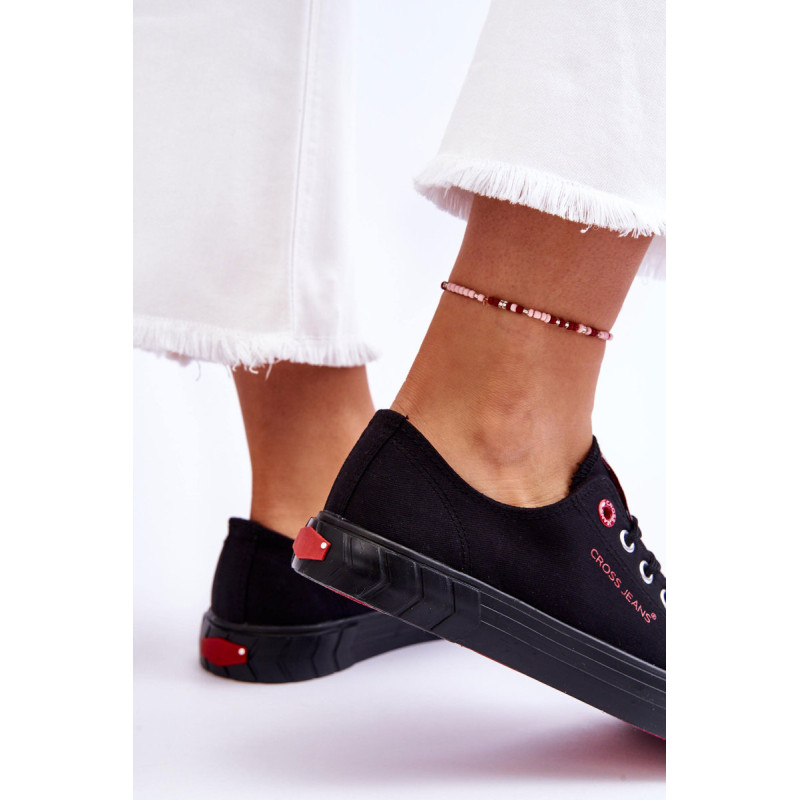 Puikūs klasikiniai Cross Jeans sportbačiai. Batai puikiai prisitaiko prie pėdos formos, dėka medžiaginio viršaus. Jie turi minkštą vidpadį ir neslidų padą. Klasikinis, suvarstomas modelis, kurį nesunkiai priderinsite prie pėdos pločio. Batai turi sustiprintą, guminį nosies dangtelį ir standintą kulno skaitiklį. Šone yra „Cross Jeans“ prekės ženklo logotipas. Rinkdamiesi dydį, žiūrėkite dydžių lentelę.