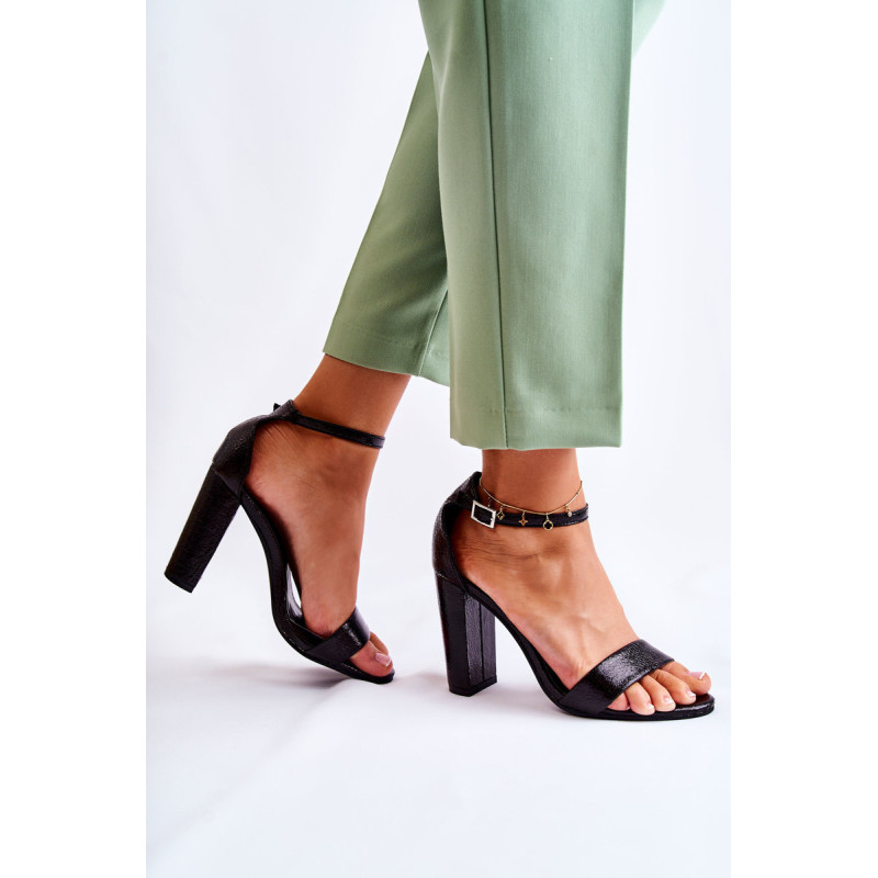 Klasikiniai moteriški sandalai su aukštakulniais stulpelio formos. Pagaminta iš eko odos. Šie batai turi minkštą vidpadį, kurį patogu naudoti. Mėgaukitės įvairių švenčių ar susitikimų patogumu. Sandalai turi reguliuojamą dirželį su sagtimi, kurio dėka jas galima puikiai priderinti prie pėdos dydžio. Šie batai turi standintą kulną. Renkantis dydį, naudokite dydžių lentelę.