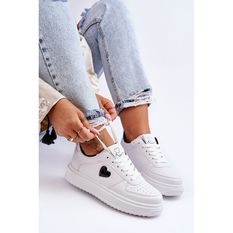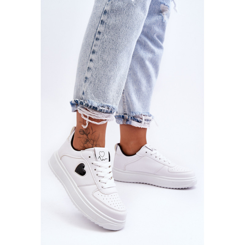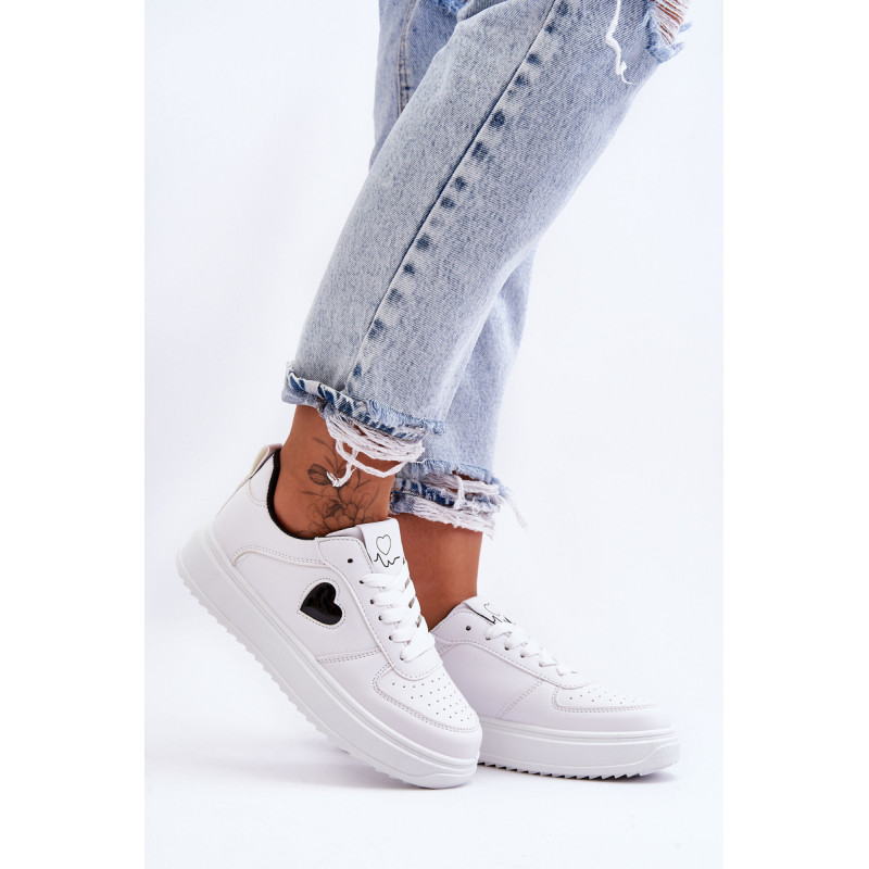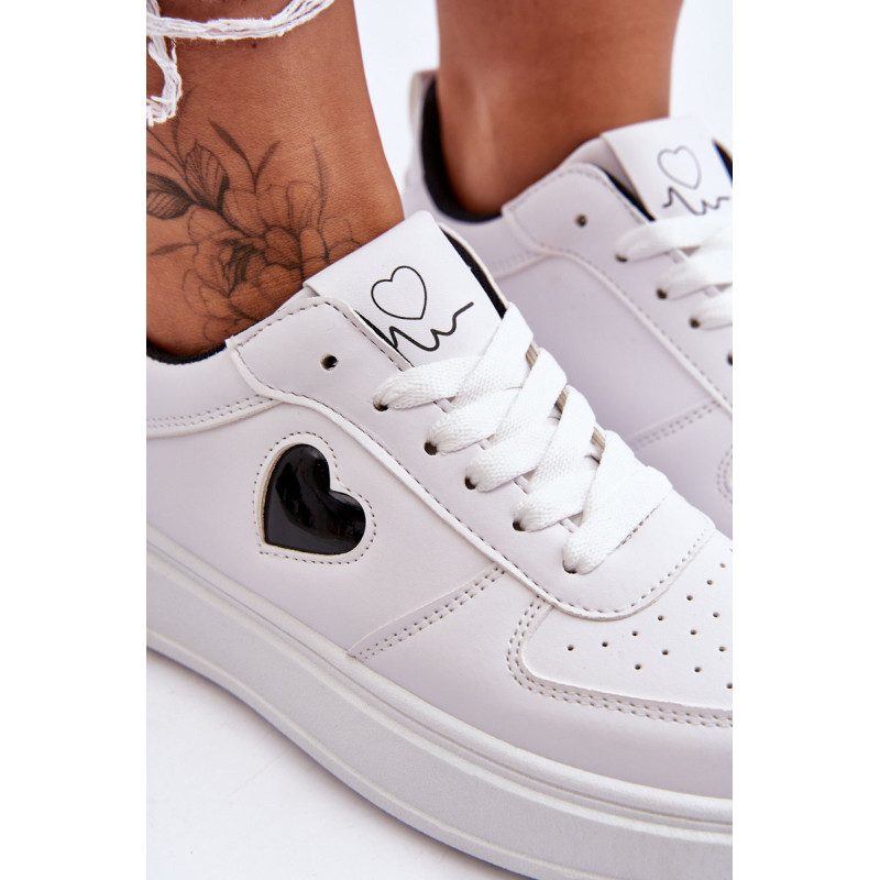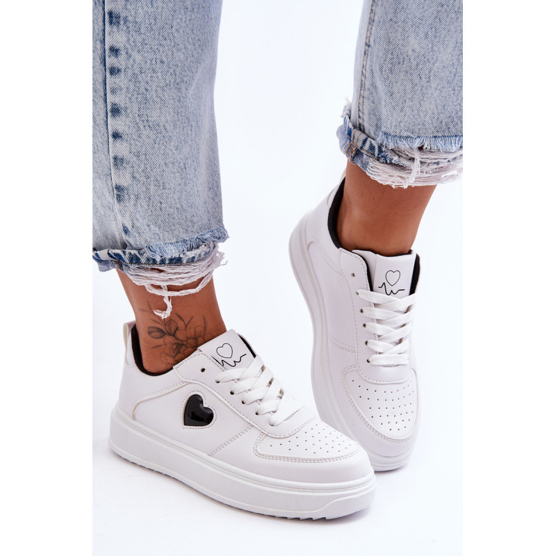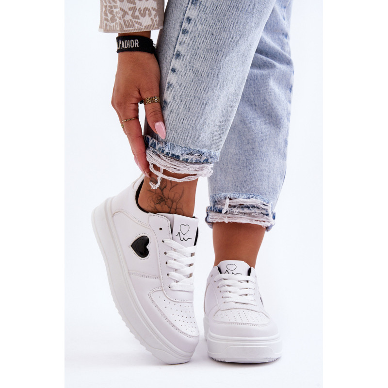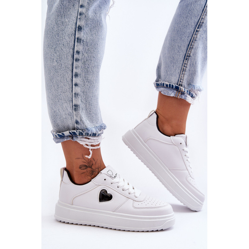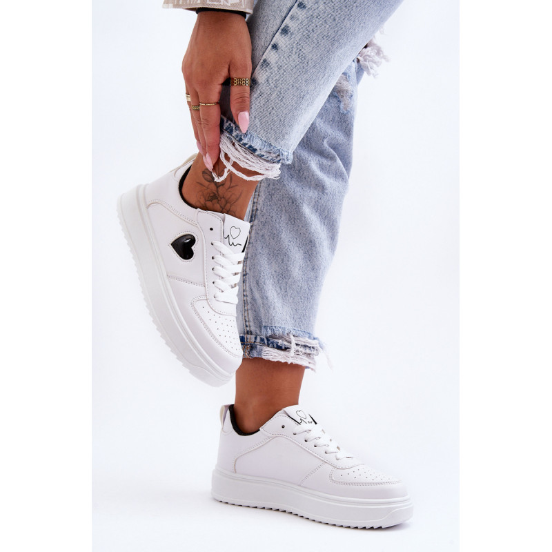 Moteriški sportiniai batai buvo pagaminti iš ekologiškos odos. Šis modelis yra suvarstytas klasikiniu būdu. Batai dedami ant masyvios platformos. Jie puikiai tiks kaip kasdieniai batai į darbą ar mokyklą. Viršutinėje pusėje jie buvo papuošti miela širdele. Vidpadis pagamintas iš medžiagos, kuri pasirūpins jūsų patogumu naudojant. Renkantis dydį, vadovaukitės dydžių lentele.