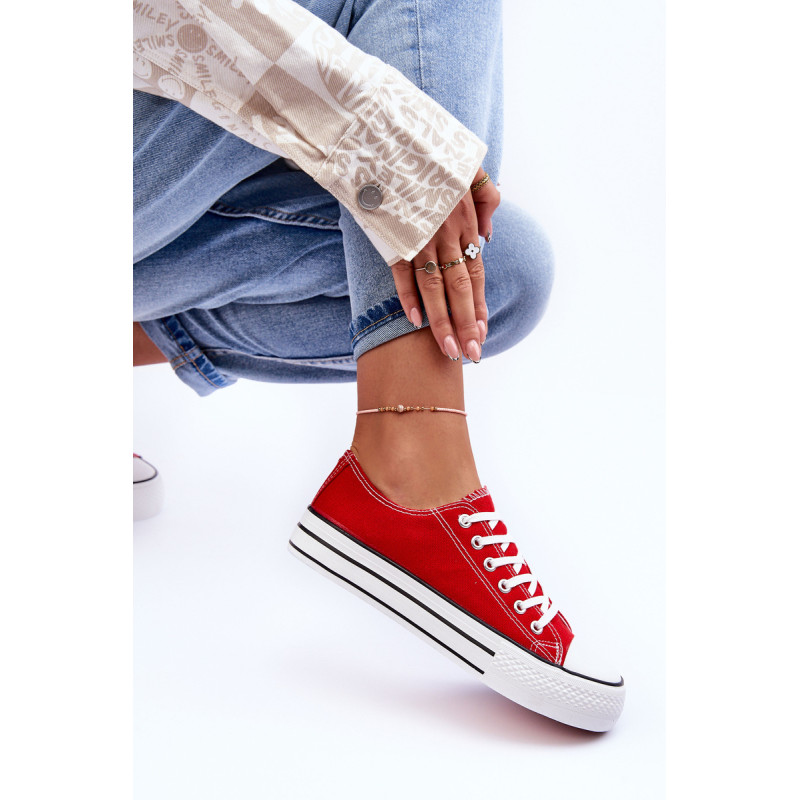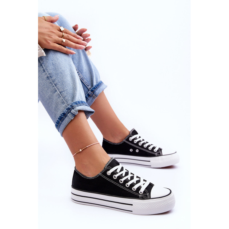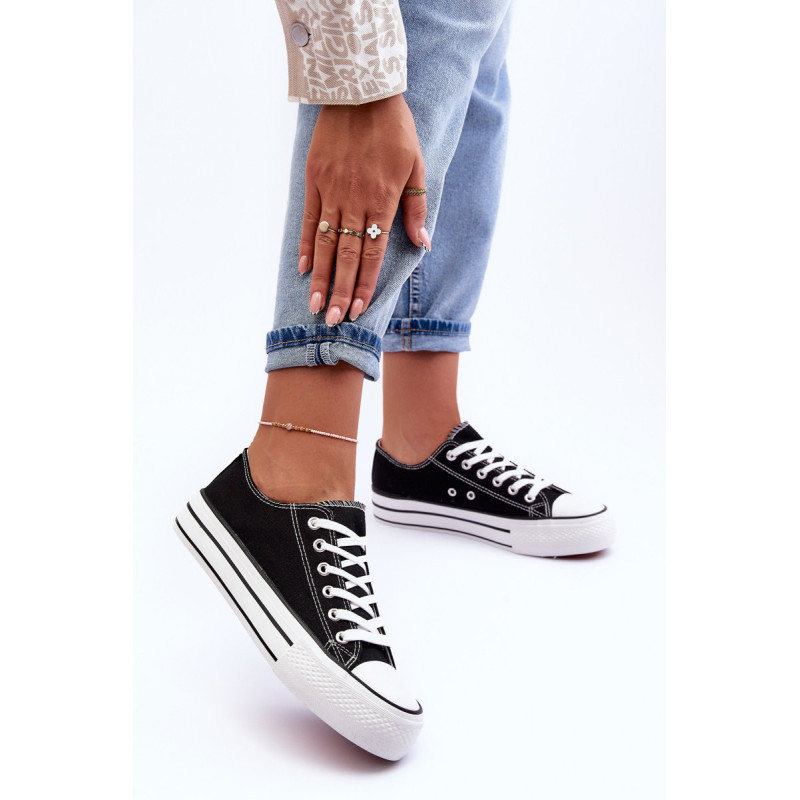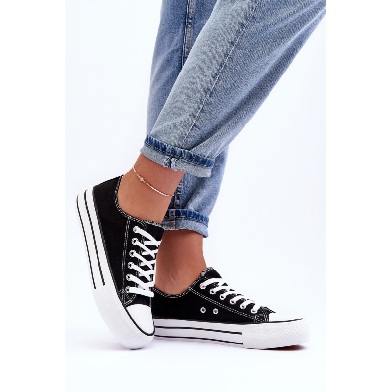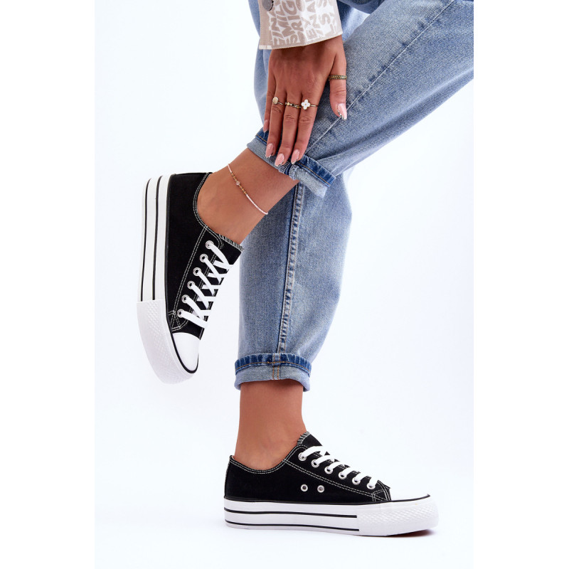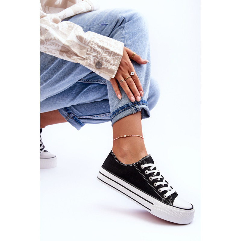 Klasikiniai, suvarstomi moteriški sportbačiai buvo pagaminti iš tekstilės. Įrengtas ant didžiulės platformos. Guminis padas neslysta. Nesenstantis modelis, kurį turėtumėte turėti savo spintoje! Neabejotinai galite juos nešioti įvairiems stiliaus variantams! Antgalis sutvirtintas guma. Renkantis dydį, vadovaukitės dydžių lentele.