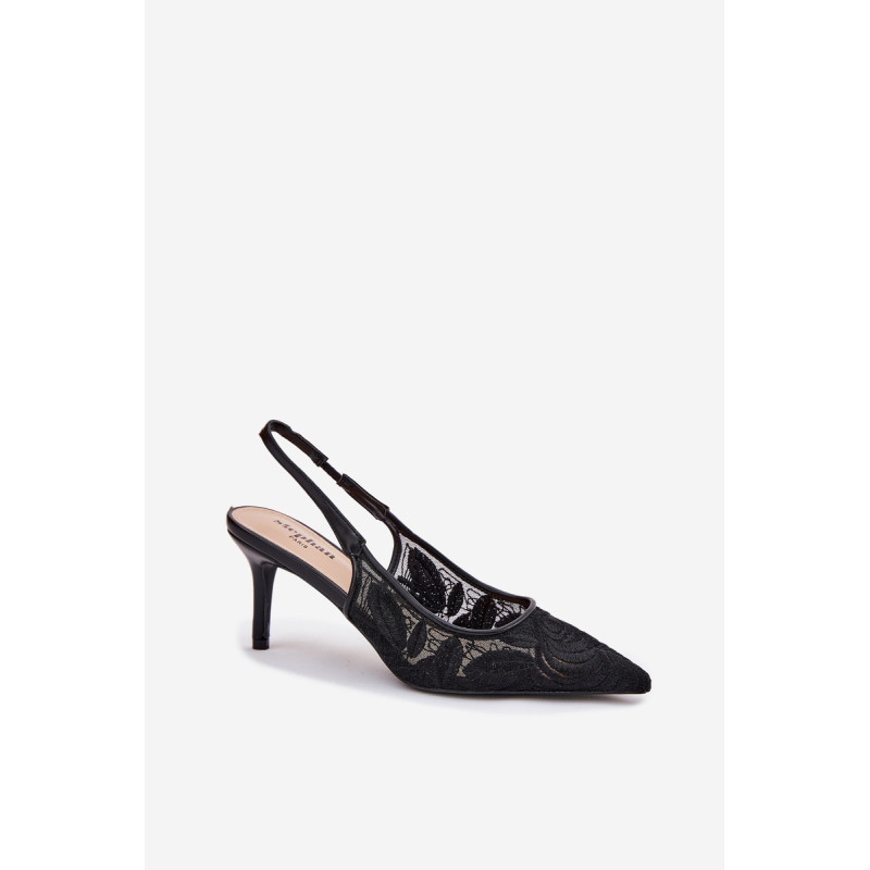 Moteriški nėriniuoti aukštakulniai bateliai yra elegantiškas ir subtilus pasirinkimas ypatingoms progoms. Smailūs nosiai suteikia jiems lieknumo, pabrėždami moterišką siluetą, o subtilus nėrinys prideda romantišką ir stilingą charakterį. Idealiai tinka vakariniams išėjimams, vestuvėms ar kitoms oficialioms šventėms, jie derina klasikinį dizainą su moderniu akcentu. Renkantis dydį, vadovaukitės dydžių lentele.