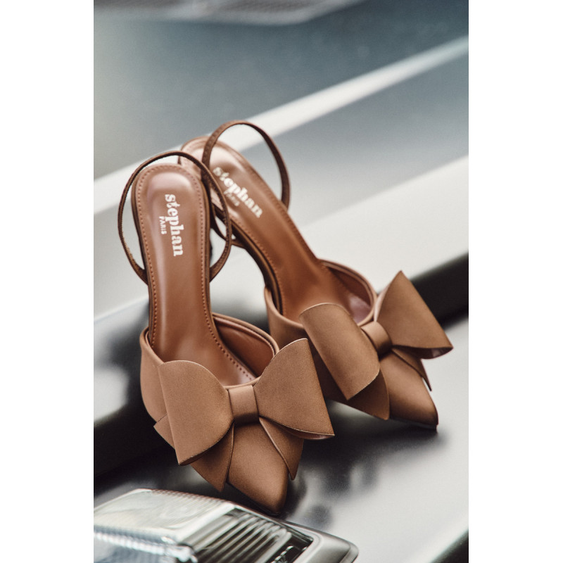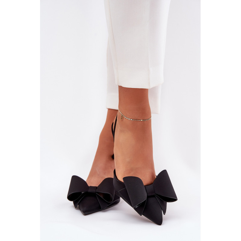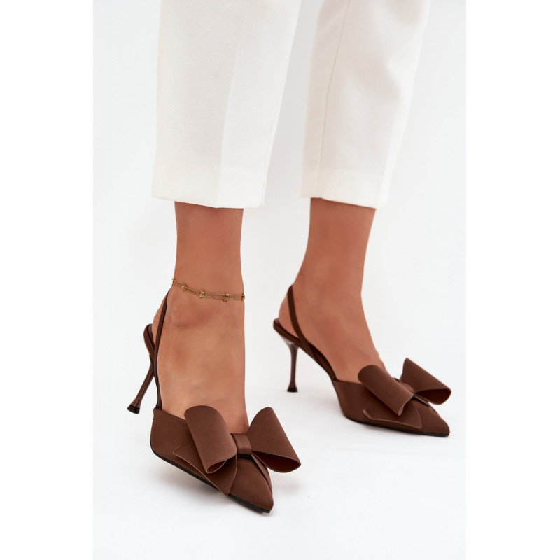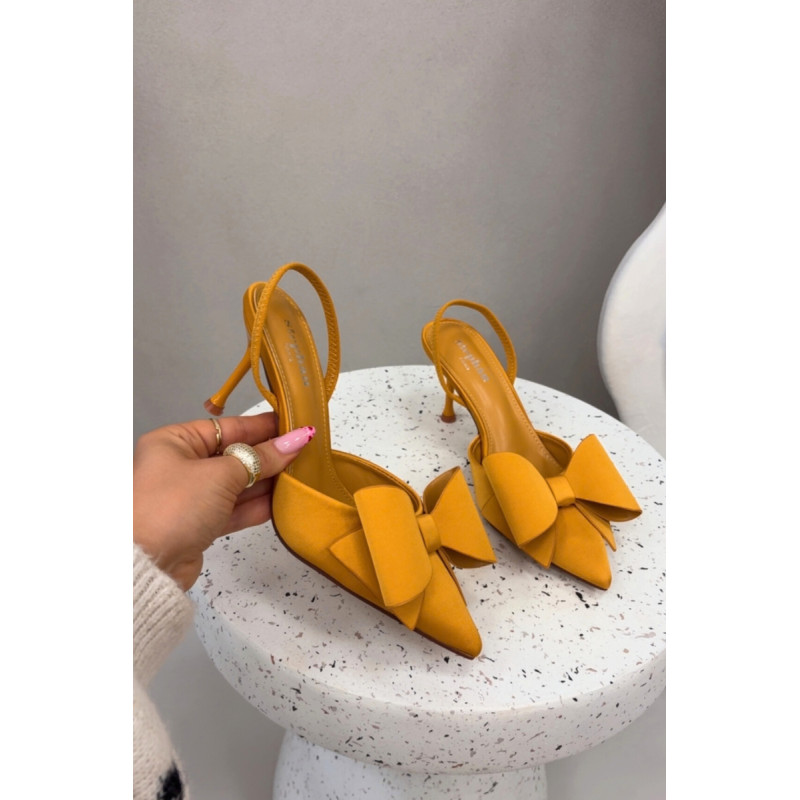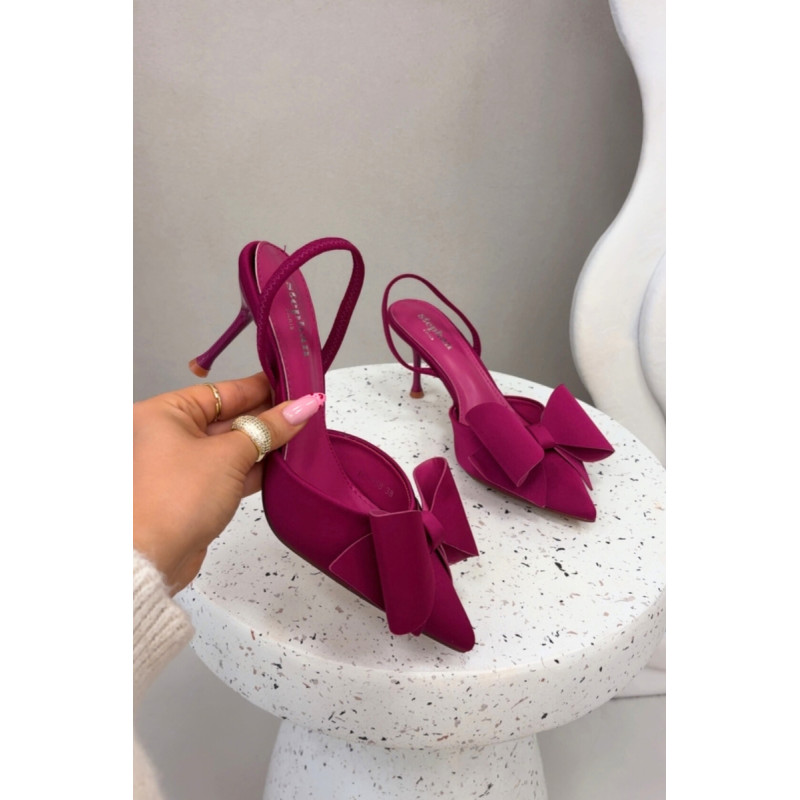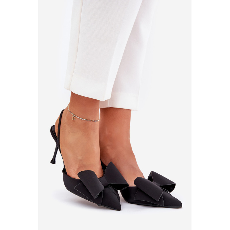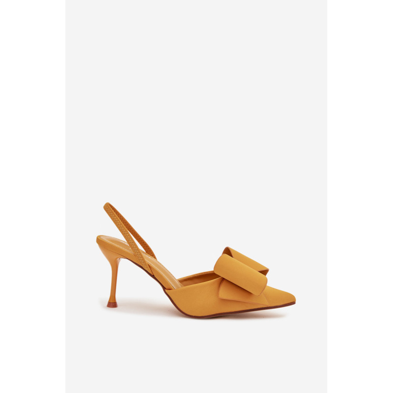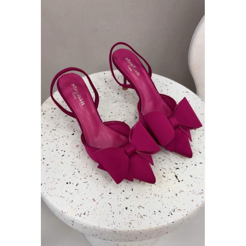 Eleganti moteriški aukštakulniai su atvira kulna yra puikus pasirinkimas moterims, norinčioms sujungti stilių su komfortu. Pagaminti iš tekstilės medžiagos. Smailūs kojų galai pabrėžia jų subtilią eleganciją, o priekyje esanti kaspinas suteikia jiems papildomo žavesio. Jie puikiai tinka įvairioms progoms, nuo oficialių susitikimų iki vakarinių išėjimų. Renkantis dydį, vadovaukitės dydžių lentele.