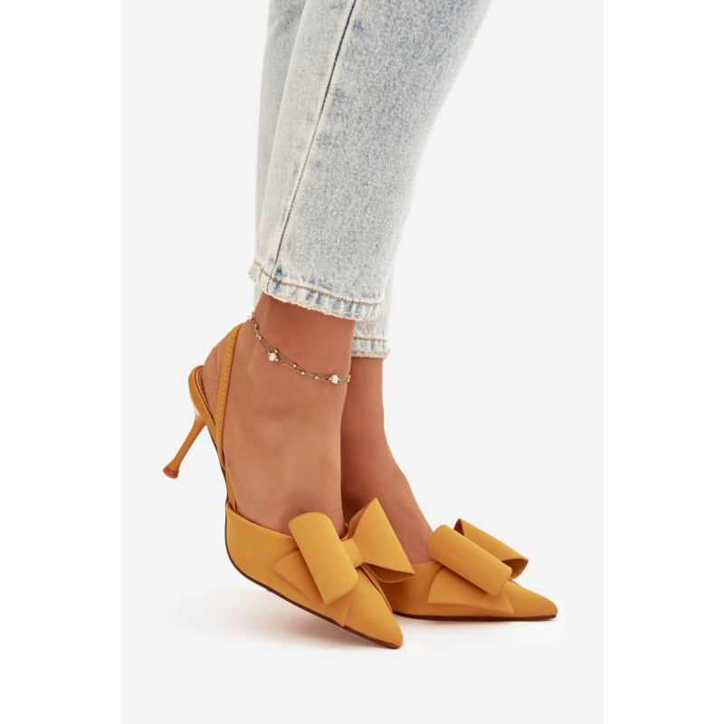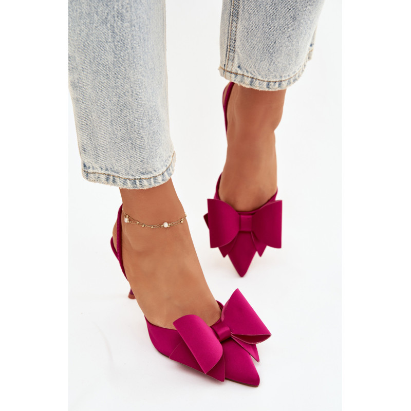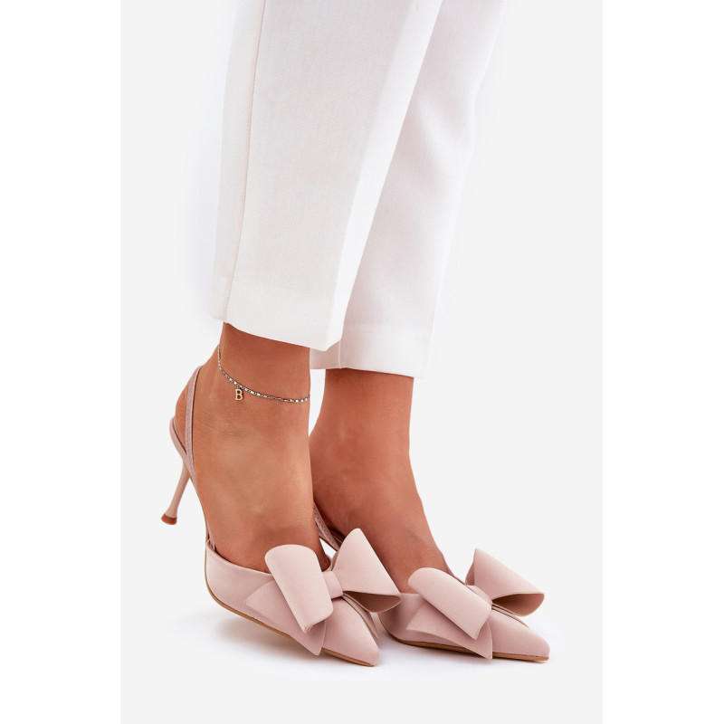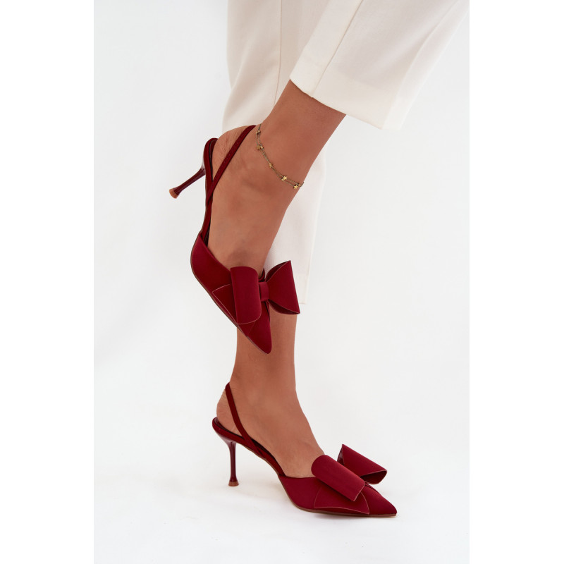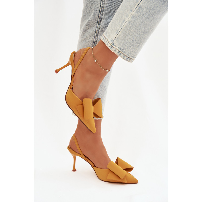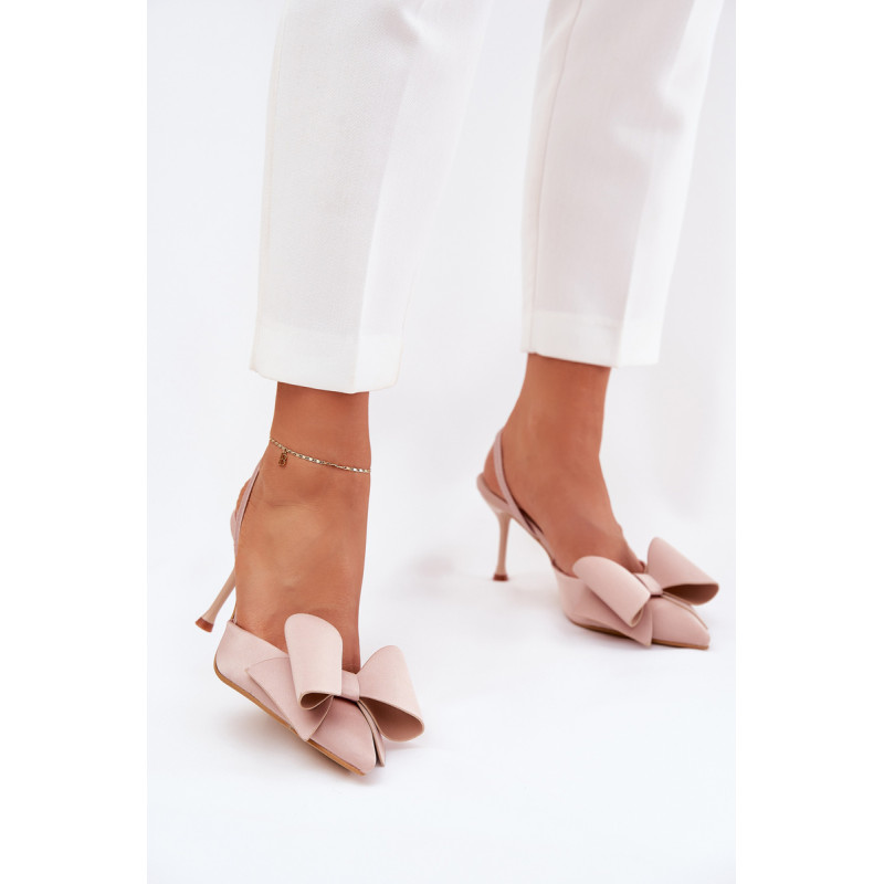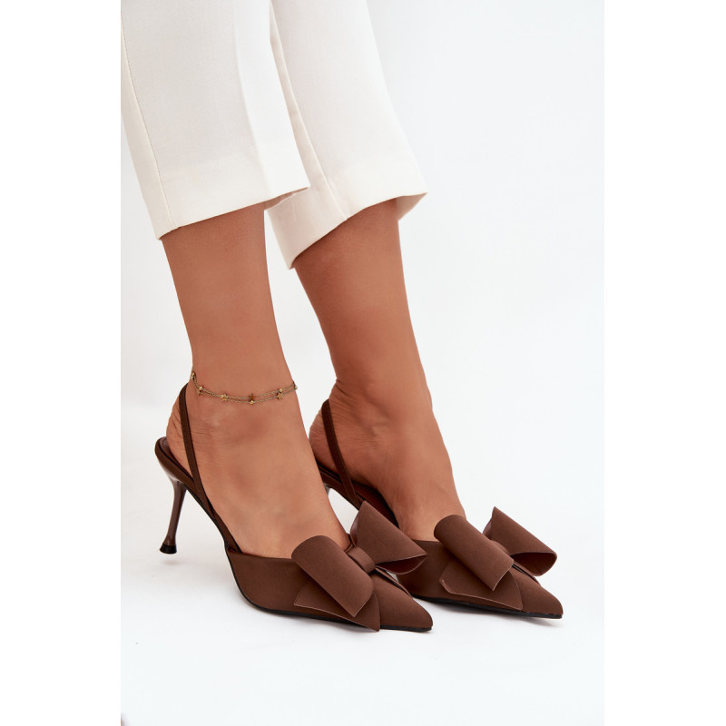 Eleganti moteriški aukštakulniai su atvira kulna yra puikus pasirinkimas moterims, norinčioms sujungti stilių su komfortu. Pagaminti iš tekstilės medžiagos. Smailūs kojų galai pabrėžia jų subtilią eleganciją, o priekyje esanti kaspinas suteikia jiems papildomo žavesio. Jie puikiai tinka įvairioms progoms, nuo oficialių susitikimų iki vakarinių išėjimų. Renkantis dydį, vadovaukitės dydžių lentele.
