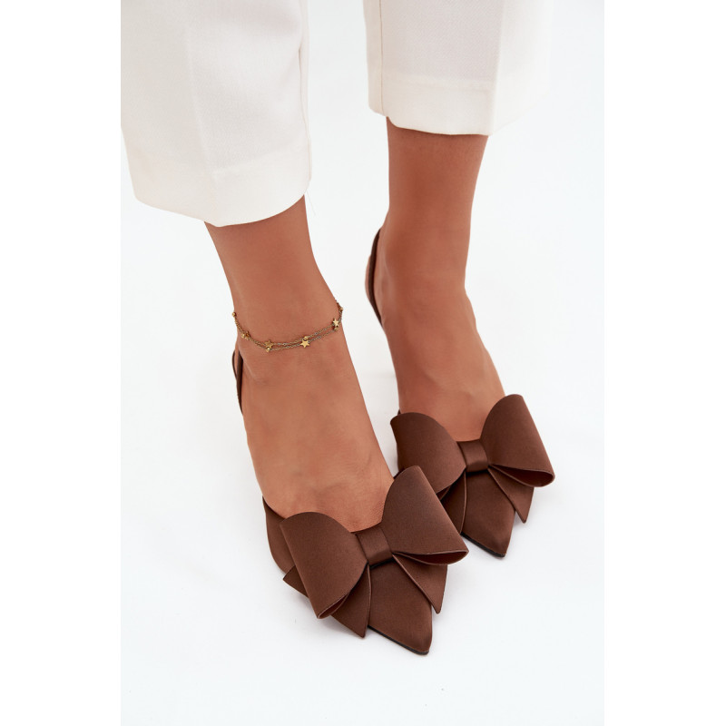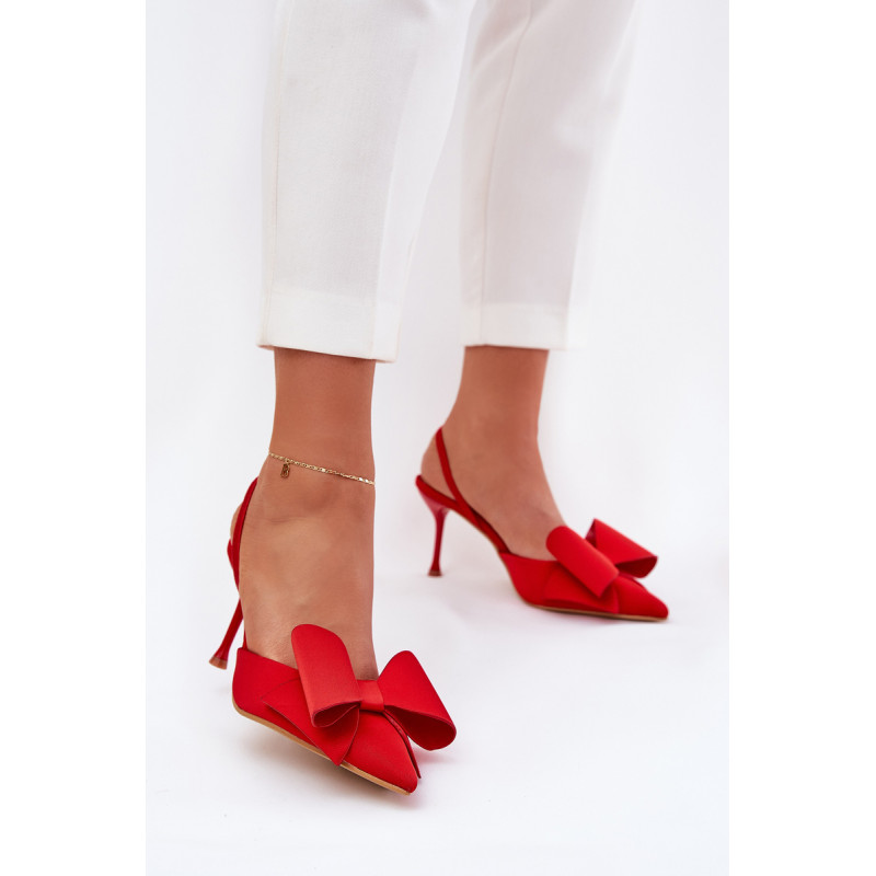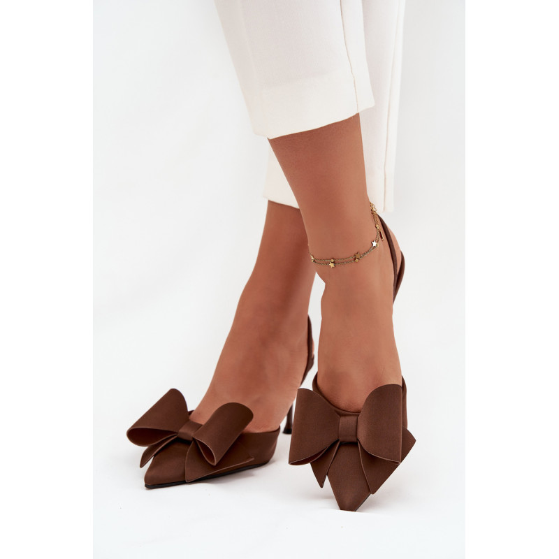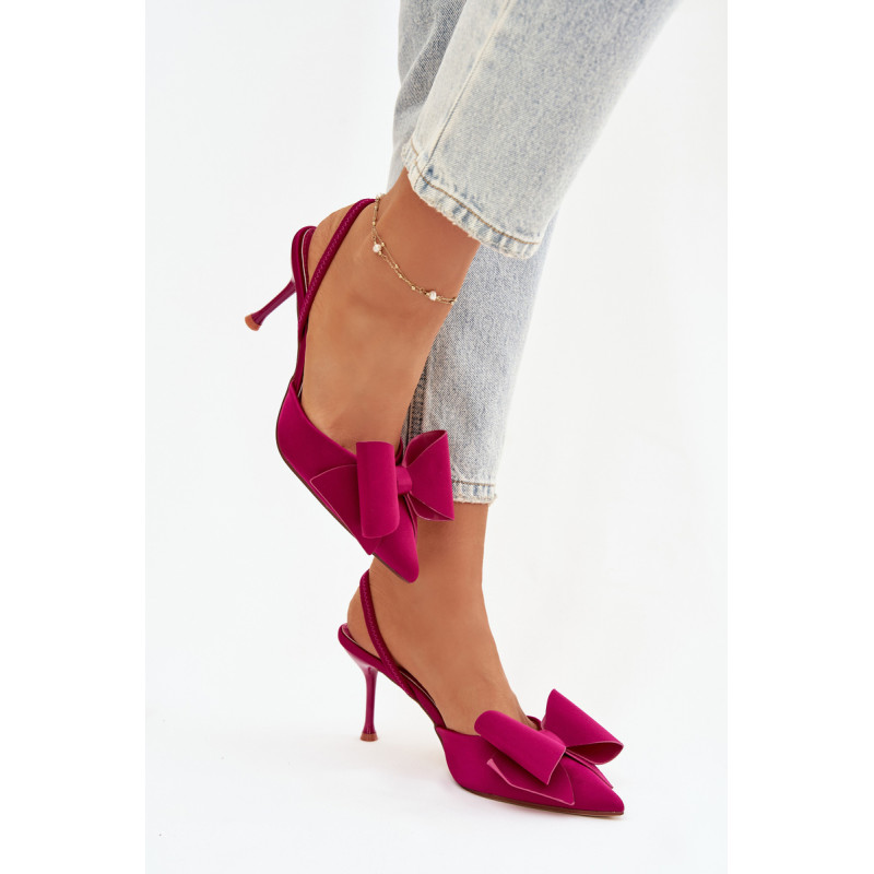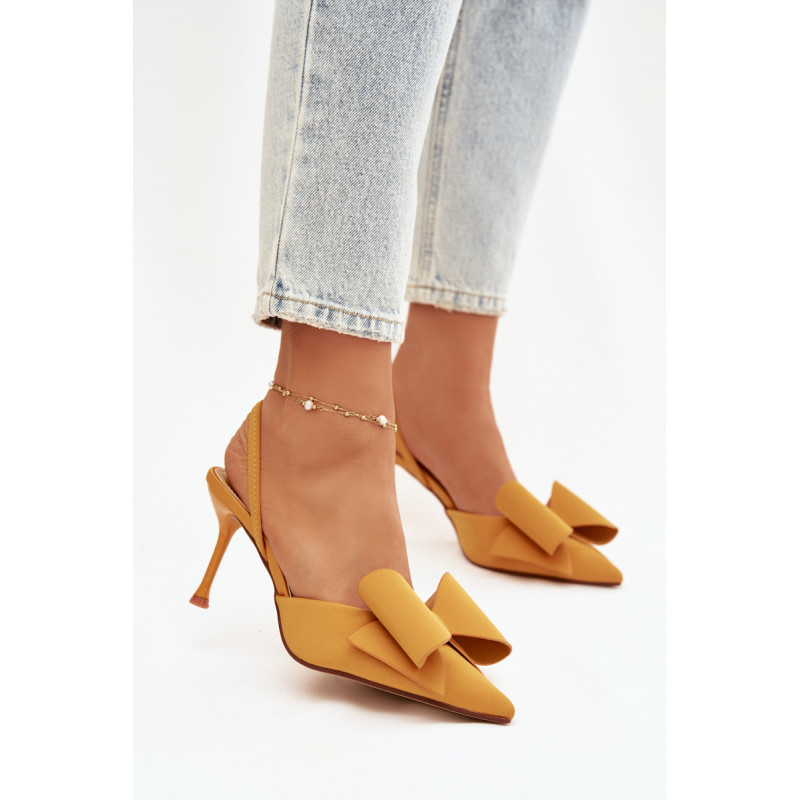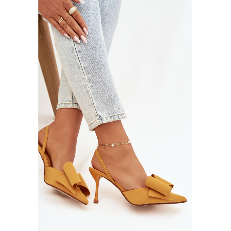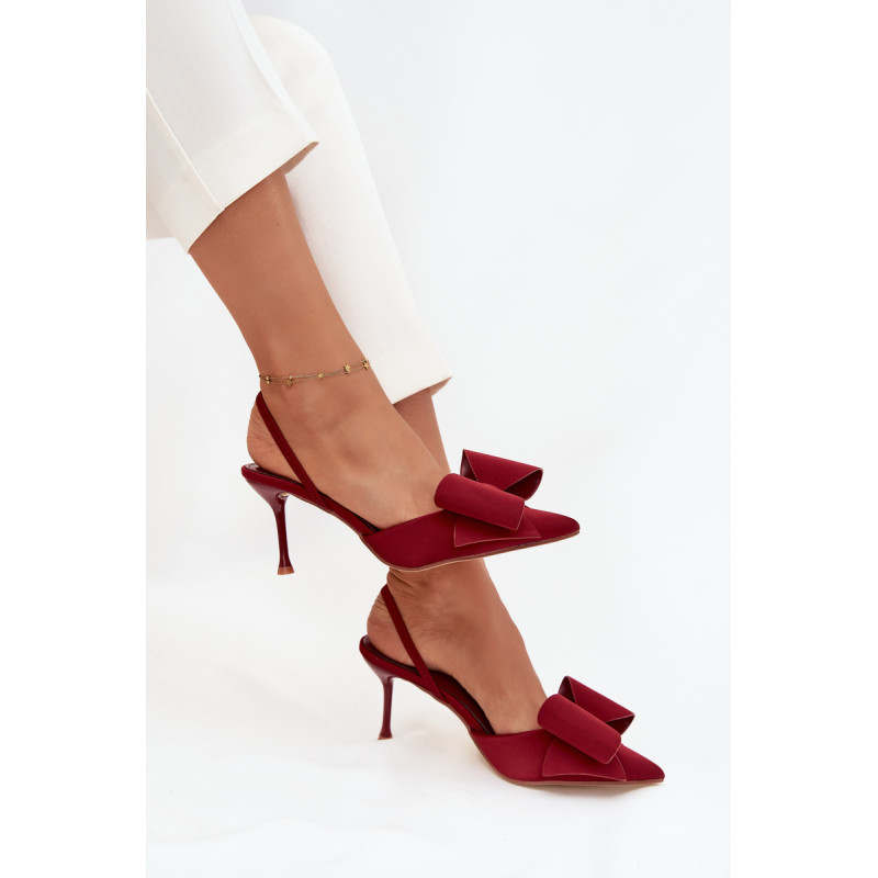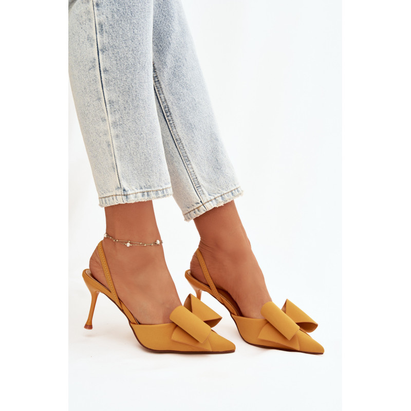Eleganti moteriški aukštakulniai su atvira kulna yra puikus pasirinkimas moterims, norinčioms sujungti stilių su komfortu. Pagaminti iš tekstilės medžiagos. Smailūs kojų galai pabrėžia jų subtilią eleganciją, o priekyje esanti kaspinas suteikia jiems papildomo žavesio. Jie puikiai tinka įvairioms progoms, nuo oficialių susitikimų iki vakarinių išėjimų. Renkantis dydį, vadovaukitės dydžių lentele.