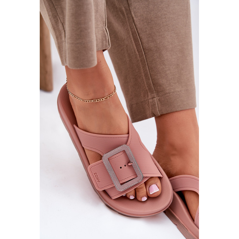 ZAXY moteriški šlepetės yra komforto, stiliaus ir ekologijos derinys. Pagamintos iš veganiškų ir hipoalerginių medžiagų, jos yra 100% perdirbamos, todėl yra draugiškos aplinkai. Modelis išsiskiria dekoratyvine sagtimi priekyje, suteikiančia jam madingą charakterį. Be to, Zaxy yra Brazilijoje gaminami batai, kvepiantys kramtomąja guma, kurie sujungia funkcionalumą su unikalia kvapu. Renkantis dydį, vadovaukitės dydžių lentele.