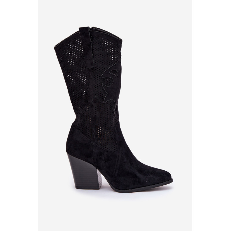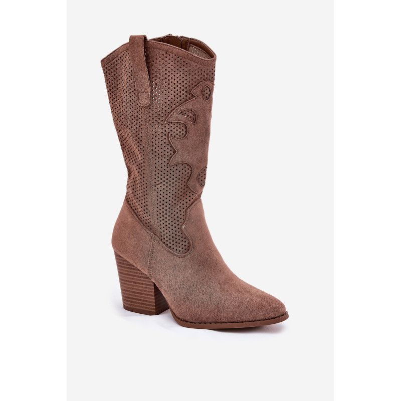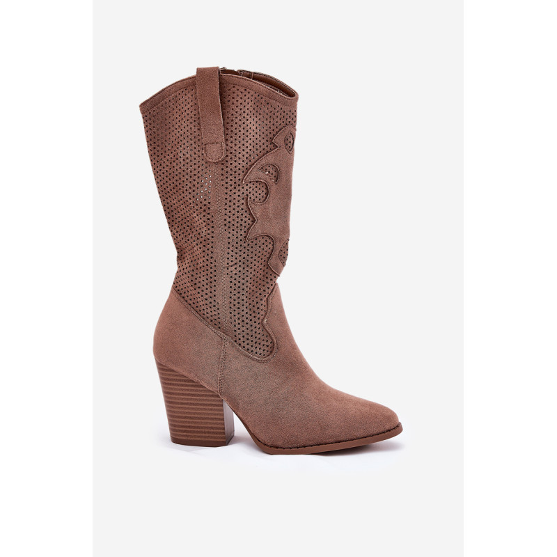 Moteriški kaubojiški batai iš S.Barski prekės ženklo. Pagaminti iš ekologiško zomšos, jie sujungia eleganciją su originaliu stiliumi. Akių šonai suteikia lengvumo ir charakterio. Amandos formos pirštai. Uždarymas su užtrauktuku. Šonai siekia iki pusės blauzdos. Šiuos stilingus batus galite naudoti kasdieniškiems ir boho stiliams. Renkantis dydį, vadovaukitės dydžių lentele.