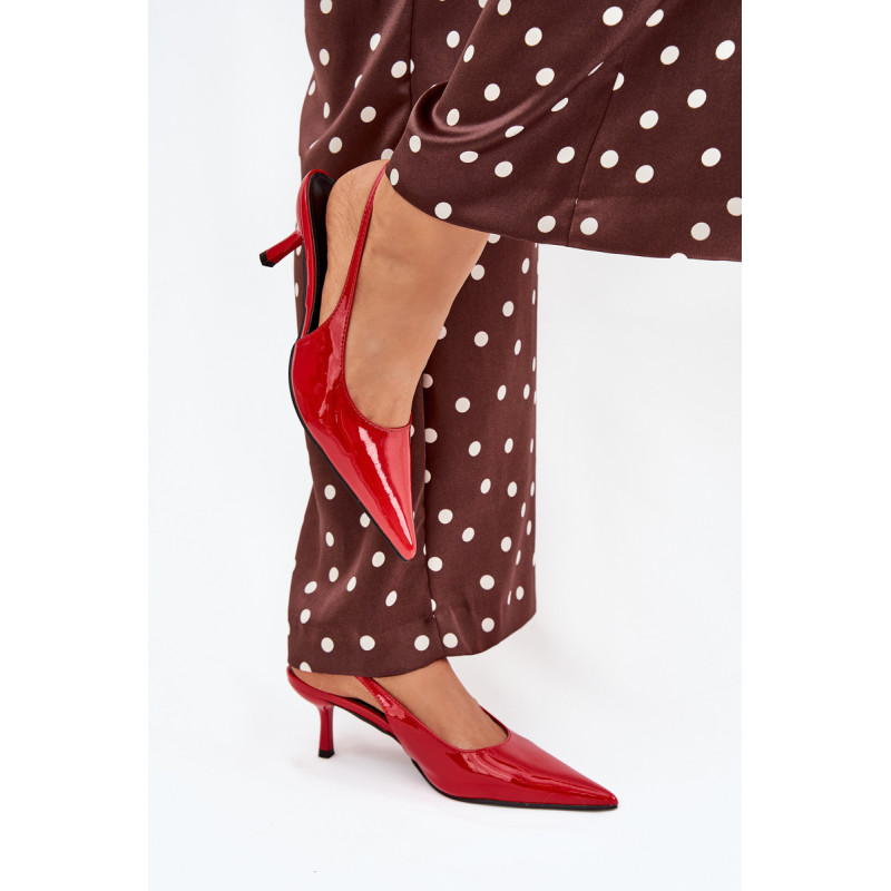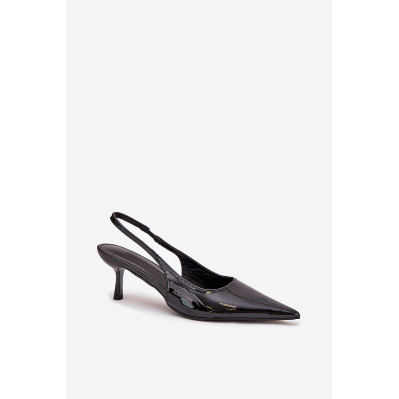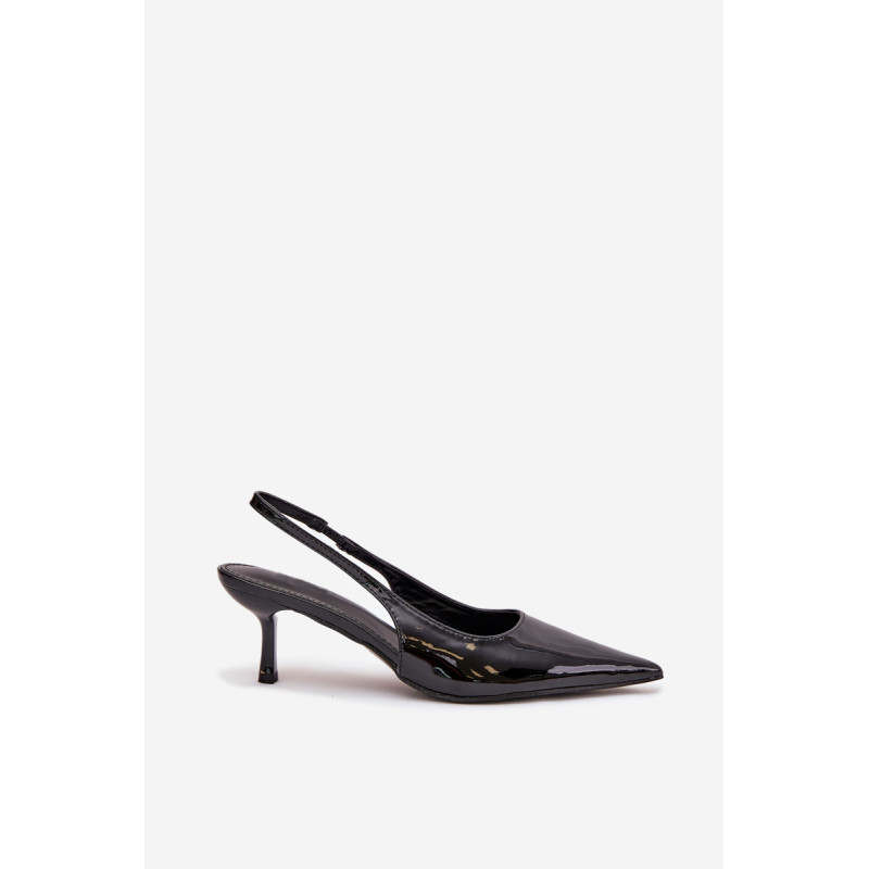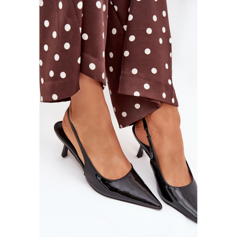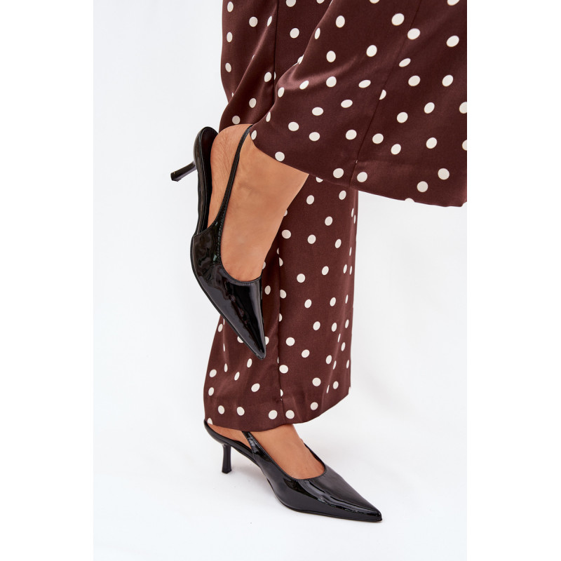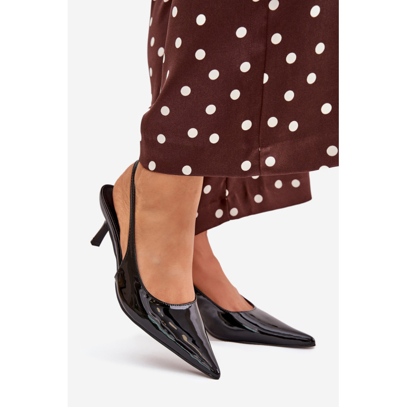 Lakuoti moterų aukštakulniai su smailiais pirštai ir atvirais kulnas yra elegantiškas pasiūlymas, kuris sujungia klasiką su šiuolaikiniu akcentu. Smaigūs pirštai ilgina kojas, suteikdami siluetui lieknumo. Atviri kulnai suteikia lengvumo, todėl šie aukštakulniai yra ideali pasirinkimo vakarėliams ir ypatingoms progoms. Renkantis dydį, vadovaukitės dydžių lentele.