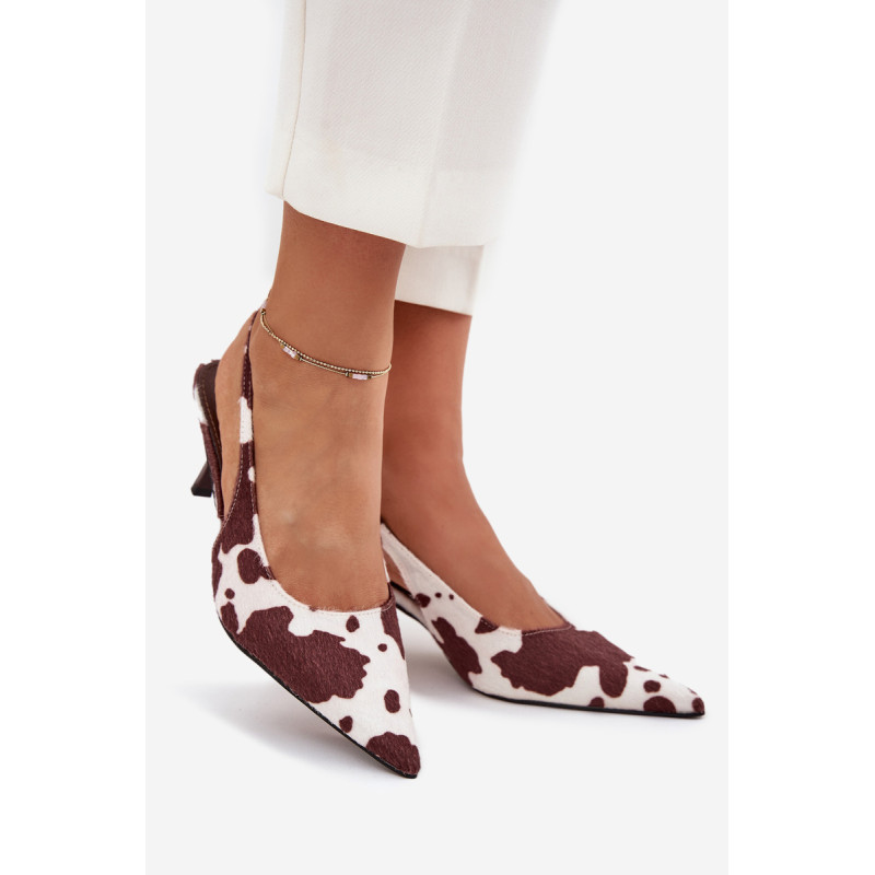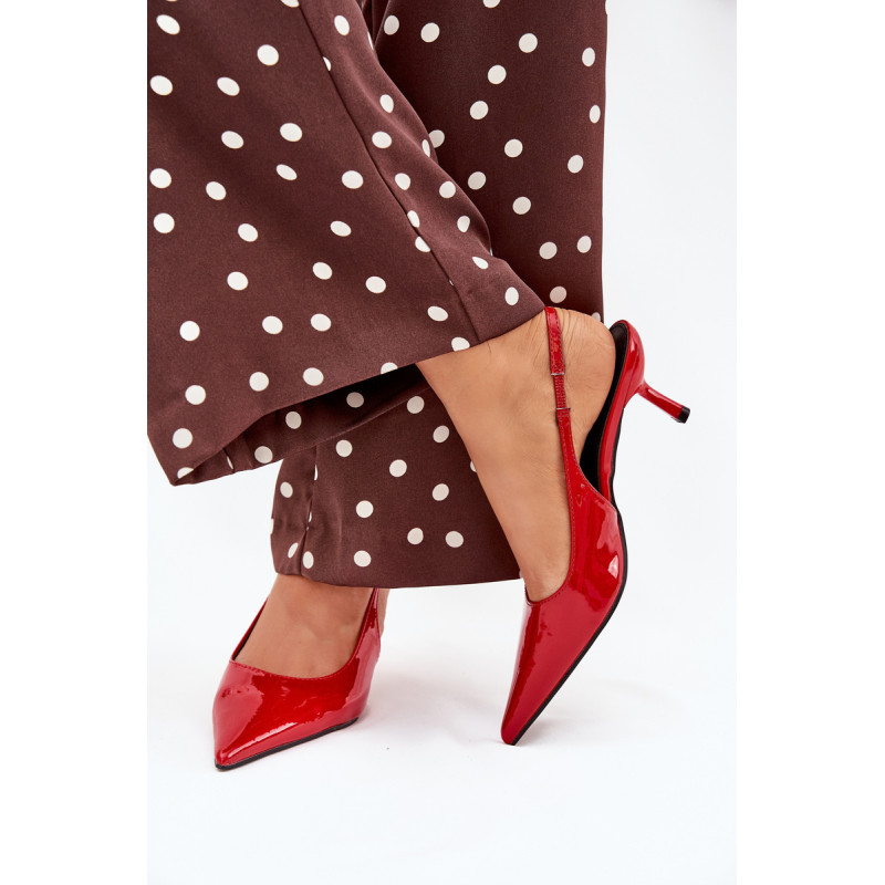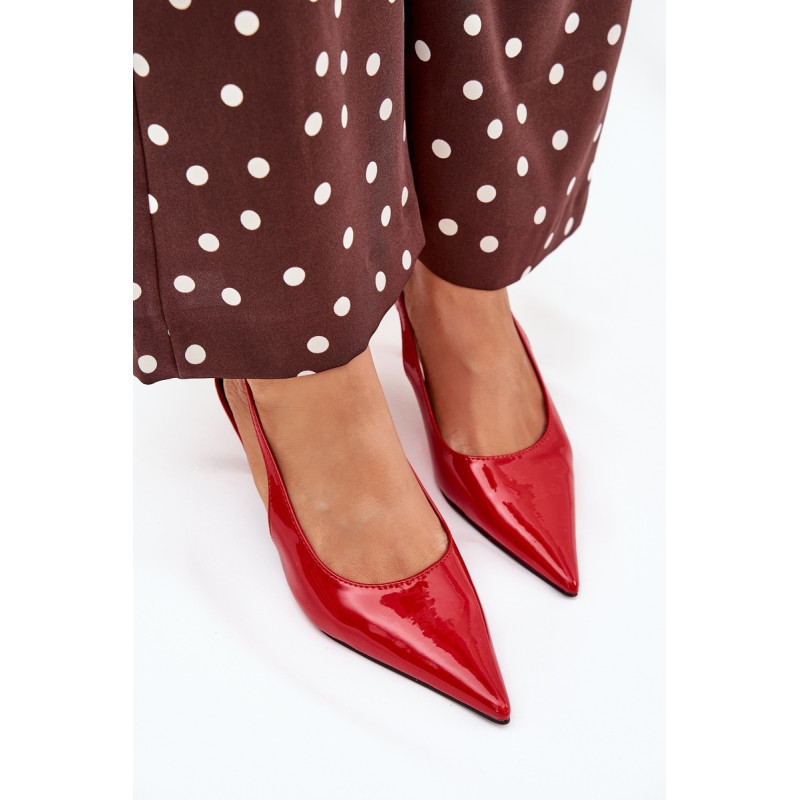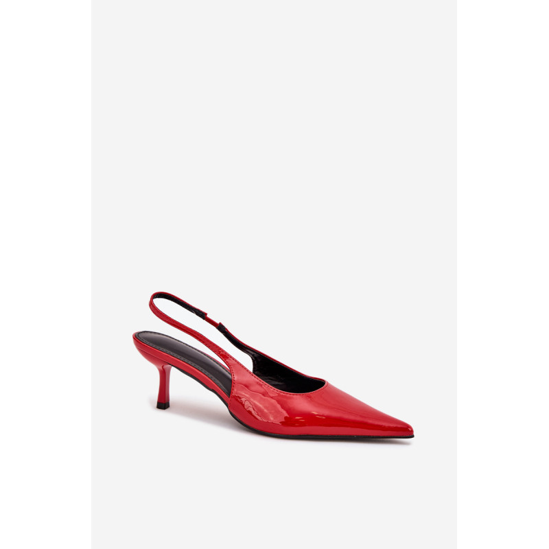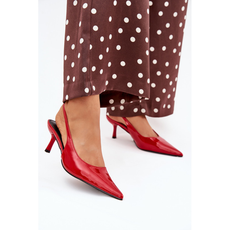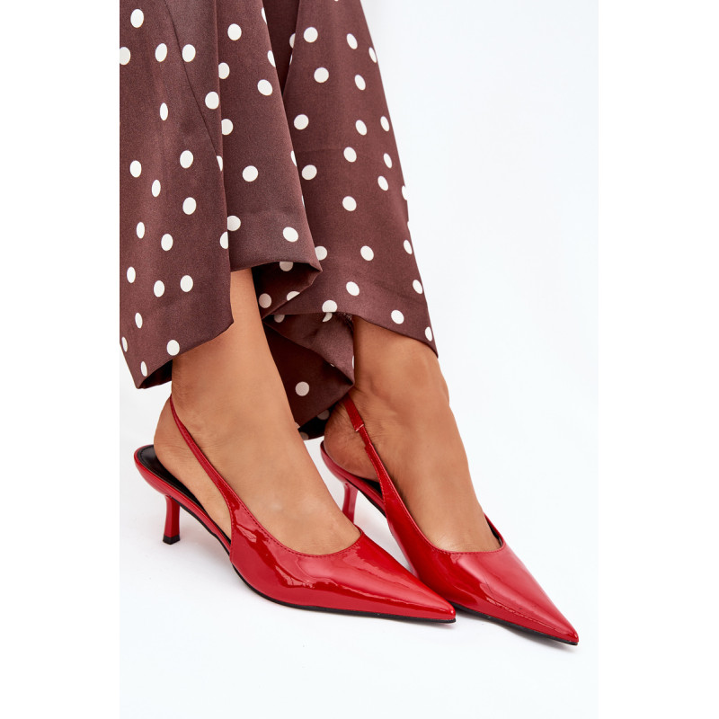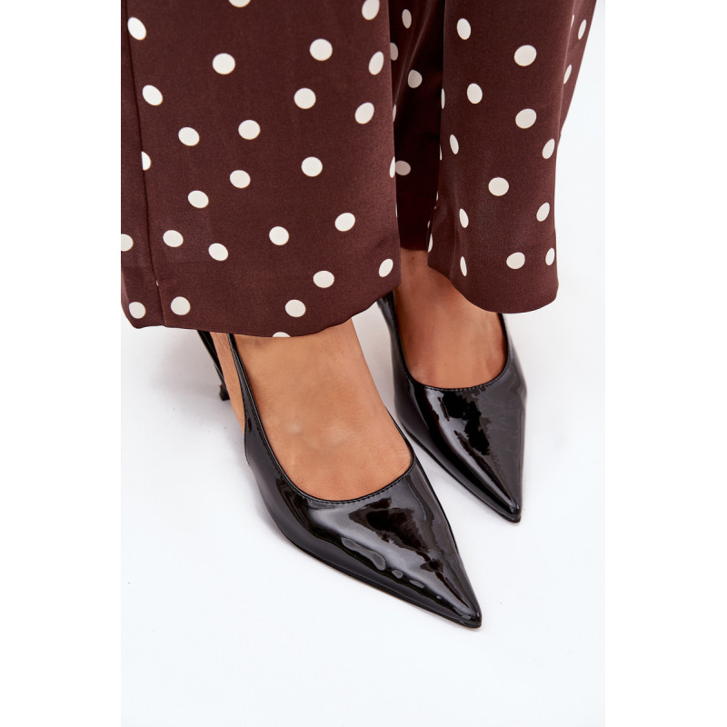 Lakuoti moterų aukštakulniai su smailiais pirštai ir atvirais kulnas yra elegantiškas pasiūlymas, kuris sujungia klasiką su šiuolaikiniu akcentu. Smaigūs pirštai ilgina kojas, suteikdami siluetui lieknumo. Atviri kulnai suteikia lengvumo, todėl šie aukštakulniai yra ideali pasirinkimo vakarėliams ir ypatingoms progoms. Renkantis dydį, vadovaukitės dydžių lentele.