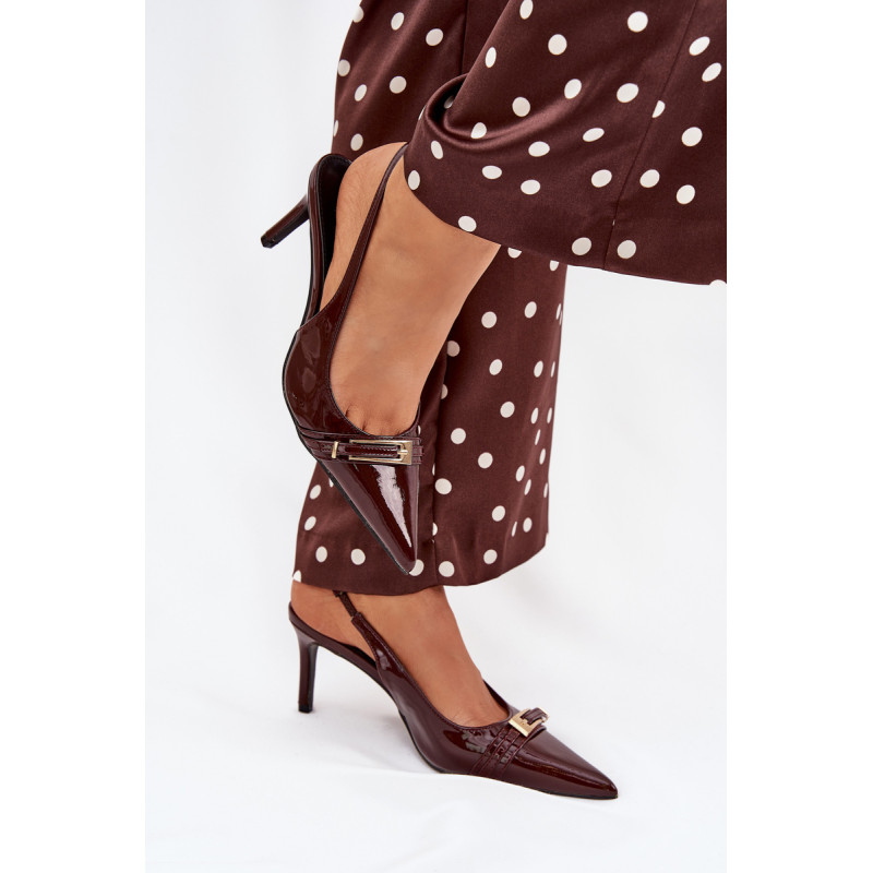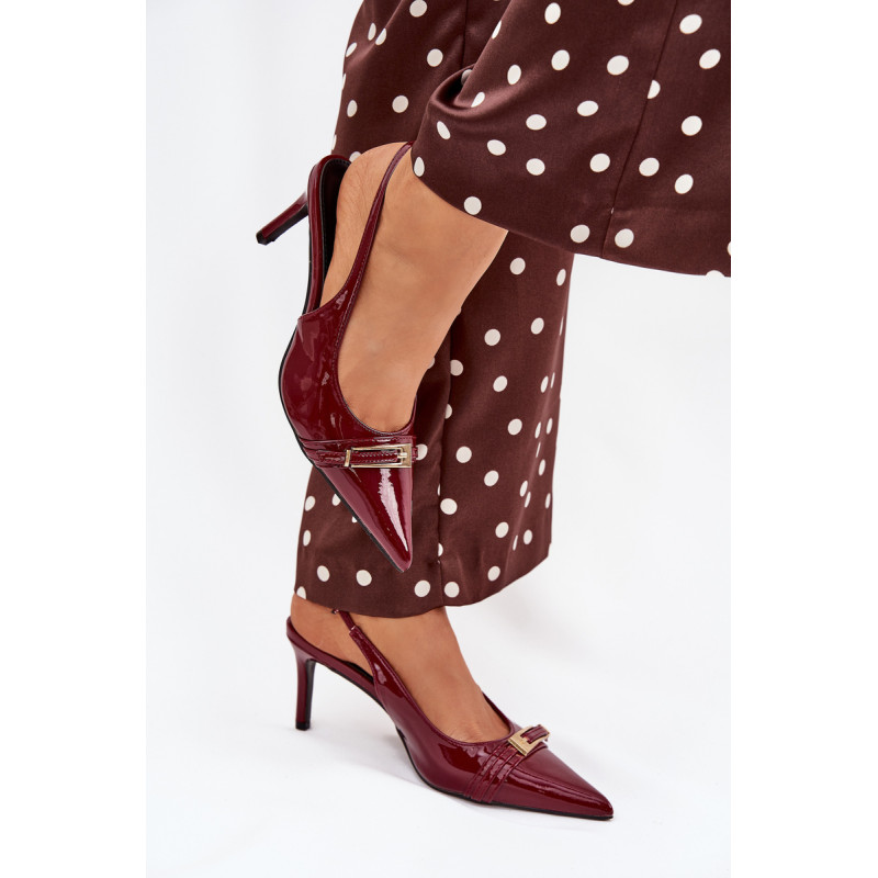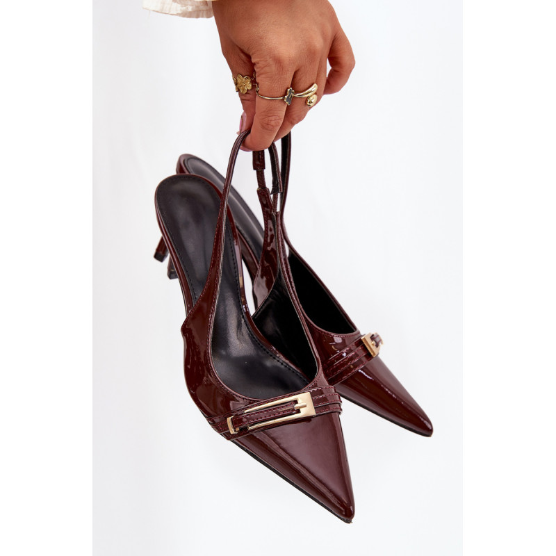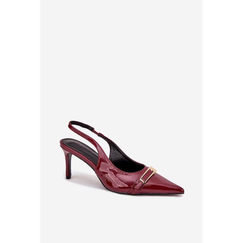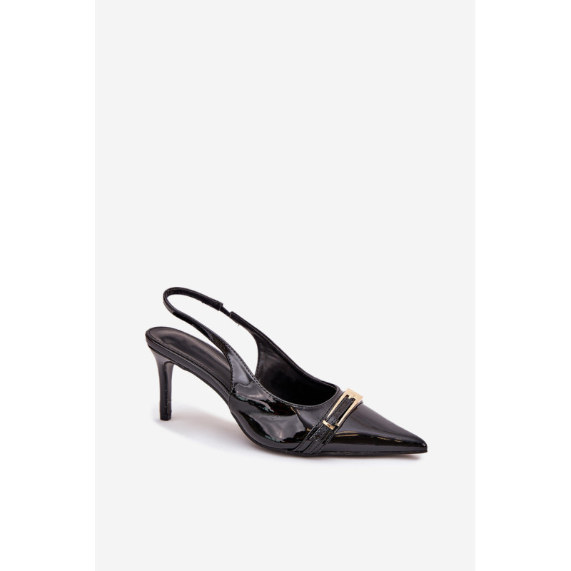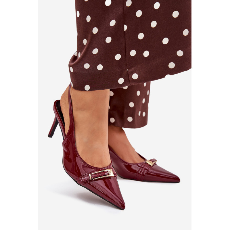 Stilingi ir eleganti ekologiški odiniai aukštakulniai, sumontuoti ant smailių kulnų, yra klasikos ir modernaus akcento derinys. Batų priekyje yra dirželis, puošiamas auksine sagtimi, kuris suteikia jiems išskirtinį šiką. Smailūs galiukai optiškai pailgina kojas, suteikdami siluetui elegantišką išvaizdą. Puikiai tinka vakariniams išėjimams, ypatingoms progoms arba elegantiškiems susitikimams. Renkantis dydį, vadovaukitės dydžių lentele.