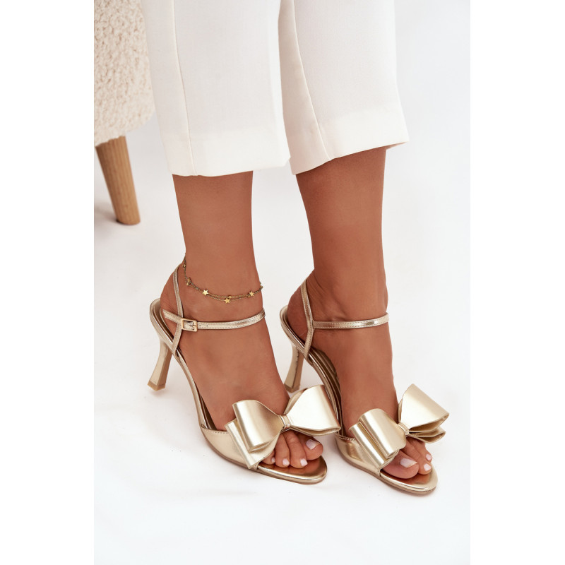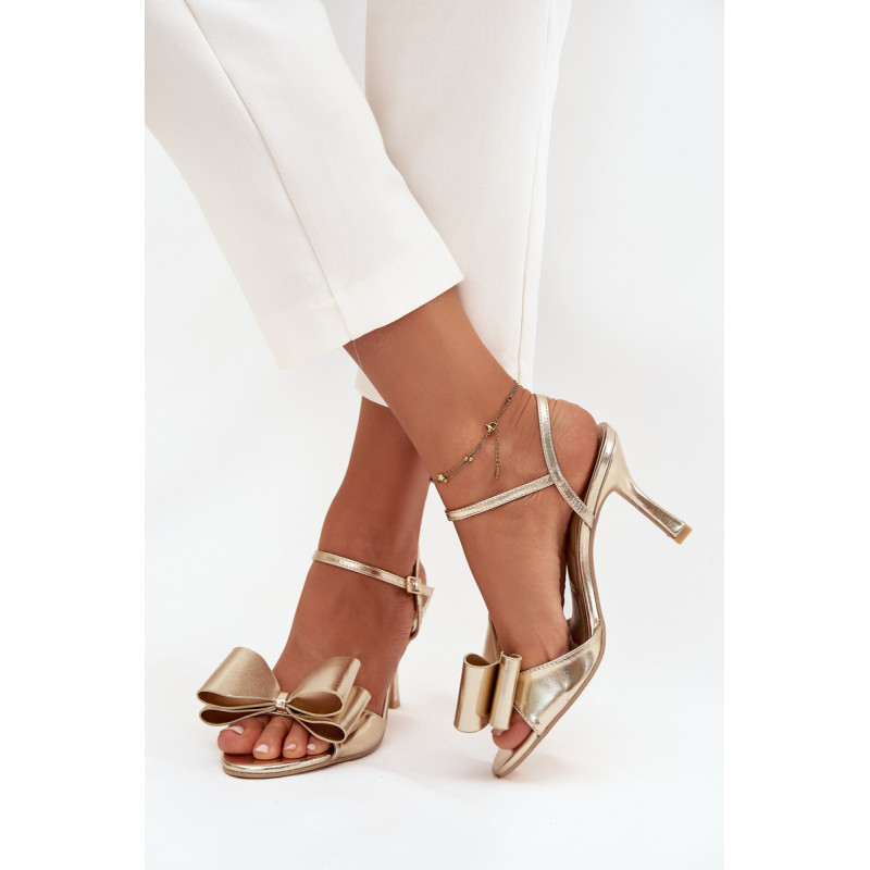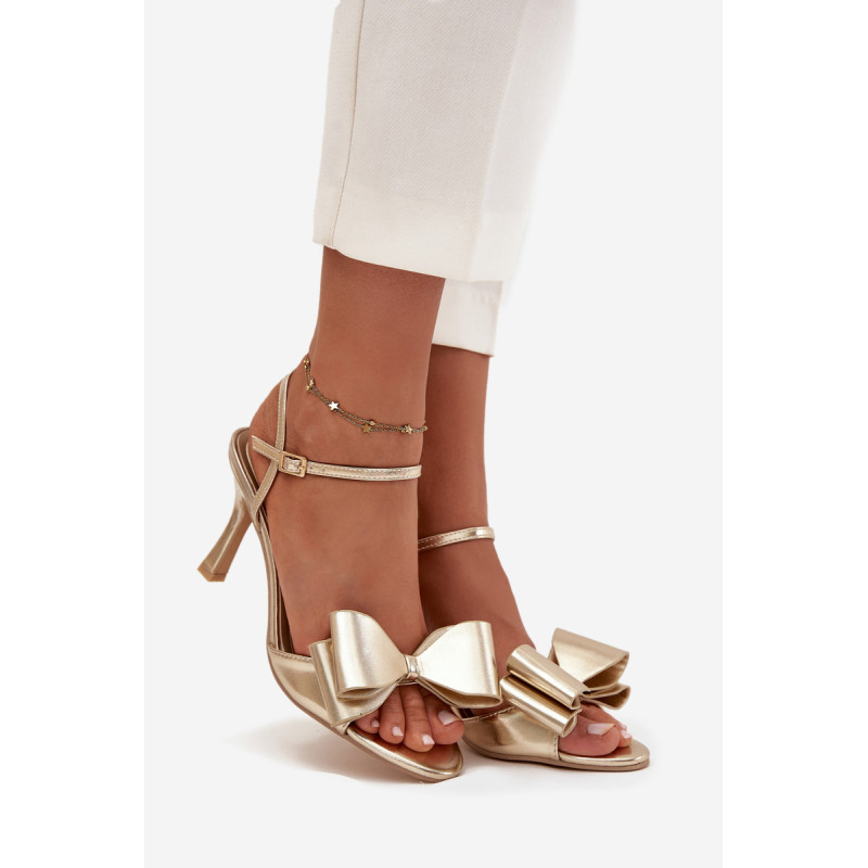 Moteriški sandalai, pagaminti iš aukštos kokybės ekologiškos odos, derina eleganciją ir moterišką stilių. Ant lieknos kulno įrėminti jie gražiai ilgina siluetą ir suteikia lengvumo bet kokiam įvaizdžiui. Reguliuojamas dirželio su sagtimi leidžia puikiai pritaikyti prie pėdos. Dekoratyvinis kaspinas priekyje patraukia dėmesį ir suteikia subtilaus, mergaitiško žavesio. Šis modelis puikiai tinka tiek ypatingoms progoms, tokioms kaip vakarėliai ar iškilmingi renginiai, tiek elegantiškoms vakarinėms stilizacijoms. Renkantis dydį, prašome vadovautis dydžių lentele. Renkantis dydį, vadovaukitės dydžių lentele.