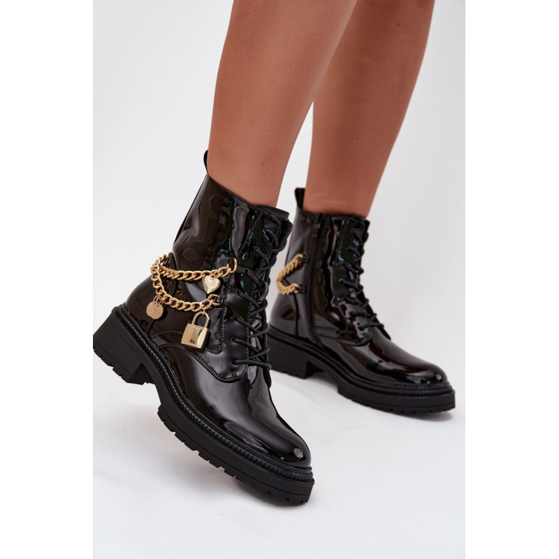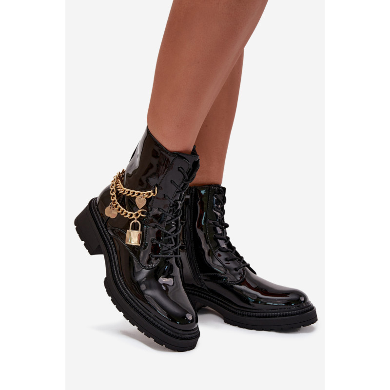 Stilingi moteriški aulinukai iš ekologiškos odos yra puikus pasirinkimas vėsesniems orams. Papuošti auksine grandine su pakabukais, kurie suteikia madingą akcentą. Modelis su užtrauktuku ir raišteliais leidžia puikiai pritaikyti prie pėdos. Vidus izoliuotas avalynės flisu, užtikrinančiu šilumą ir komfortą net šaltomis dienomis. Puikiai kasdieniam naudojimui, šie aulinukai sujungia funkcionalumą su madingu įvaizdžiu, puikiai derėdami įvairiuose rudens-žiemos stiliuose. Renkantis dydį, vadovaukitės dydžių lentele.