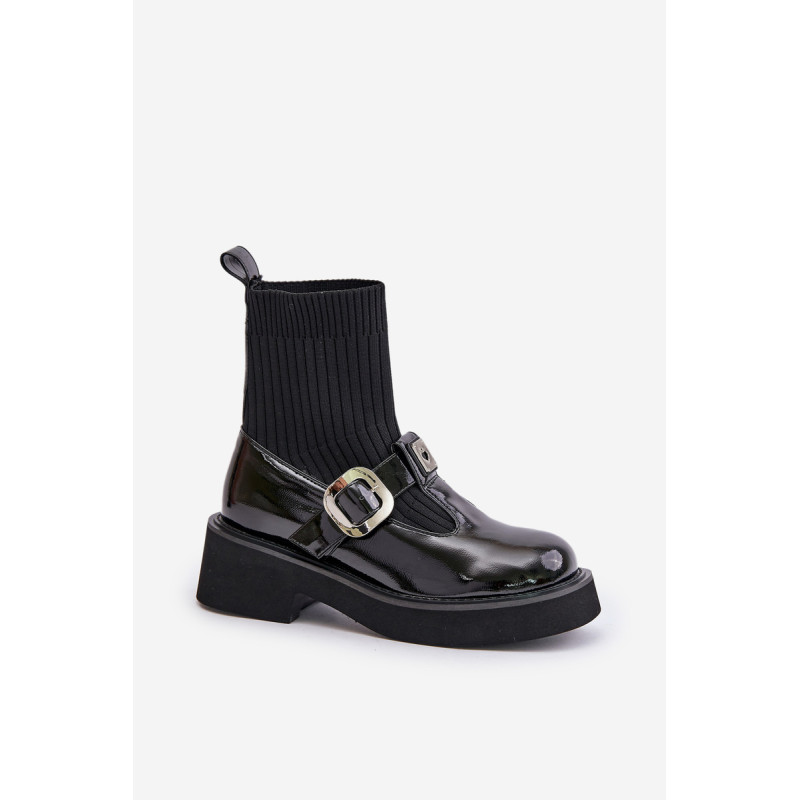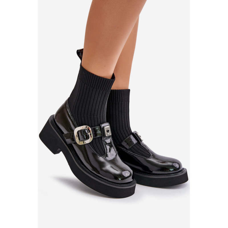 Lakuoti moteriški kulkšnies batai ant žemo plataus kulno ir platformos. Kojinės formos viršutinė dalis, papildomai dekoruota stilingu dirželiu su sagtimi, suteikia jiems modernumo. Vidus apšiltintas batų antklode tik pėdos lygyje. Puikiai tinka miesto stiliams, derinant komfortą su madinga išvaizda. Rinkdamiesi dydį, žiūrėkite dydžių lentelę.