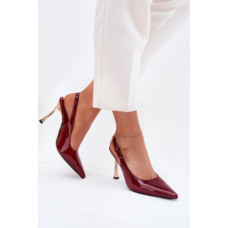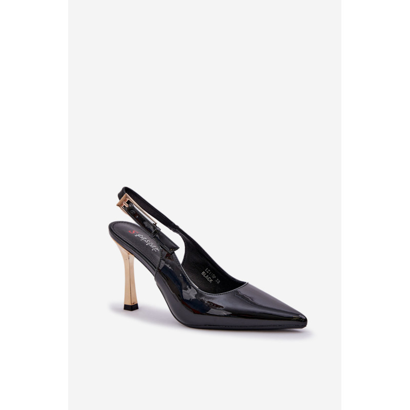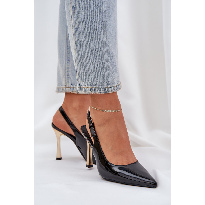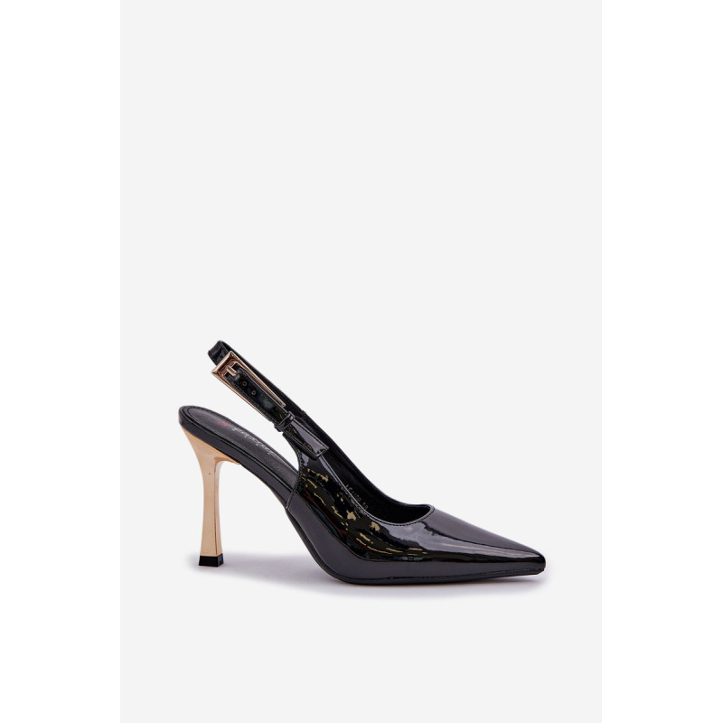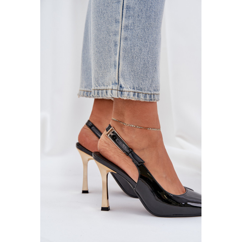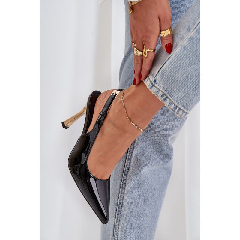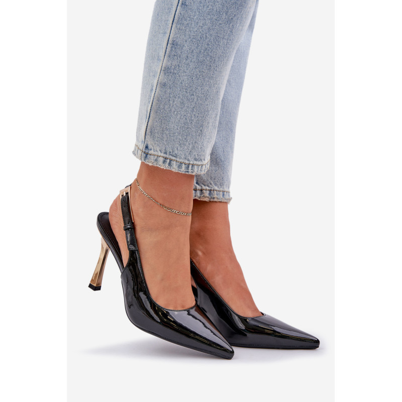 Lakuotos elegantiškos aukštakulnės su atvira kulniuku derina klasiką ir modernumą. Smailūs pirštai vizualiai pailgina kojas, o reguliuojama dirželio su sagtimi užsegimas užtikrina puikų prigludimą ir stabilumą. Šios aukštakulnės puikiai tinka ypatingoms progoms, derindamos eleganciją su subtiliu, tačiau išraiškingu stiliumi. Idealiai tinka vakariniams įvaizdžiams, jos suteikia žavesio ir pasitikėjimo savimi. Renkantis dydį, vadovaukitės dydžių lentele.
