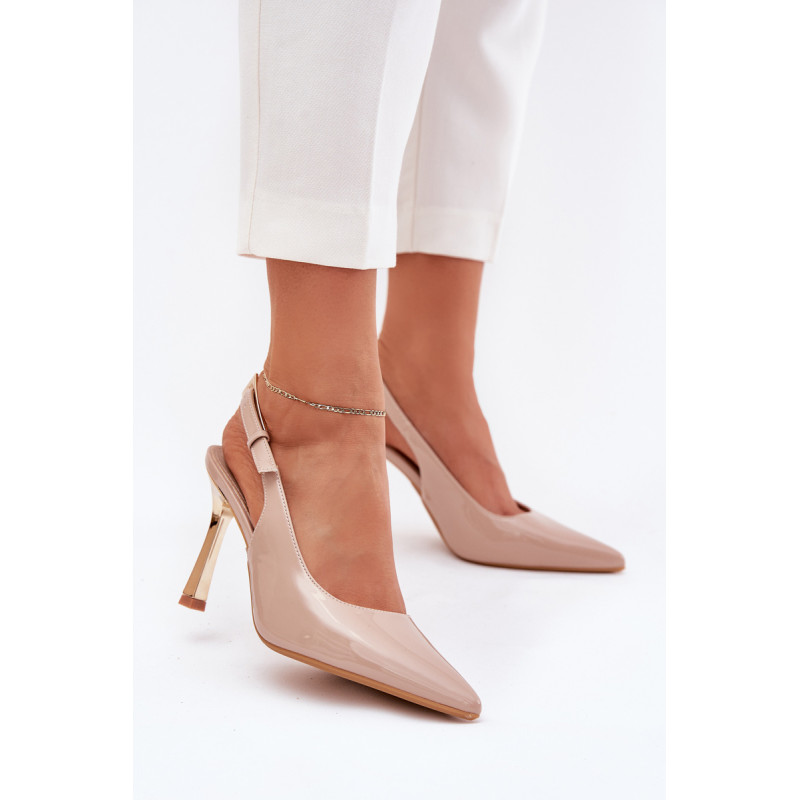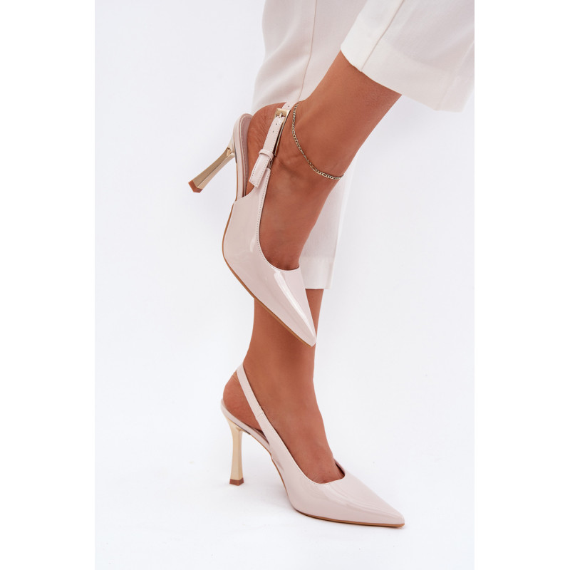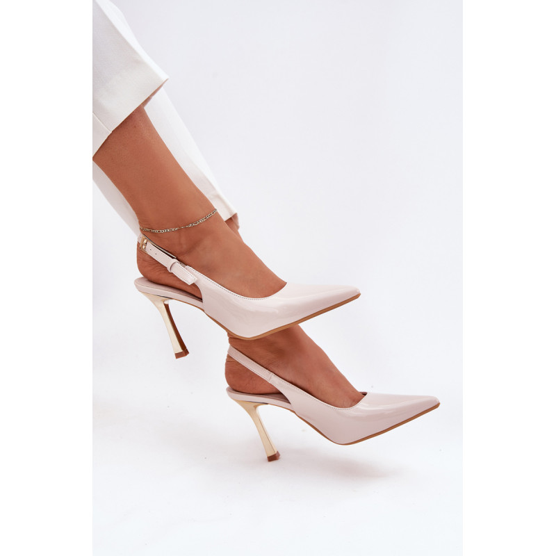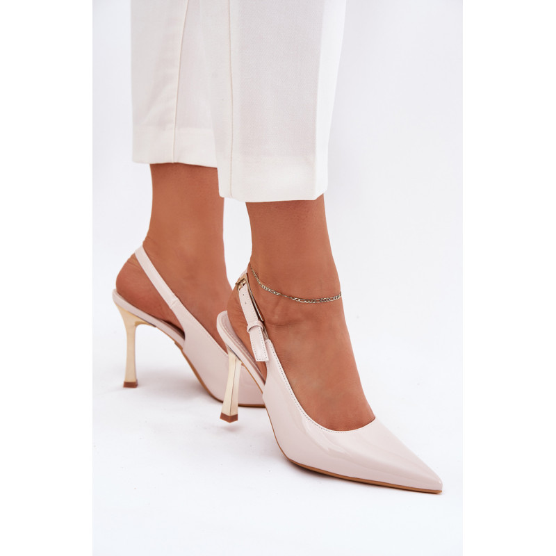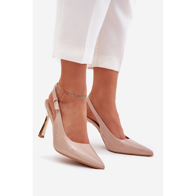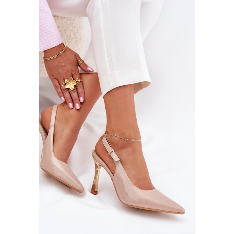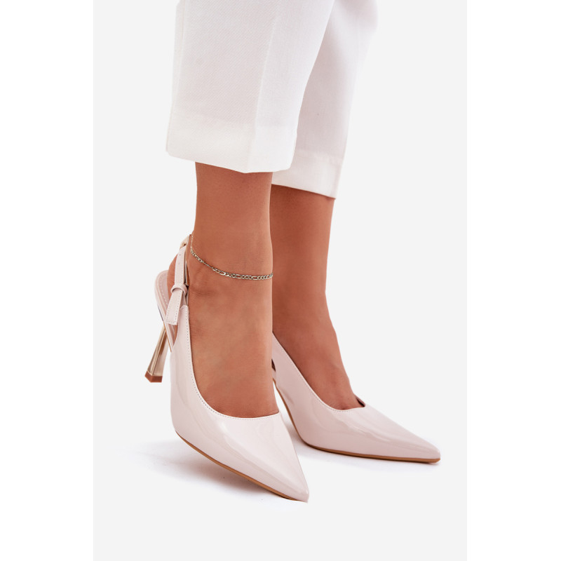 Lakuotos elegantiškos aukštakulnės su atvira kulniuku derina klasiką ir modernumą. Smailūs pirštai vizualiai pailgina kojas, o reguliuojama dirželio su sagtimi užsegimas užtikrina puikų prigludimą ir stabilumą. Šios aukštakulnės puikiai tinka ypatingoms progoms, derindamos eleganciją su subtiliu, tačiau išraiškingu stiliumi. Idealiai tinka vakariniams įvaizdžiams, jos suteikia žavesio ir pasitikėjimo savimi. Renkantis dydį, vadovaukitės dydžių lentele.