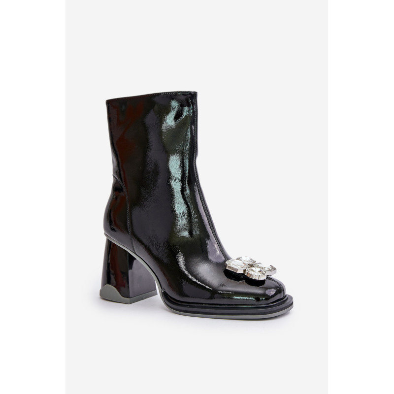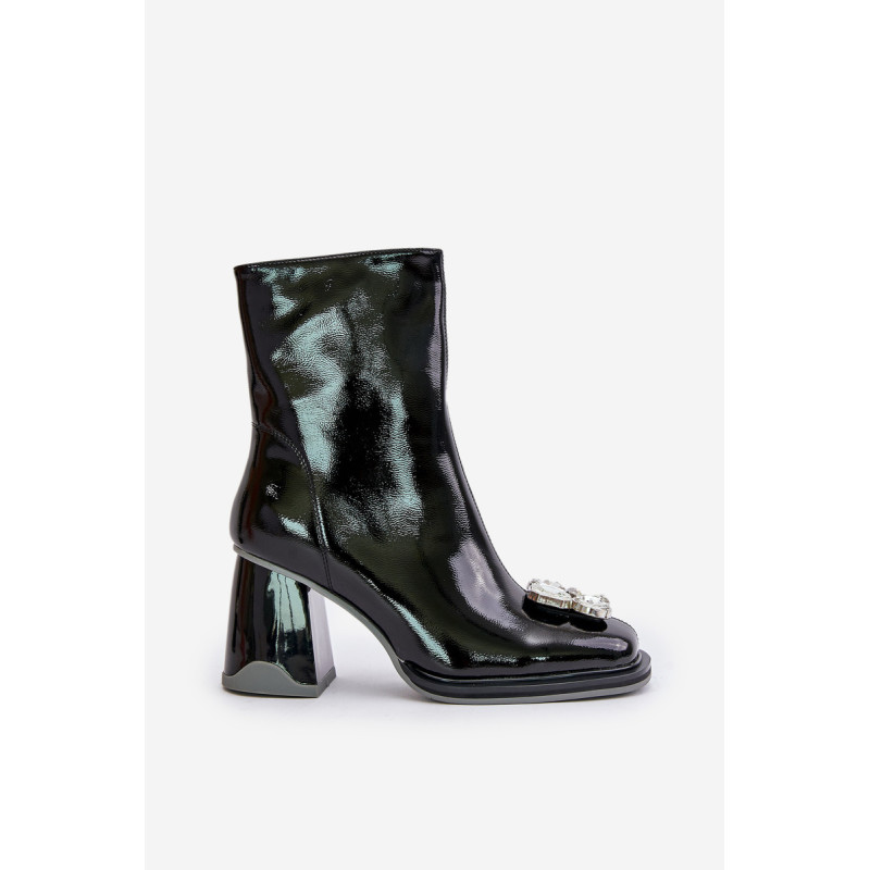 Moteriški aukštakulniai batai iš aukštos kokybės eko odos, priekyje puošti juvelyriniu akcentu. Kvadratiniai pirštai suteikia jiems šiuolaikišką išvaizdą, o blokinis kulnas užtikrina komfortą ir stabilumą. Vidus išklotas šilta avalynės vilna. Tai modelis, kuris tikrai turėtų būti jūsų kolekcijoje! Rinkdamiesi dydį žiūrėkite dydžių lentelę.