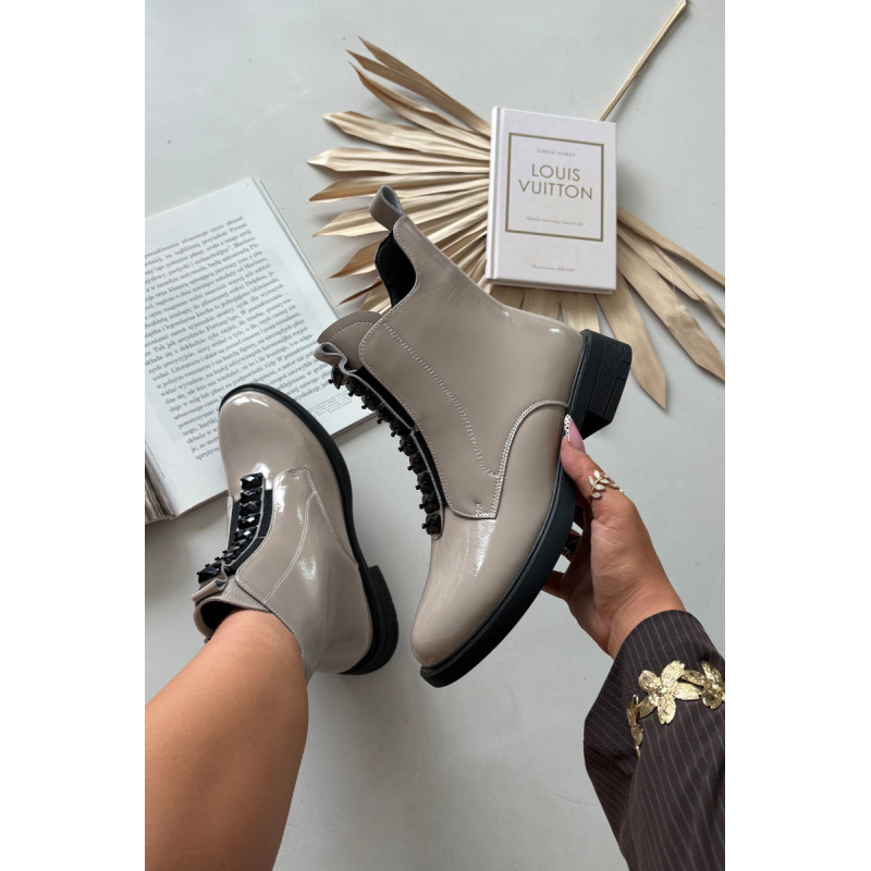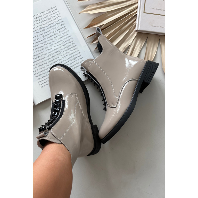 Moteriški aulinukai, pagaminti iš natūralios, lakuotos odos, yra pasiūlymas moterims, vertinančioms eleganciją ir šiuolaikinį stilių. Blizganti medžiagos paviršius jiems suteikia išskirtinį charakterį, todėl batai tampa išraiškingu akcentu kiekvienoje aprangoje. Modelis užsegamas užtrauktuku, kuris palengvina užsidėjimą ir nuėmimą. Apvalios nosys pabrėžia klasikinę bato liniją, o dekoratyvūs elementai priekyje suteikia subtilios originalumo. Šie aulinukai puikiai tinka tiek kasdieniam dėvėjimui, tiek ypatingoms progoms, puikiai papildydami tiek kasdienius, tiek elegantiškus ansamblius. Renkantis dydį, prašome vadovautis dydžių lentele. Renkantis dydį, vadovaukitės dydžių lentele.