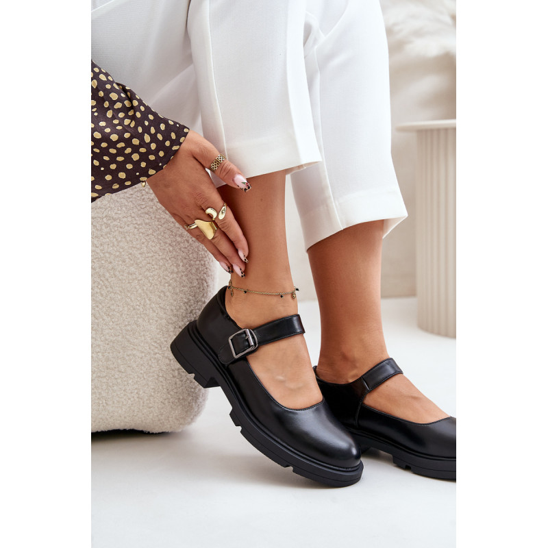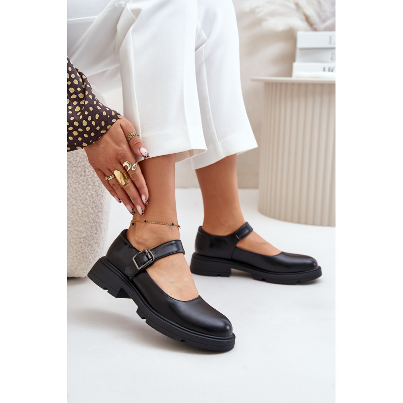 Madingi moteriški batai, pagaminti iš ekologiškos odos. Juose yra reguliuojamas dirželis su sagtimi, kuri užtikrina puikų prigludimą. Suapvalinti kojų pirštai ir plokščias kulnas suteikia komfortą visą dieną ir suteikia stilingumo bet kokiai aprangai. Rinkdamiesi dydį, žiūrėkite dydžių lentelę.