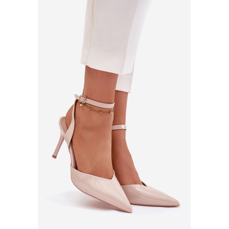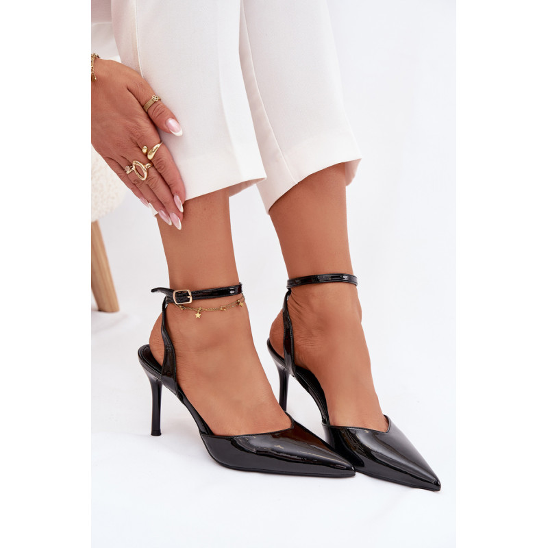 Moteriški aukšti kulniukai, pagaminti iš lakuotos ekologiškos odos. Blizgantis apdaila atrodo gražiai ant pėdos, o smailūs nosys suteikia visumui grakštumo. Modelis turi reguliuojamą dirželį su sagtimi, leidžiančią lengvai pritaikyti avalynę prie pėdos. Moteriška, klasikinė ir laikui nepavaldus — puikus pasirinkimas vakariniam stiliui. Prašome vadovautis dydžių lentele renkantis dydį. Renkantis dydį, vadovaukitės dydžių lentele.