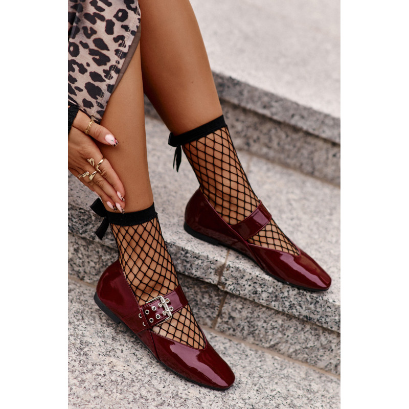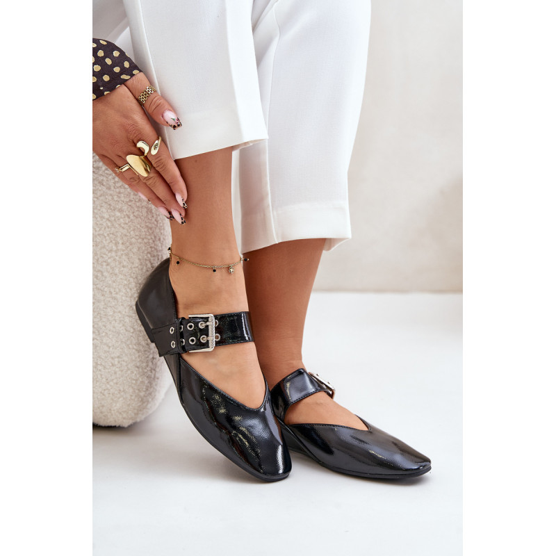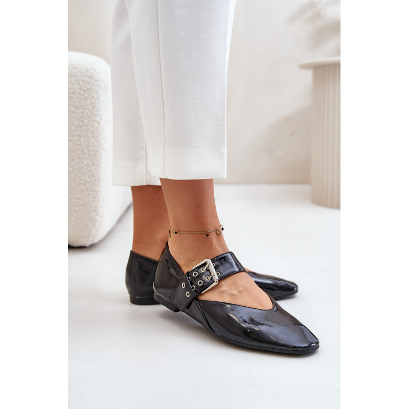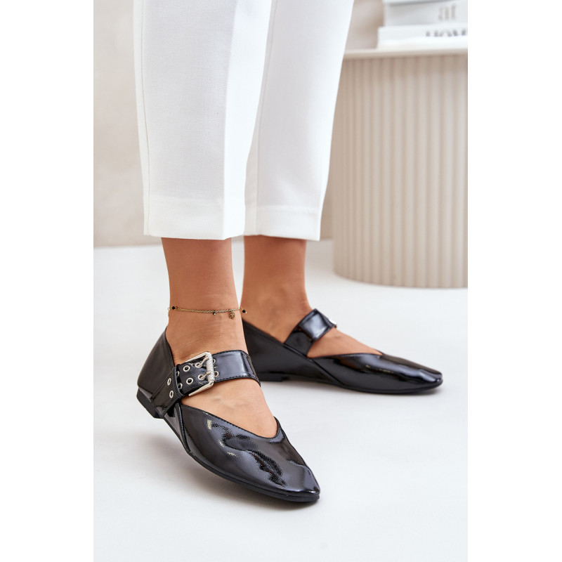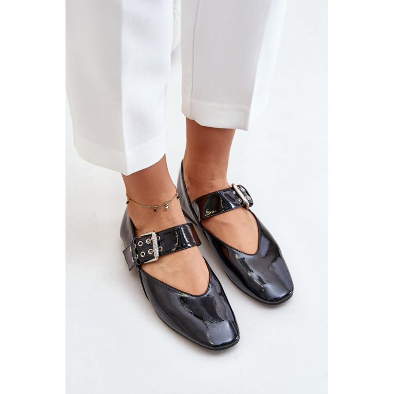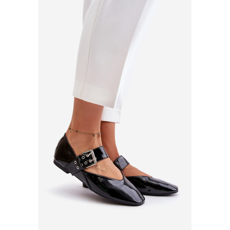 Lakuotos balerinos, pagamintos iš ekologiškos odos. Užsegamas reguliuojamu dekoratyviniu dirželiu su sagtimi, užtikrina puikų prigludimą ir patogumą dėvint. Dėl madingo dizaino jie yra puikus pasirinkimas įvairioms progoms. Jūs tikrai turėtumėte juos turėti! Rinkdamiesi dydį, žiūrėkite dydžių lentelę.
